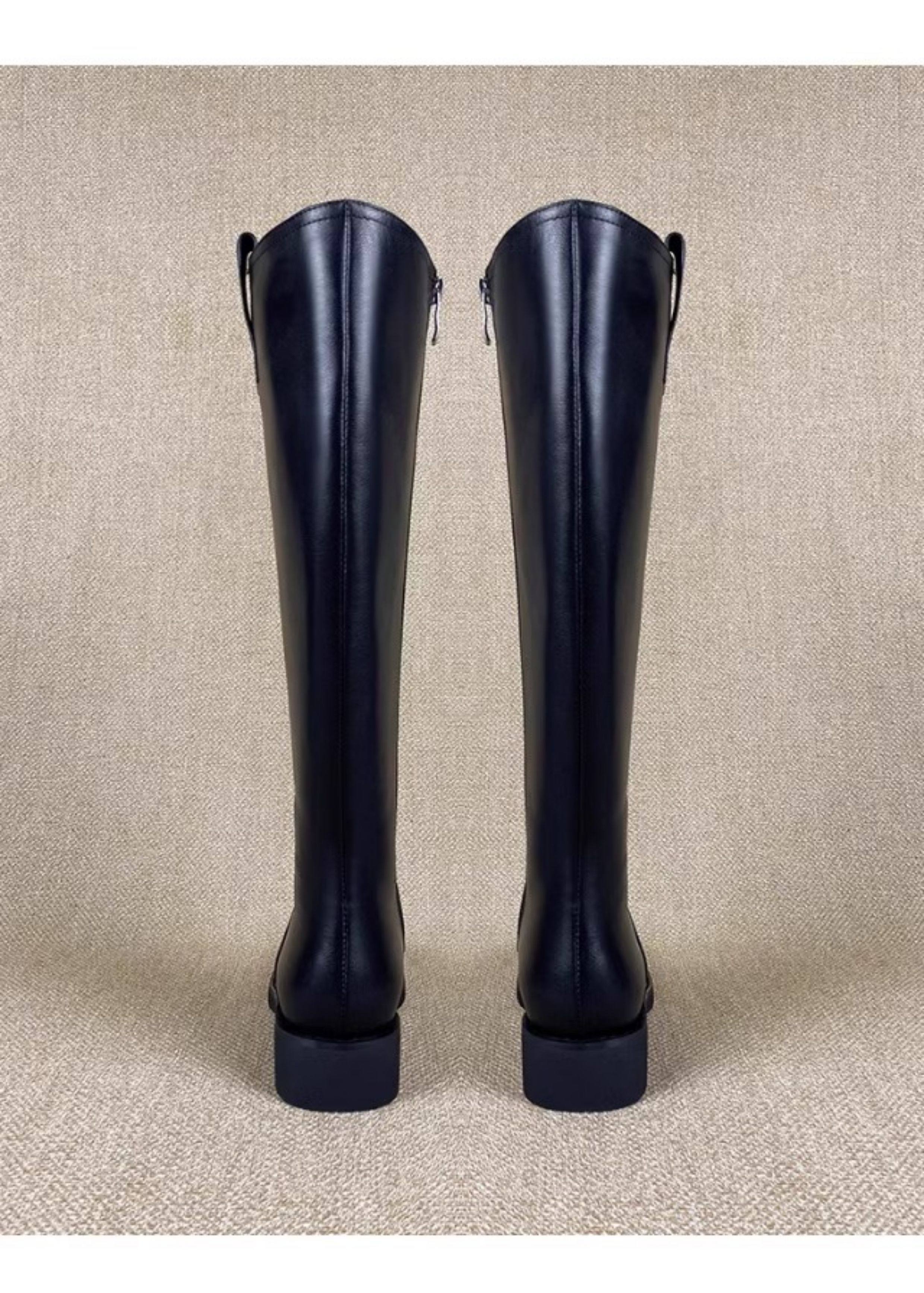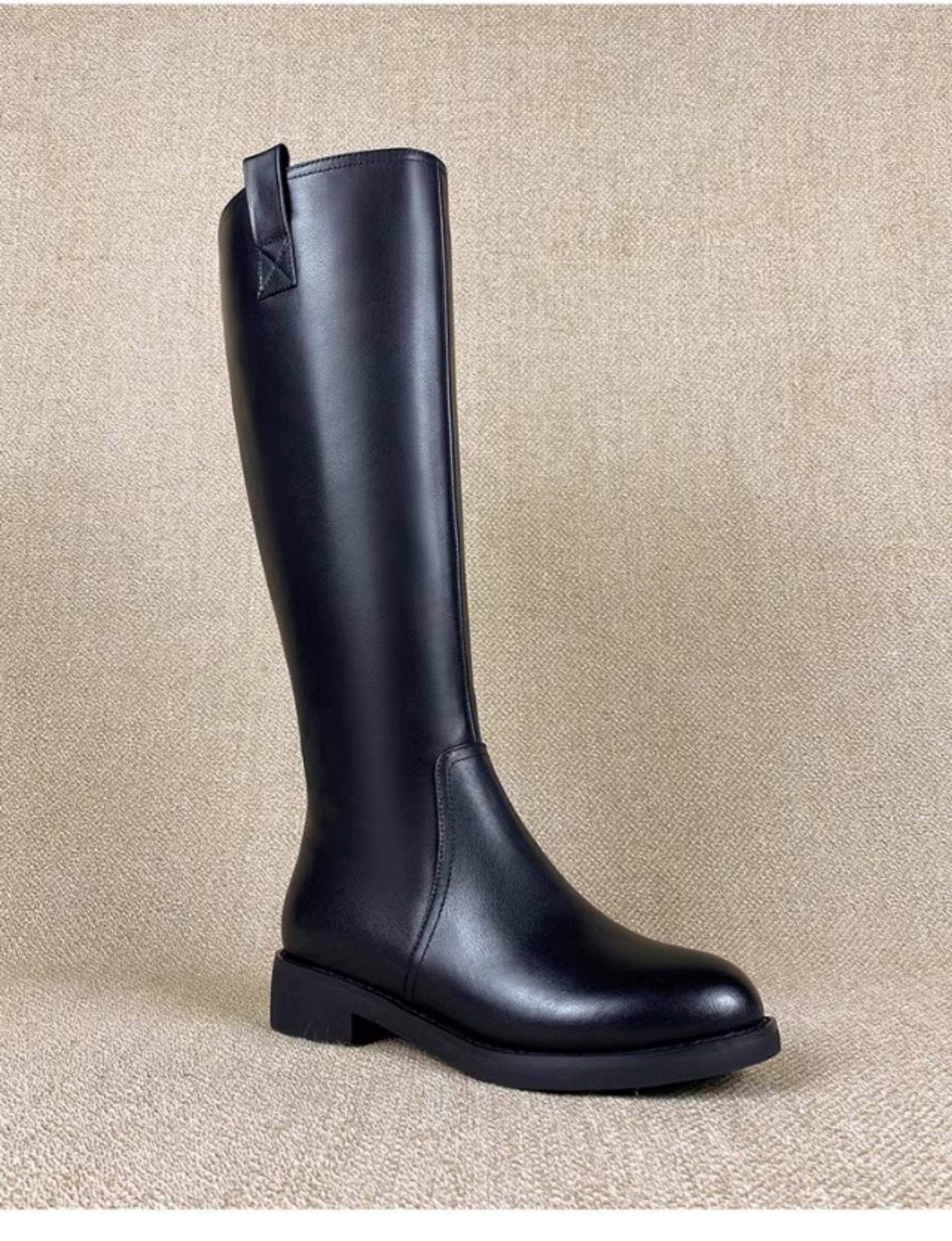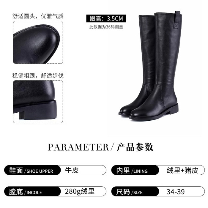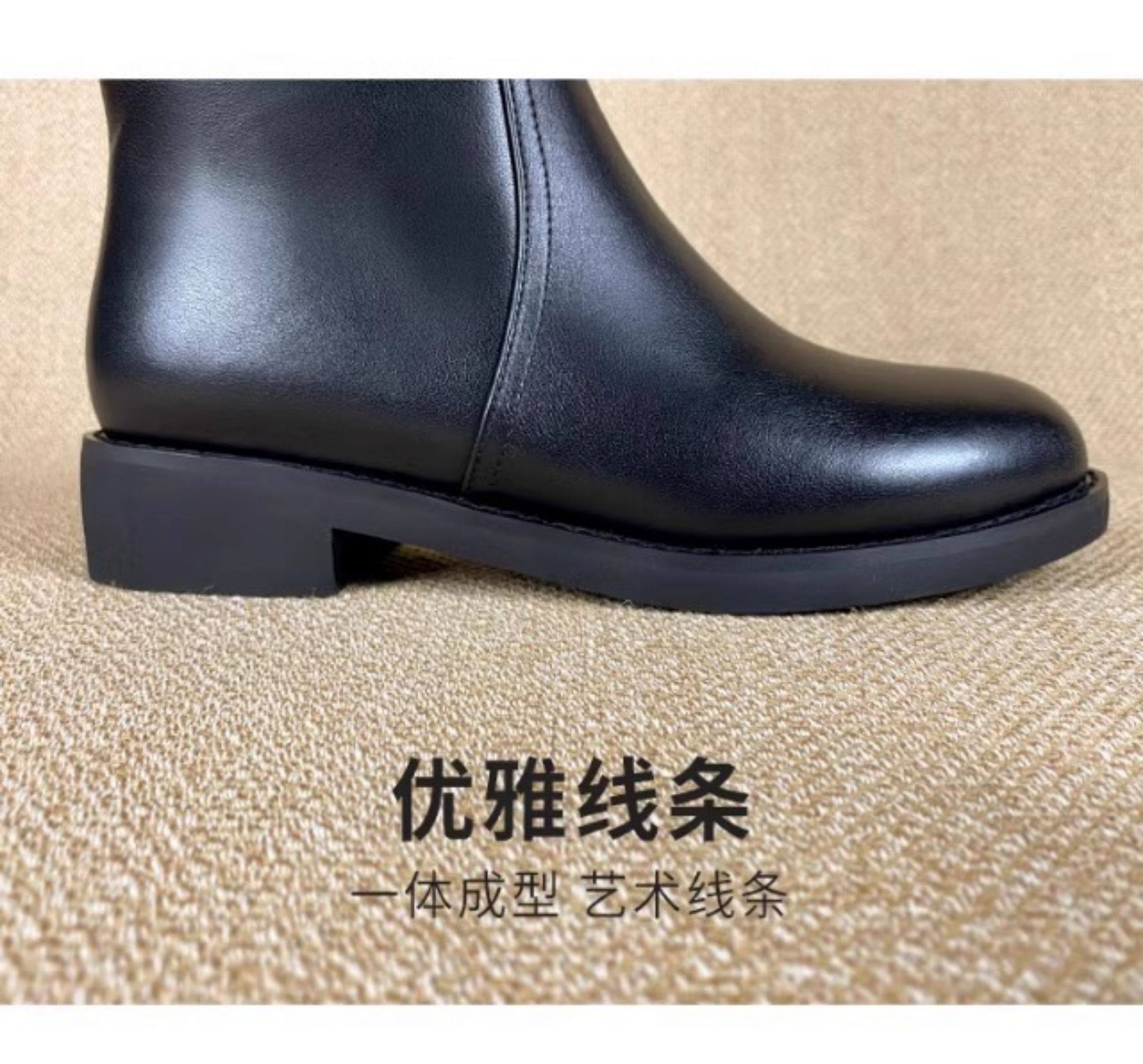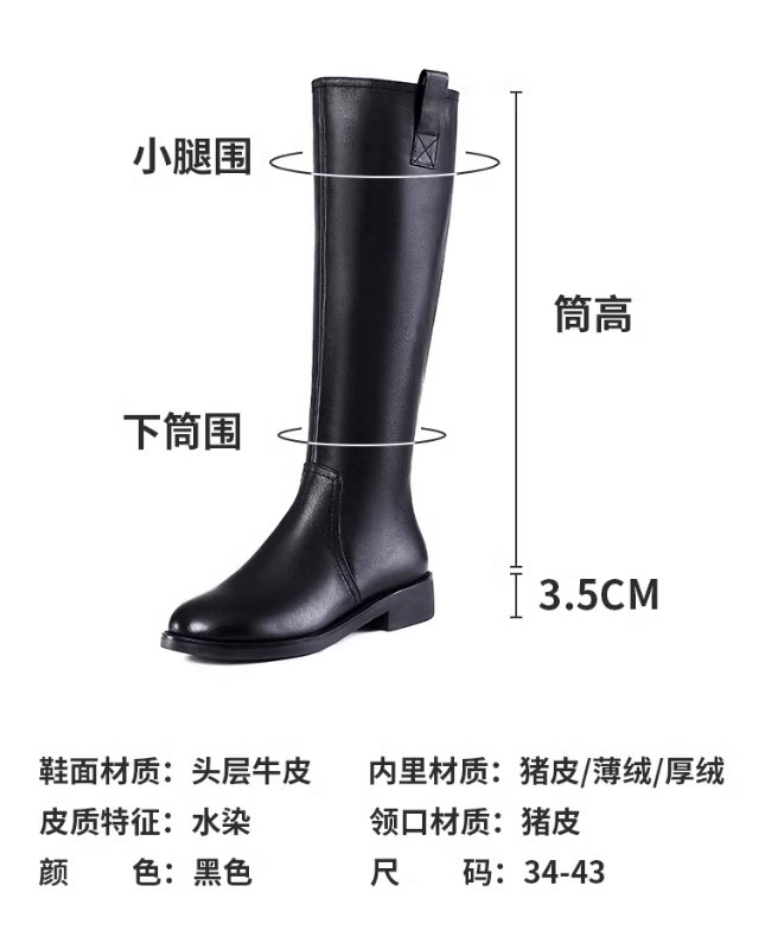 品牌撤櫃真皮騎士靴女2024秋冬新款平底不過膝長筒靴馬丁靴長筒靴