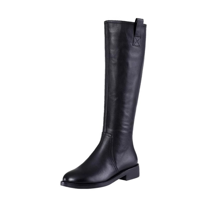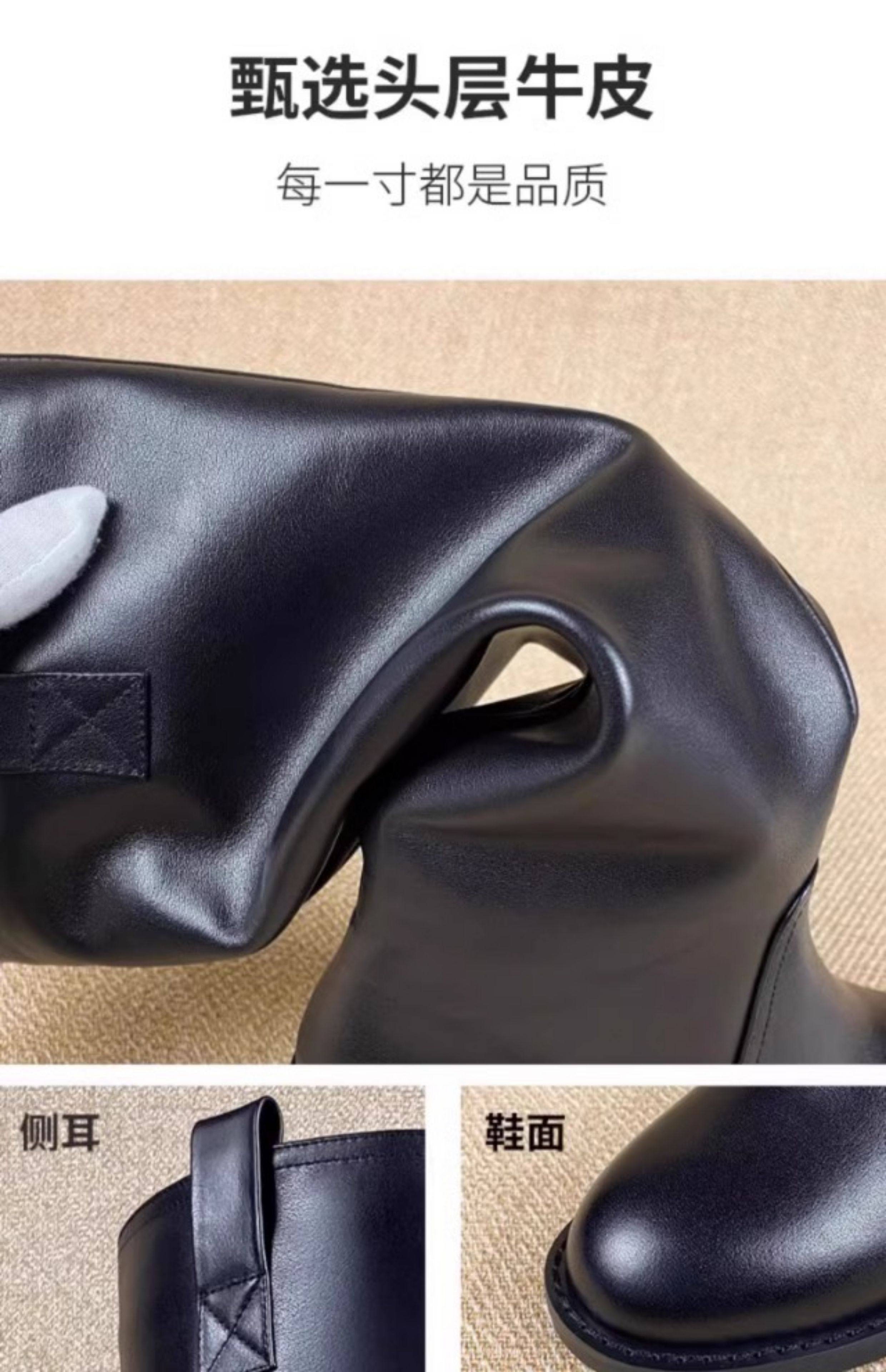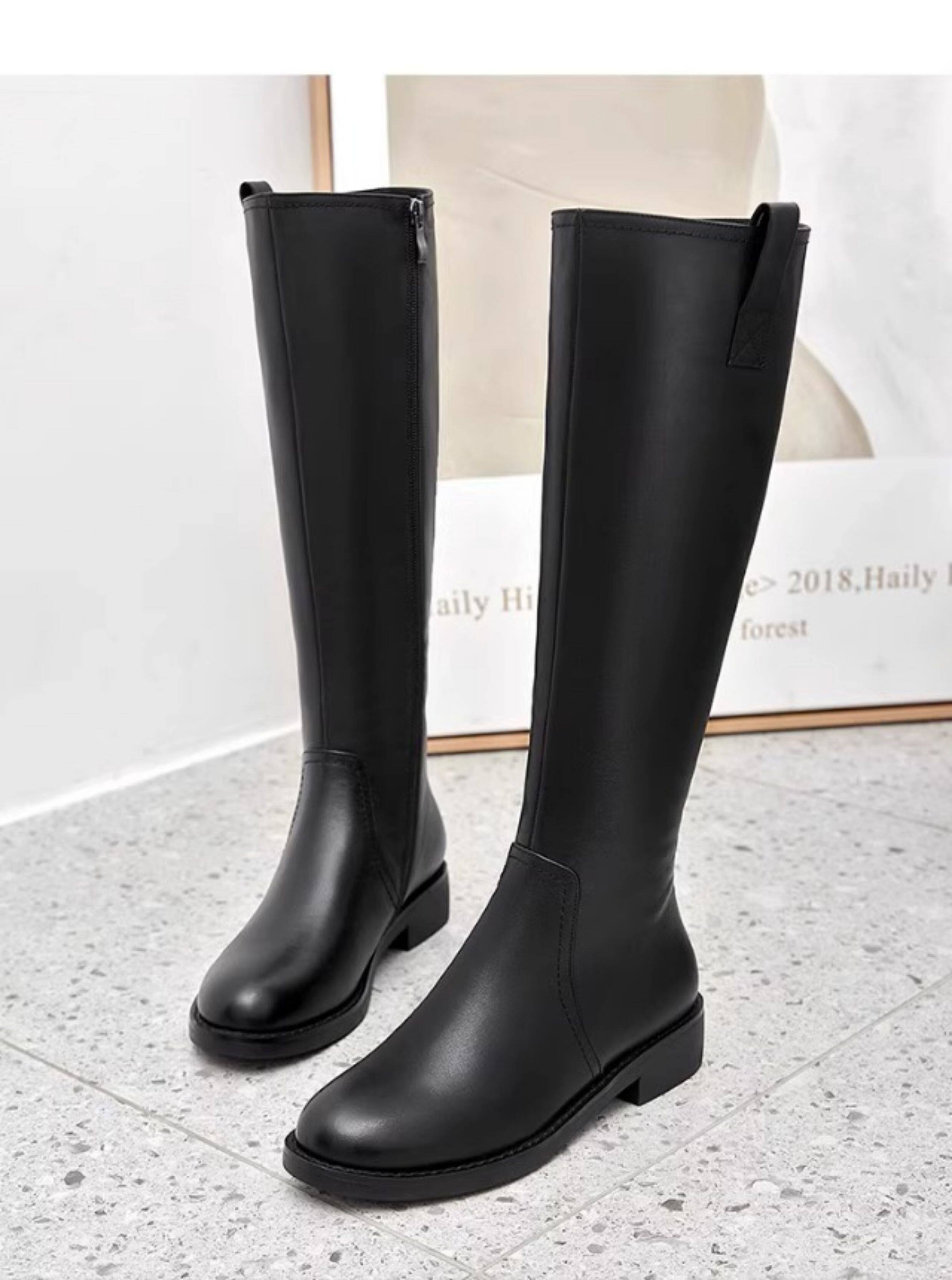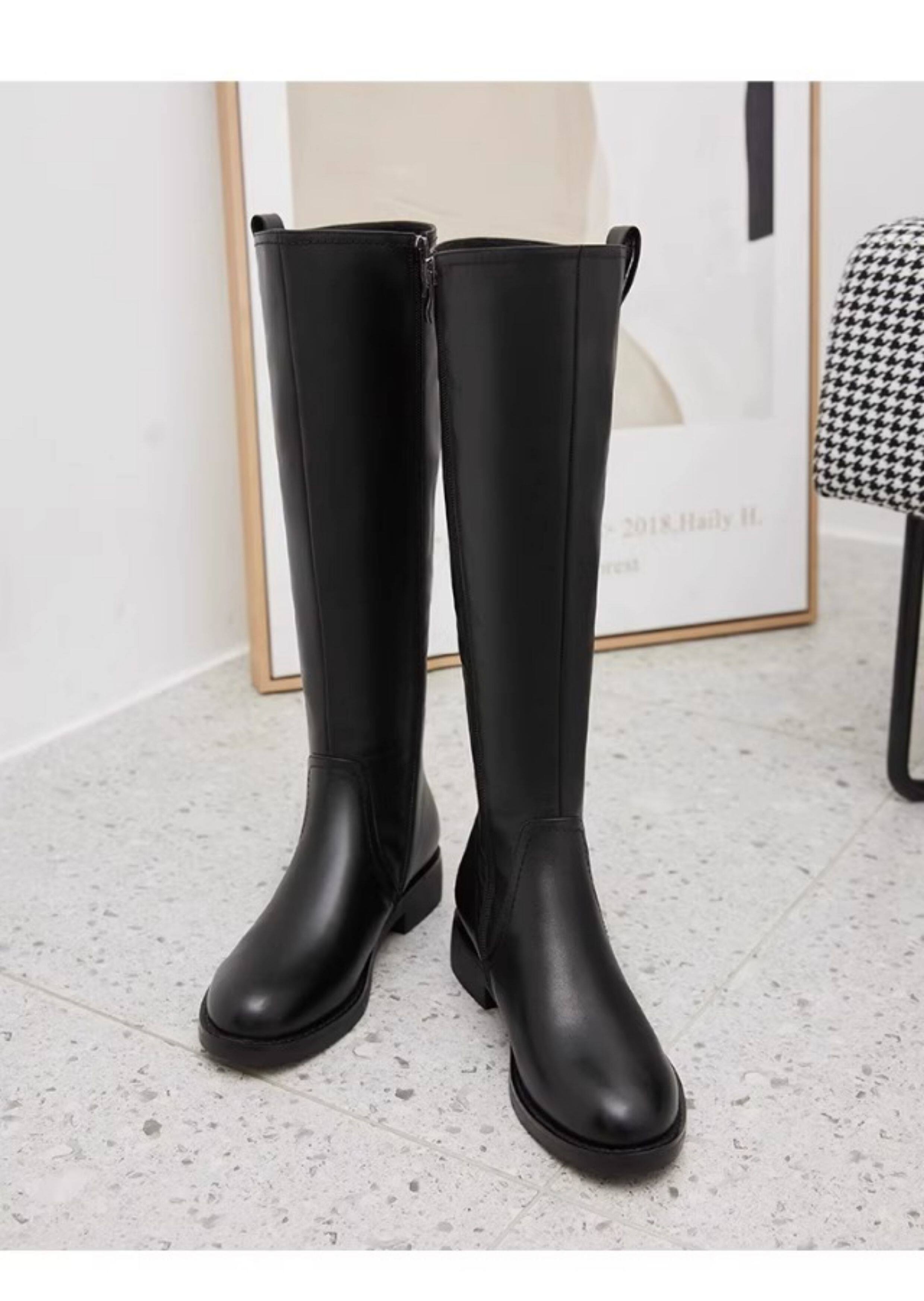 品牌撤櫃真皮騎士靴女2024秋冬新款平底不過膝長筒靴馬丁靴長筒靴