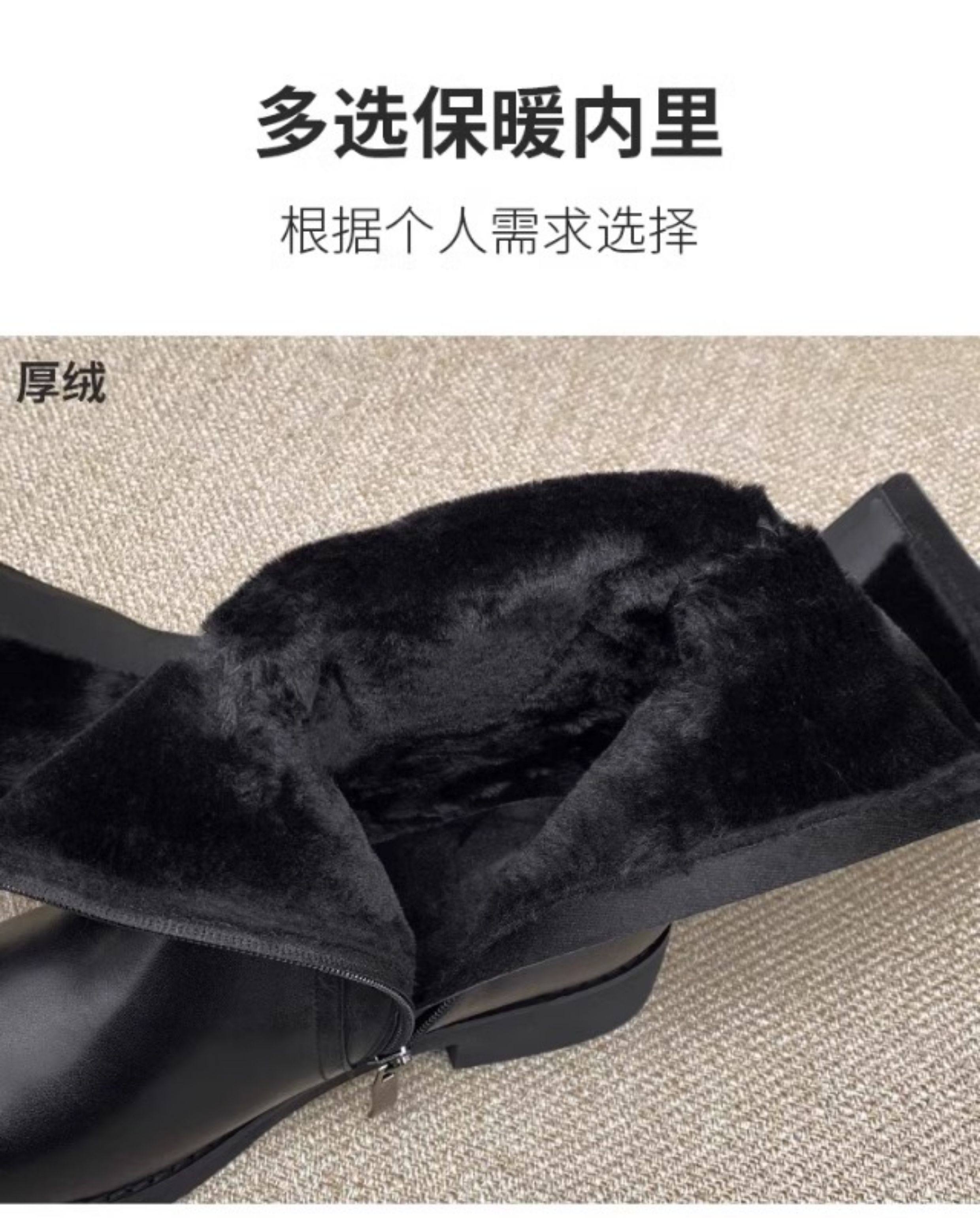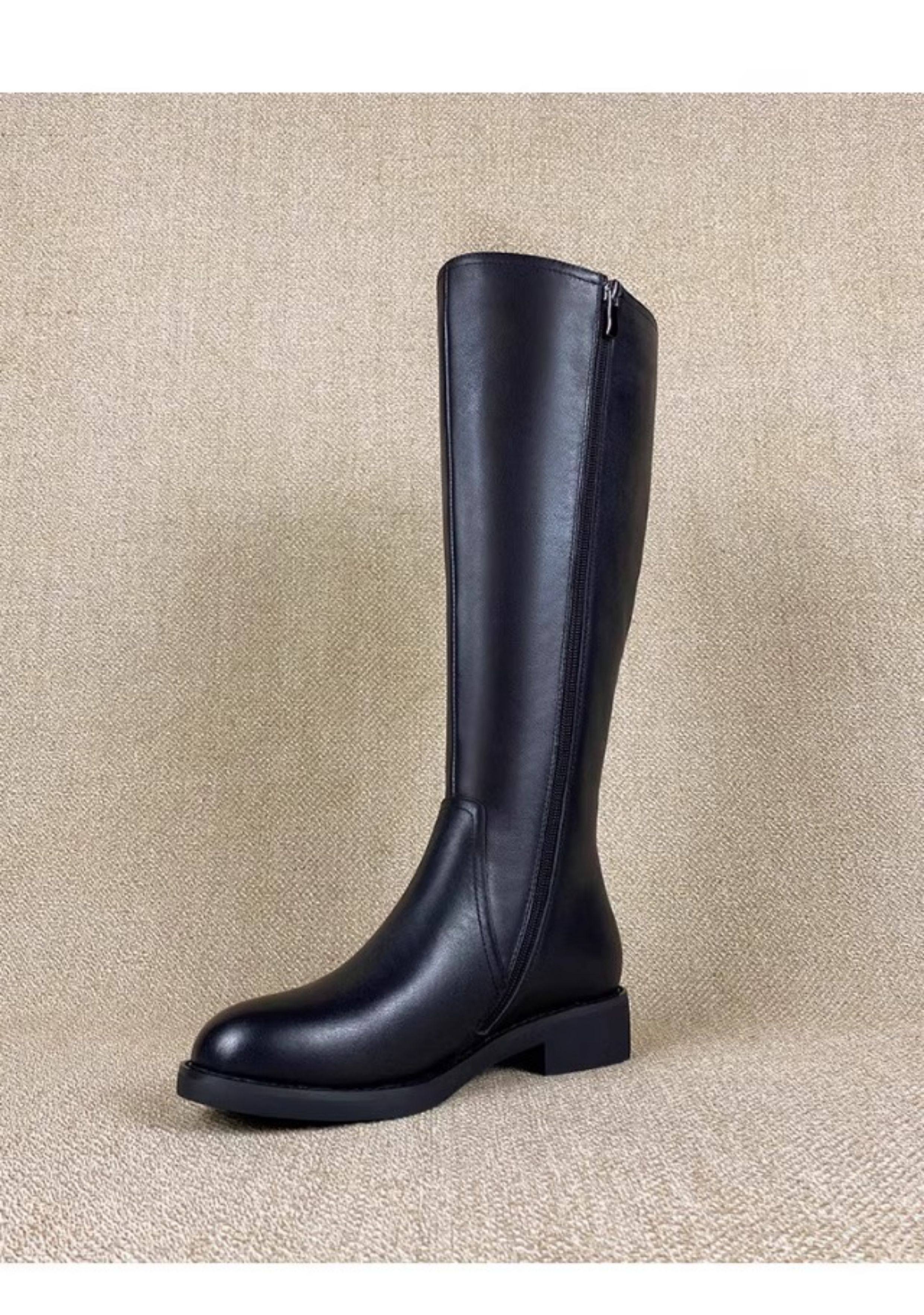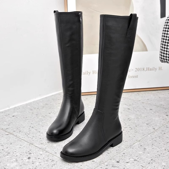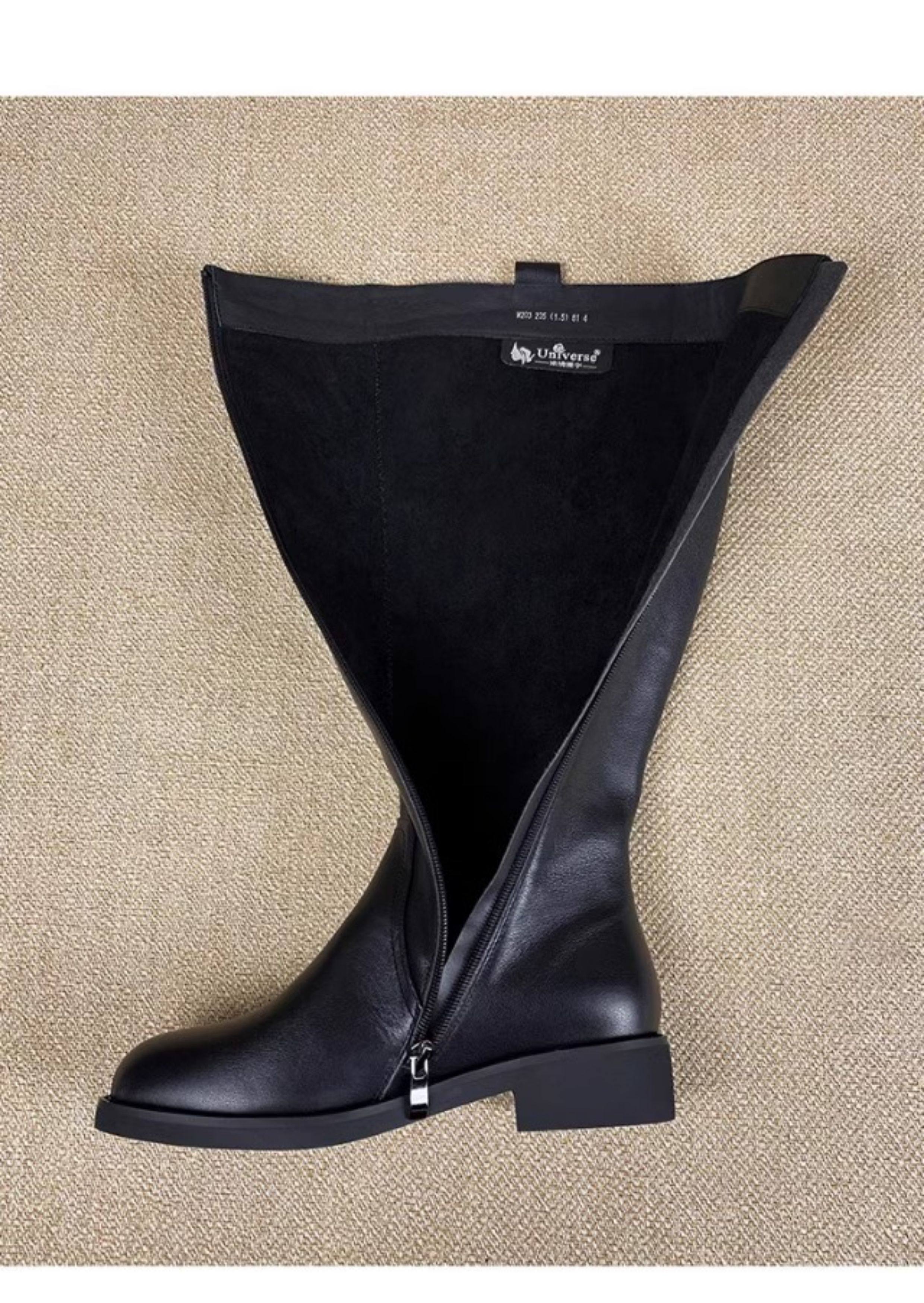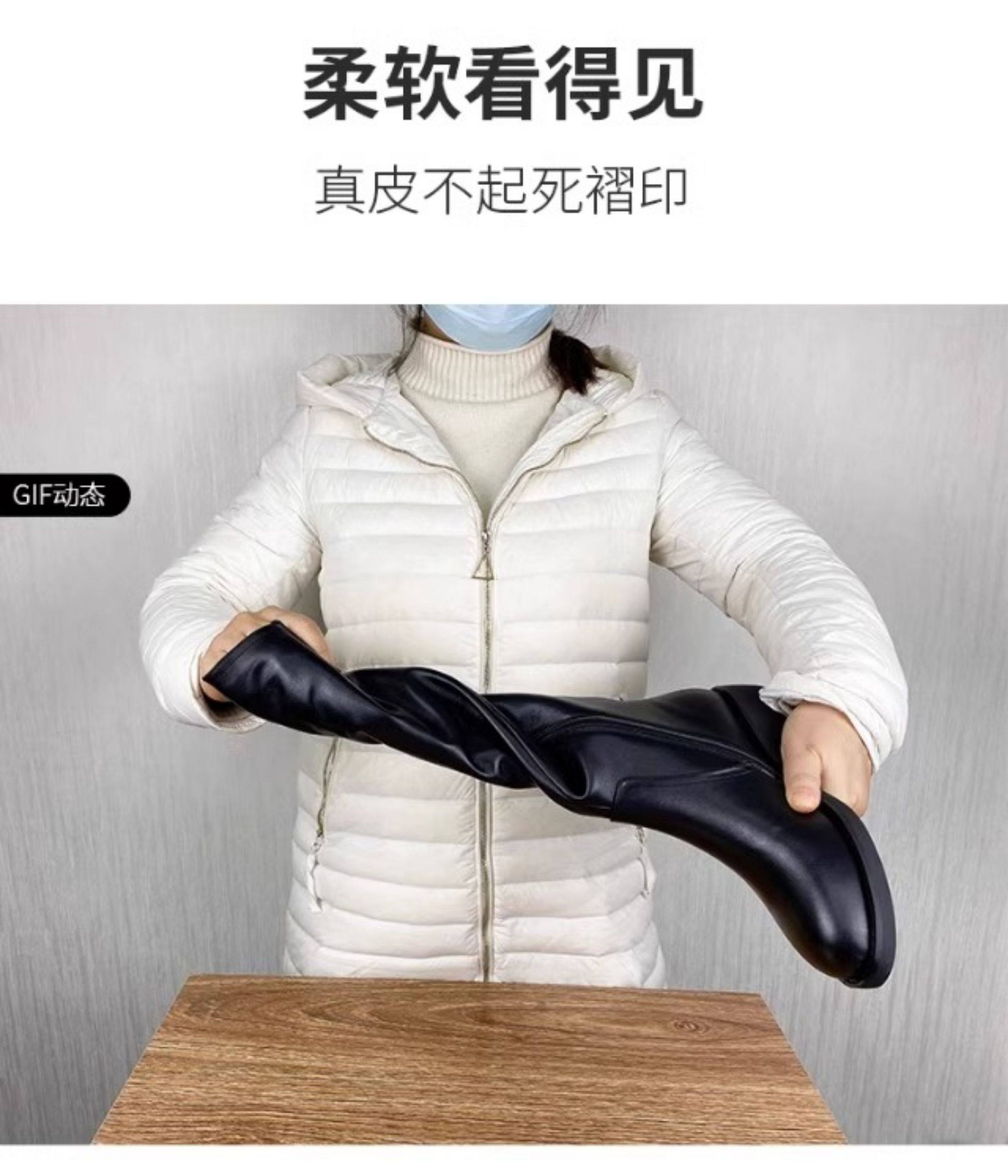 品牌撤櫃真皮騎士靴女2024秋冬新款平底不過膝長筒靴馬丁靴長筒靴