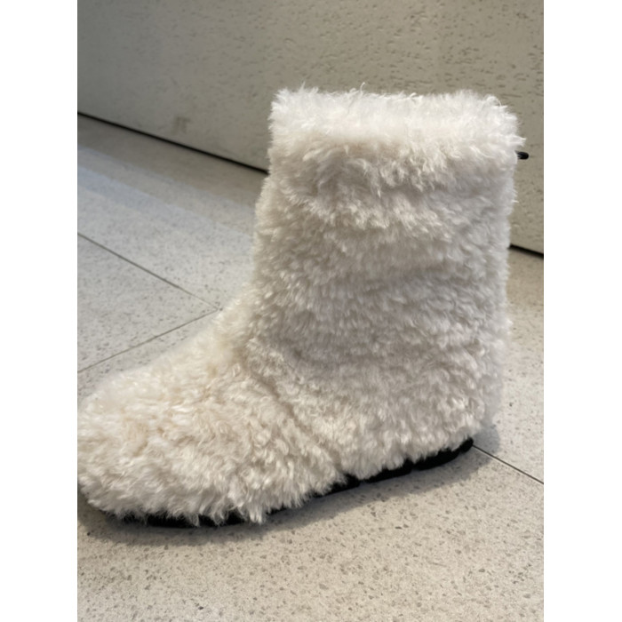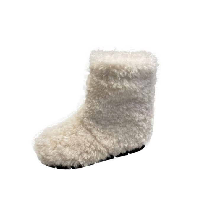 小池在首爾2025年冬季韓版可愛圓頭平底毛毛鞋加絨套筒棉靴女短靴