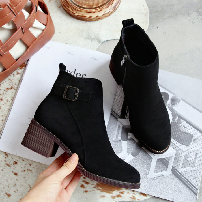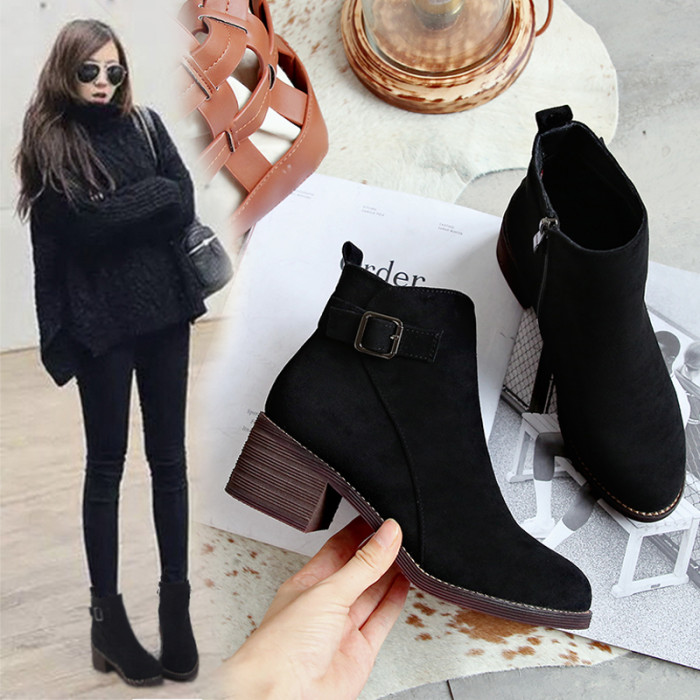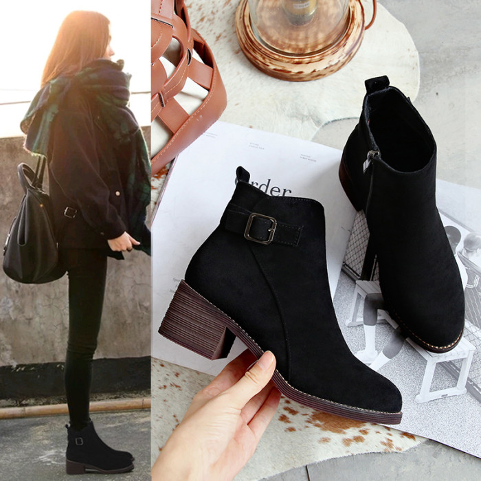 靴子女短靴2025秋冬新款高跟粗跟磨砂馬丁靴真皮瘦瘦靴子加絨棉鞋