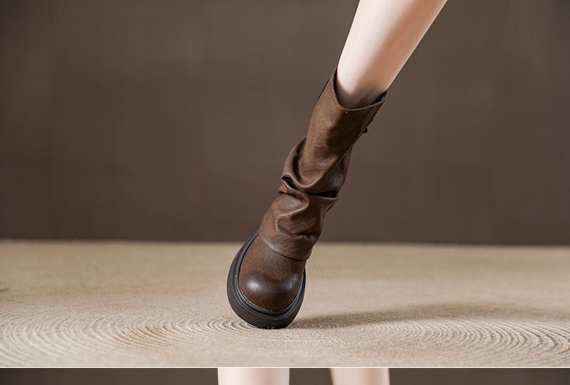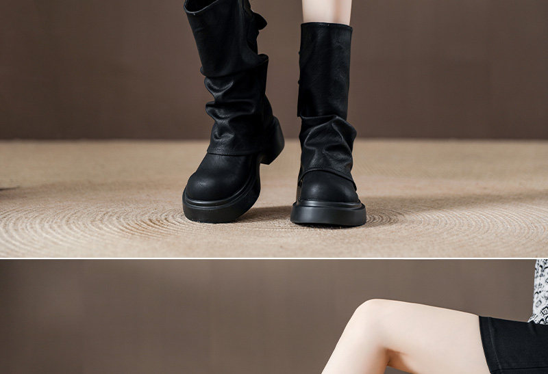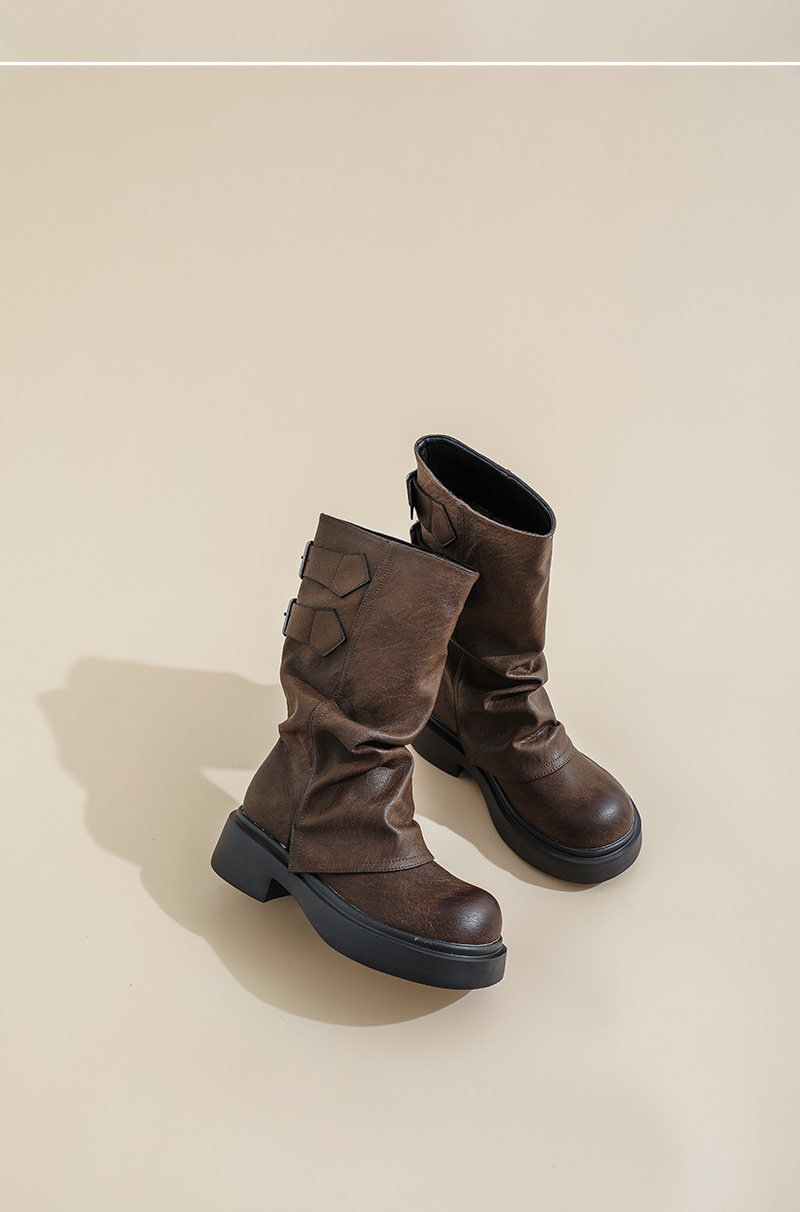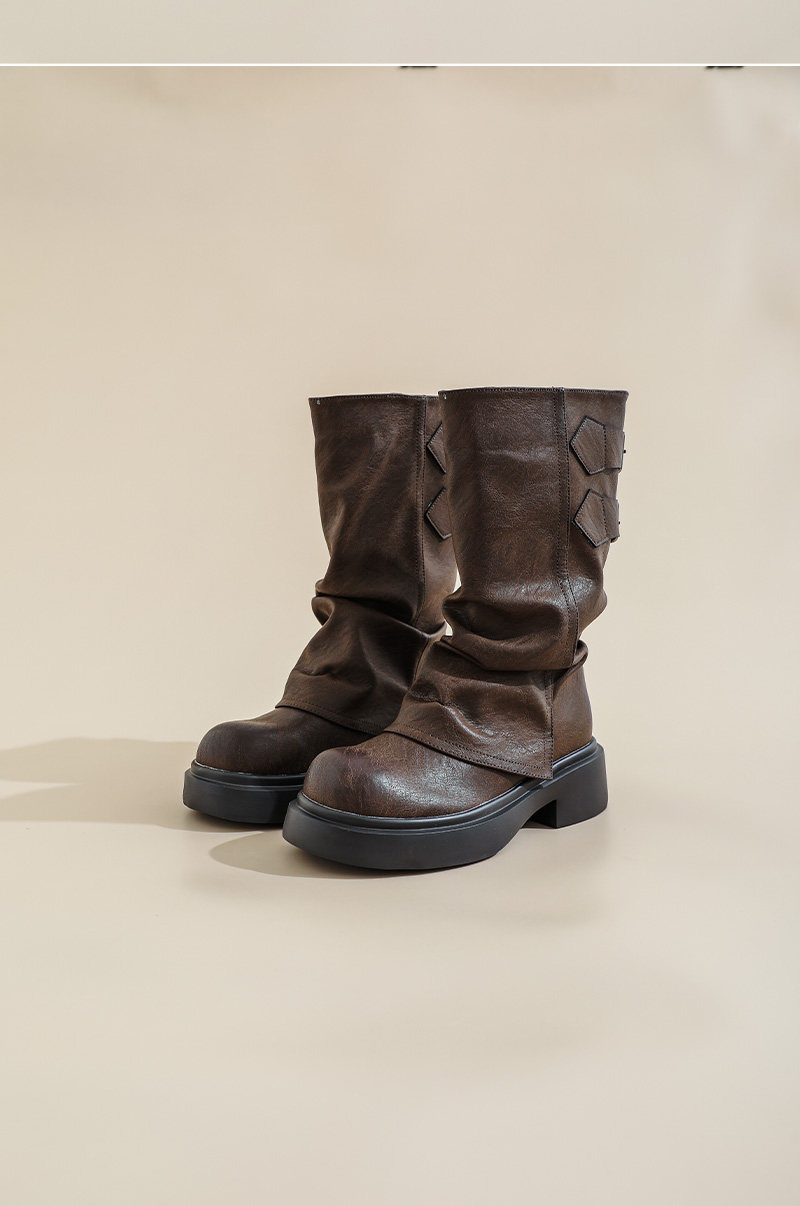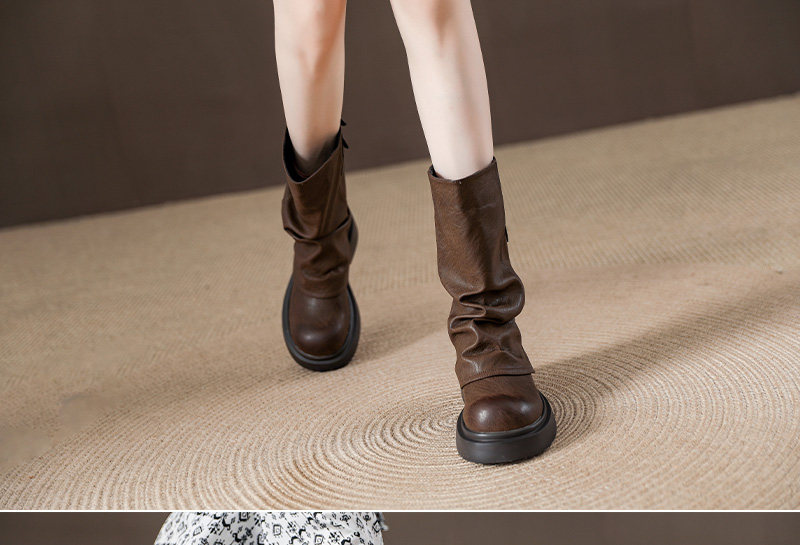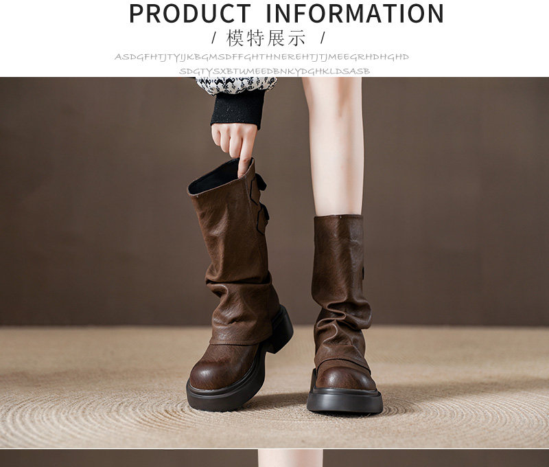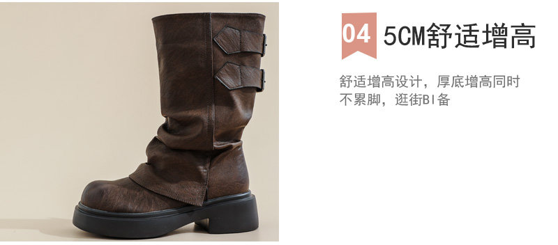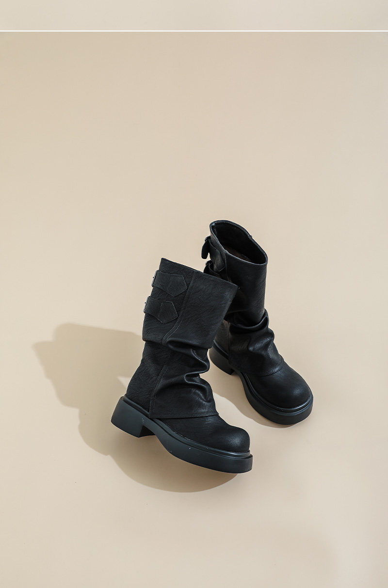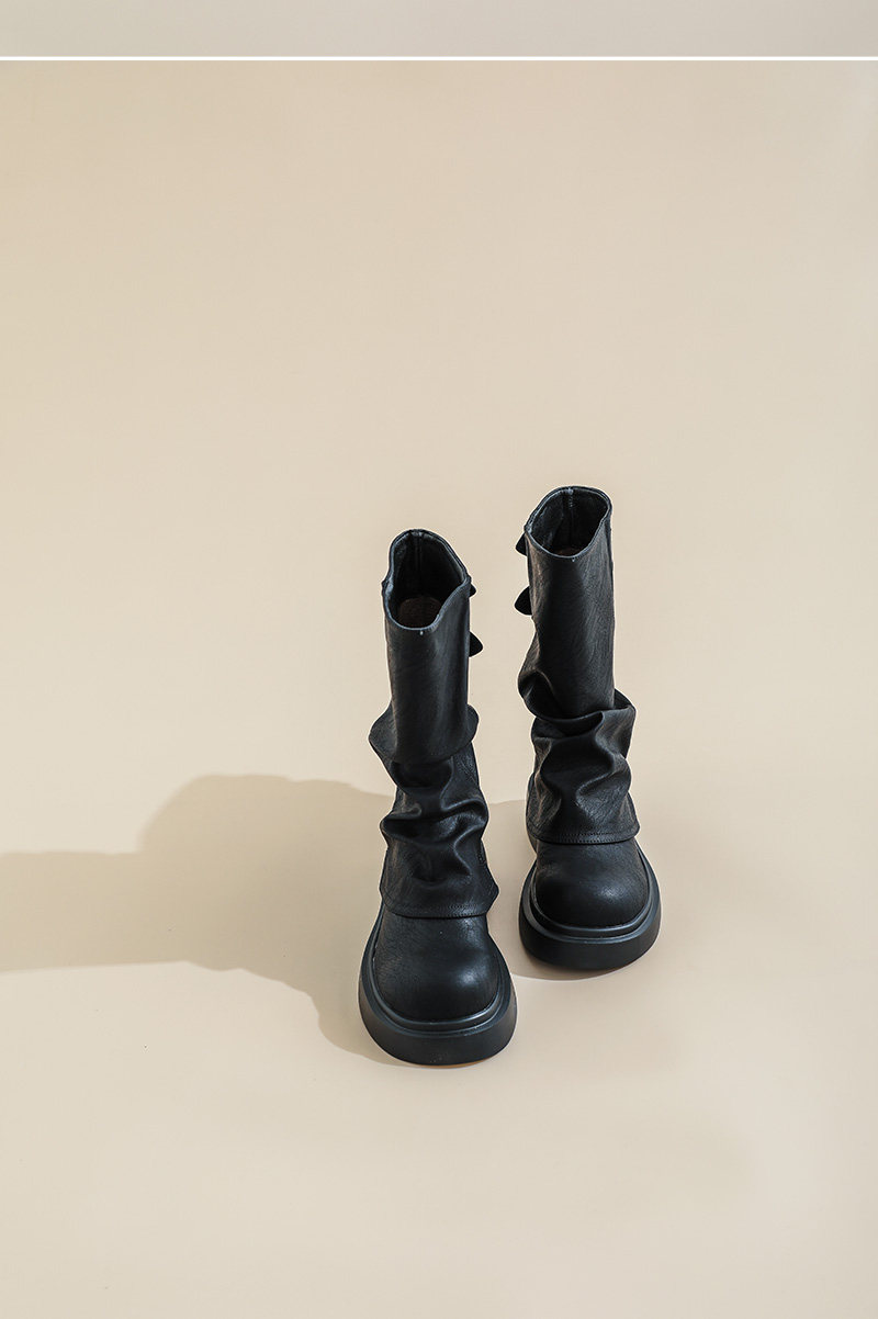復古厚底褶皺褲琯靴不過膝西部靴女2025秋季新款高筒堆堆靴騎士靴
