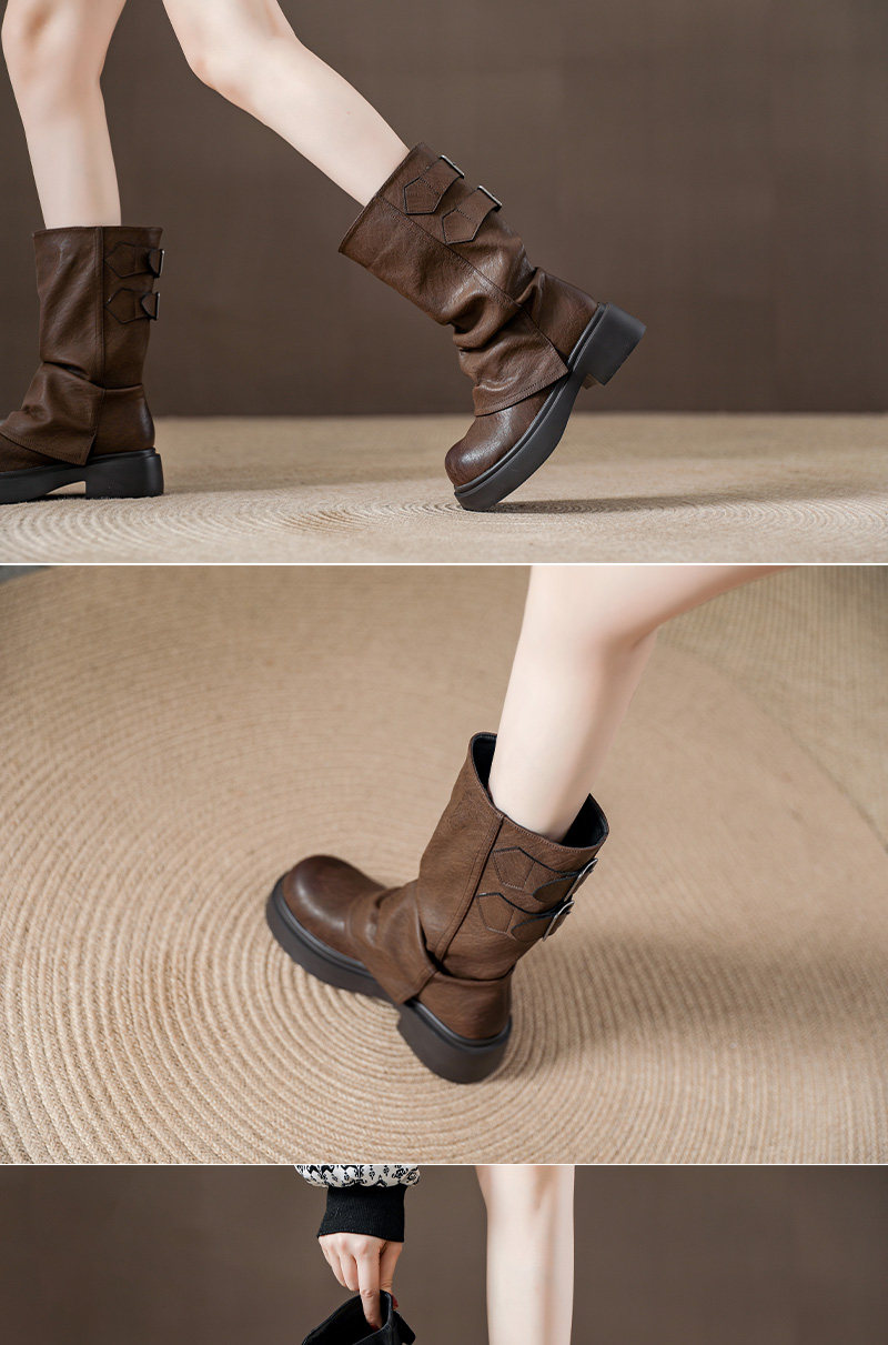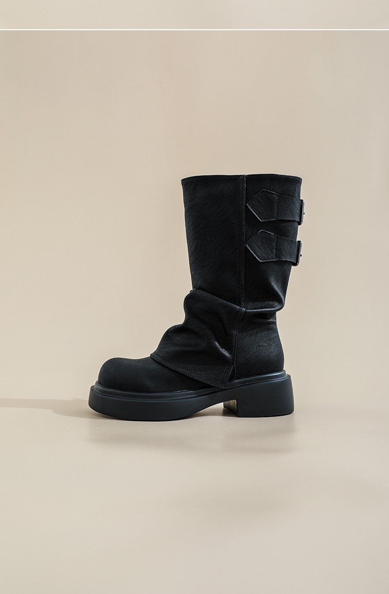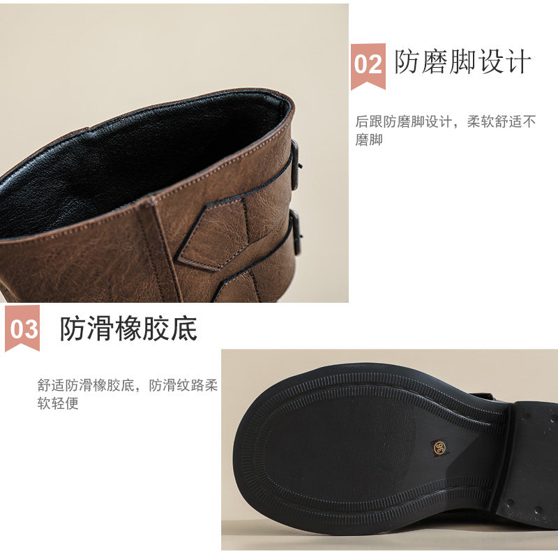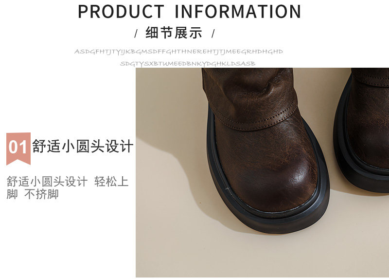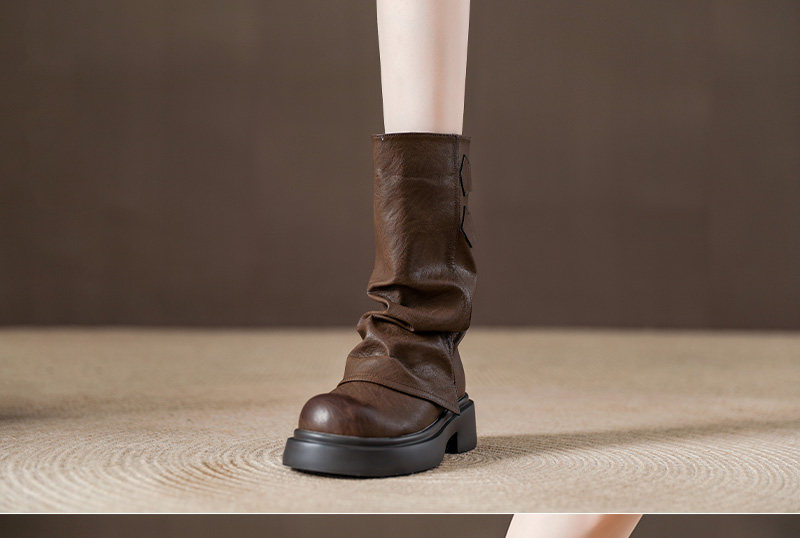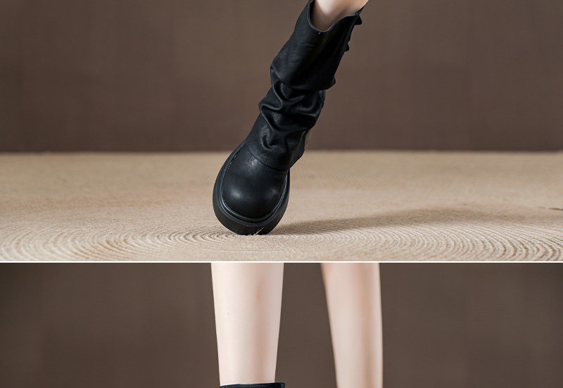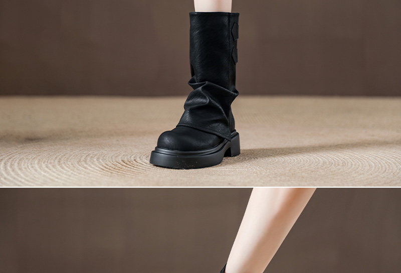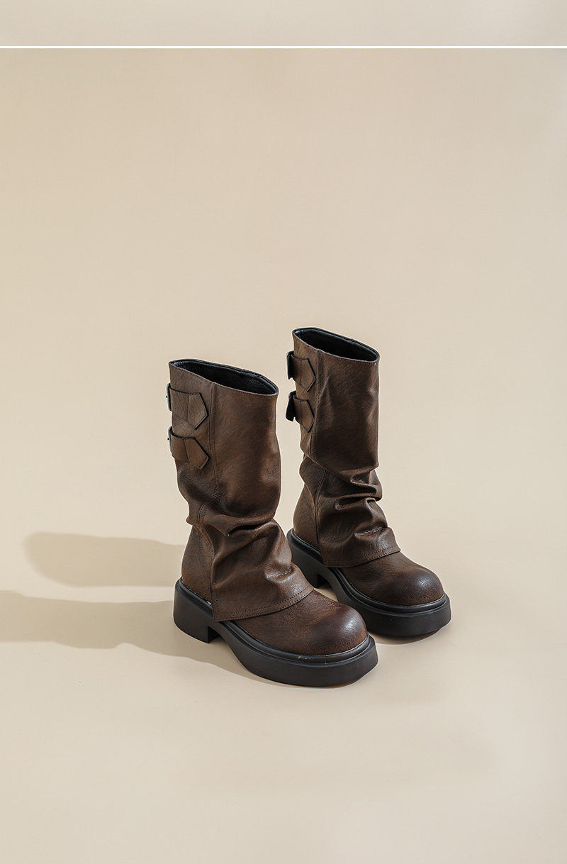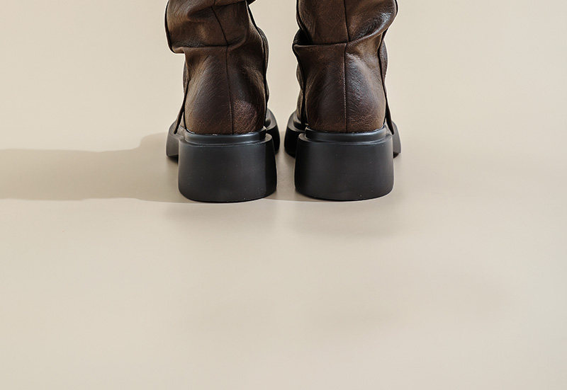 復古厚底褶皺褲琯靴不過膝西部靴女2025秋季新款高筒堆堆靴騎士靴