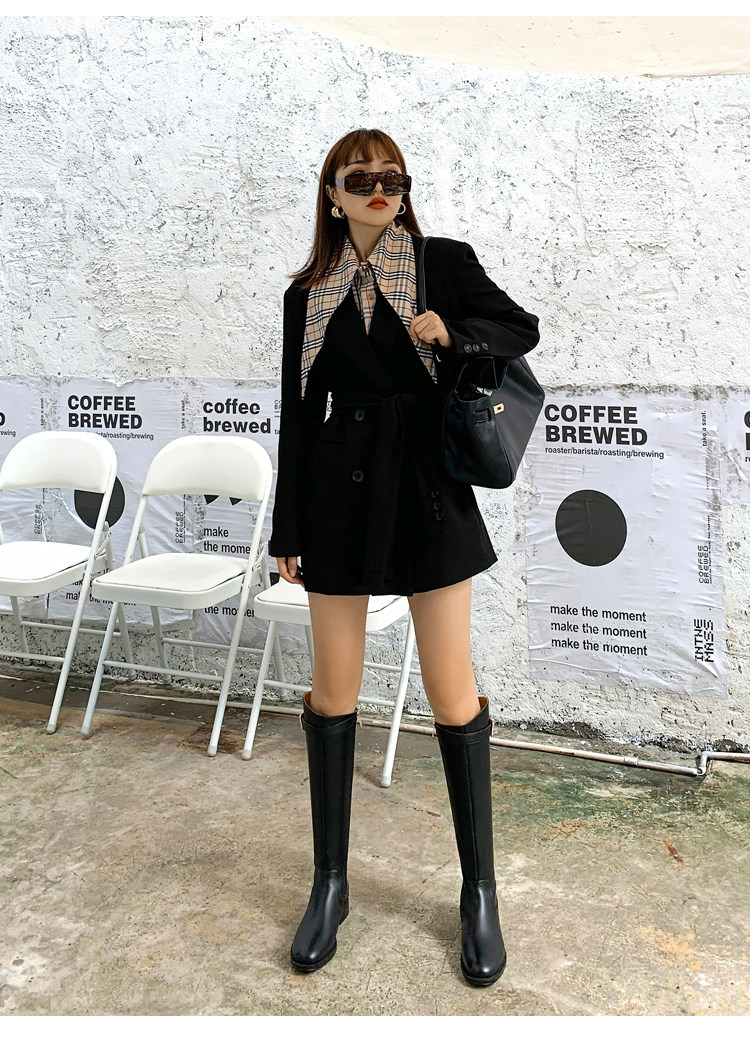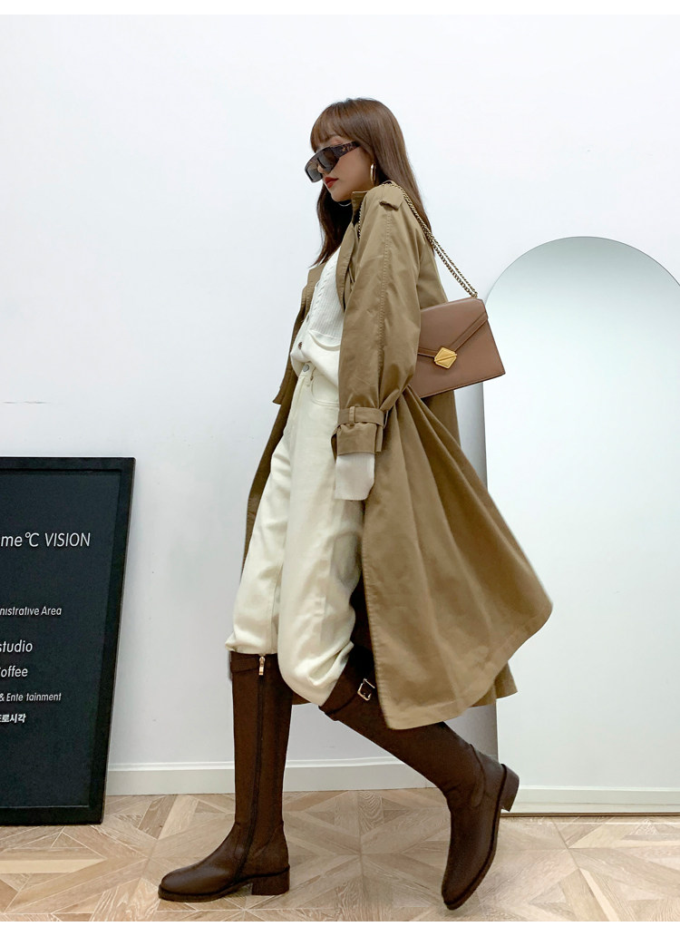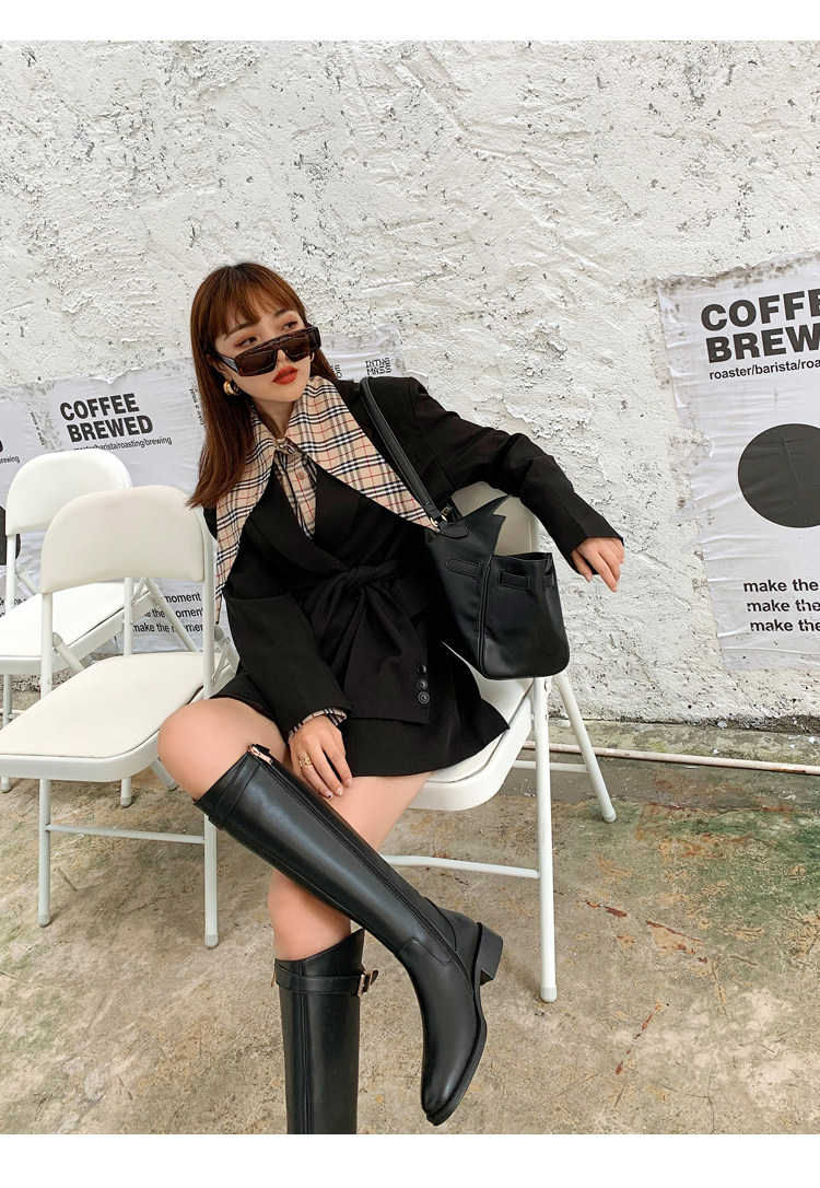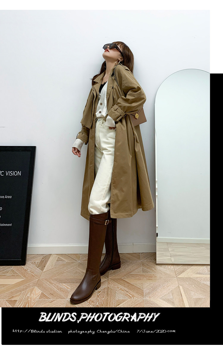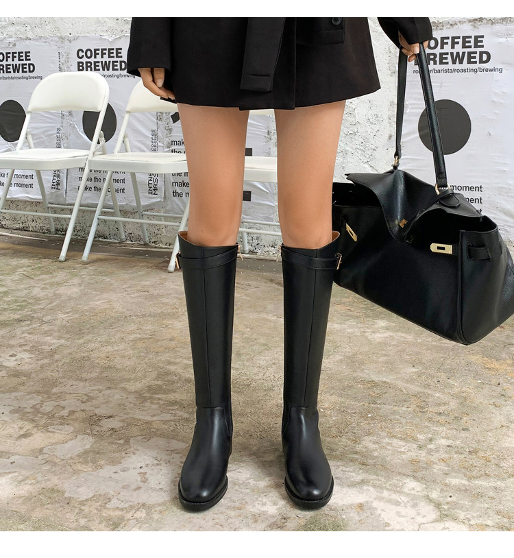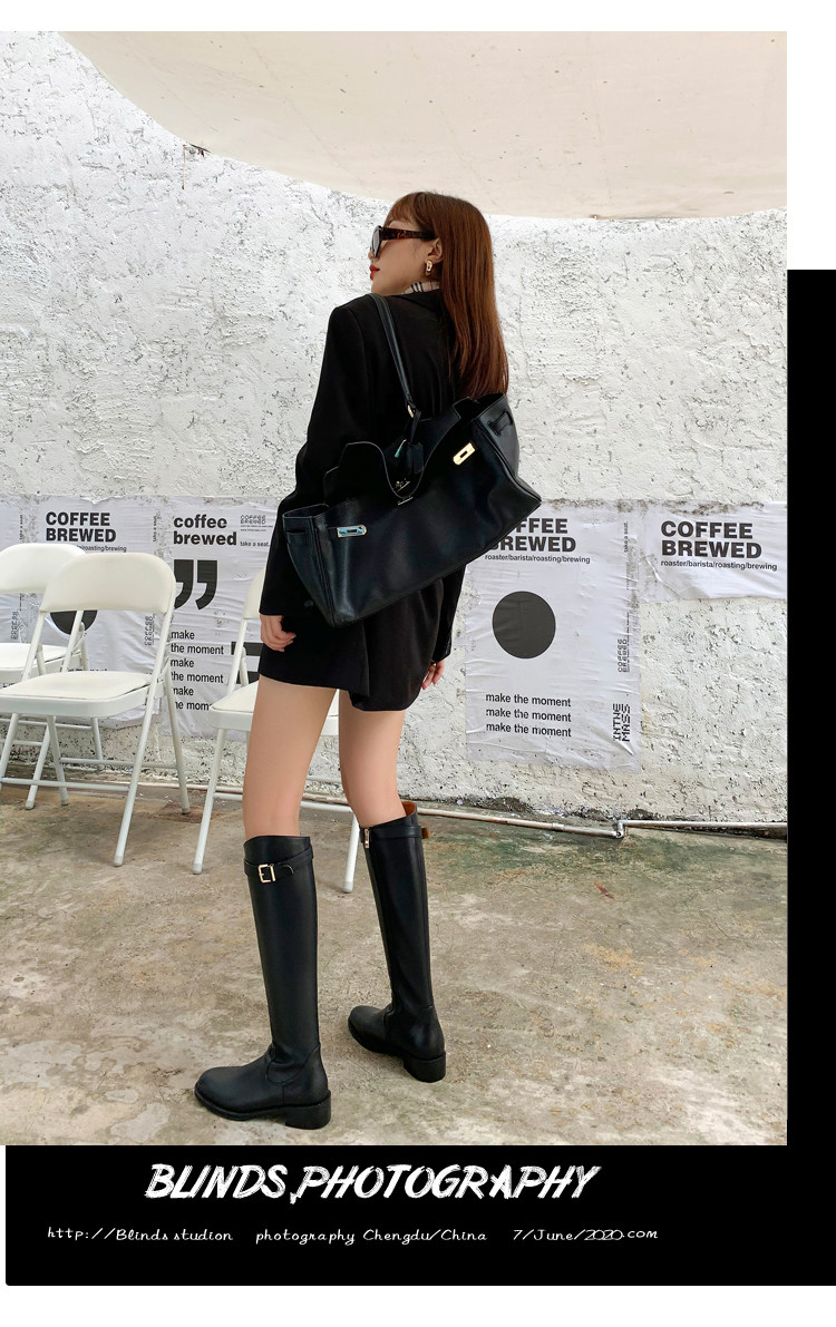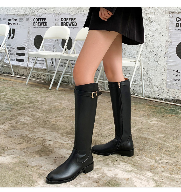 棕色平底騎士靴女2025秋冬新款韓版小個子低跟高筒靴顯瘦真皮長靴