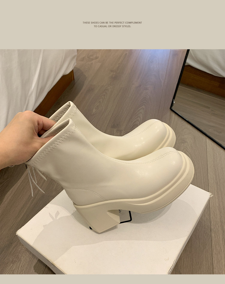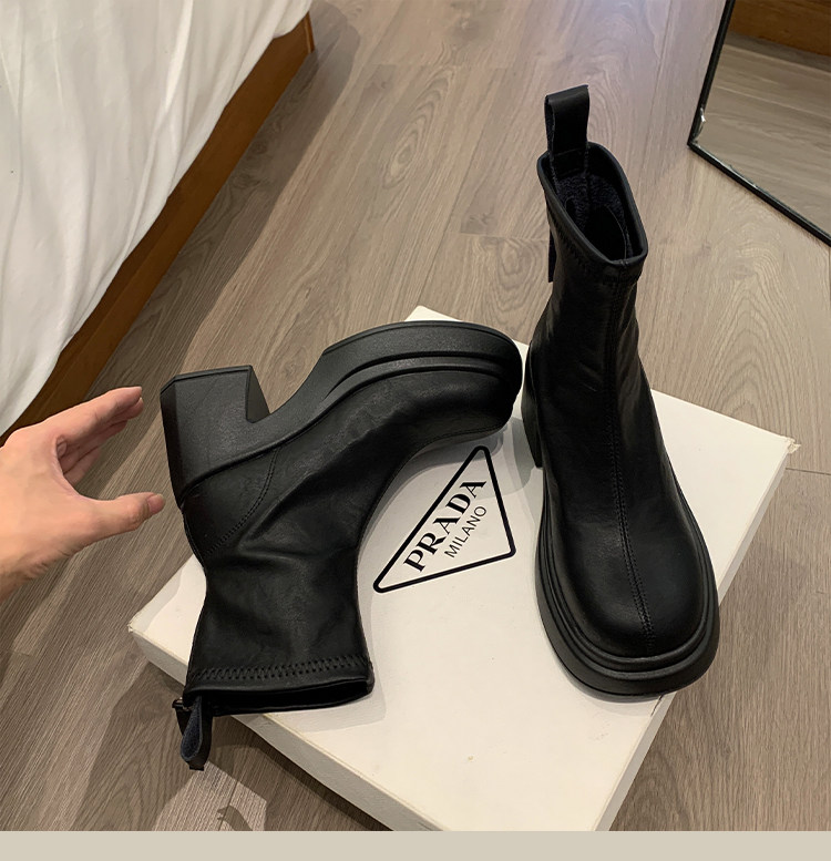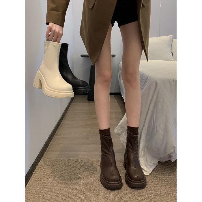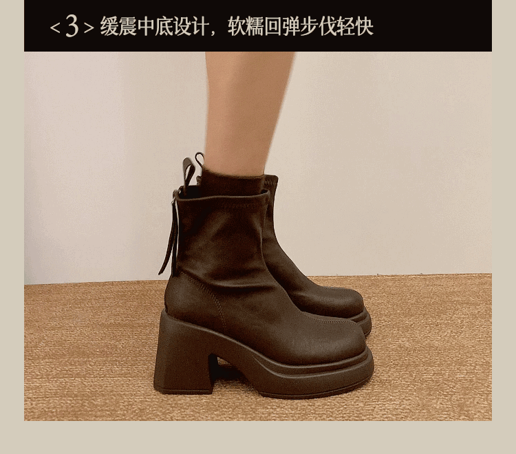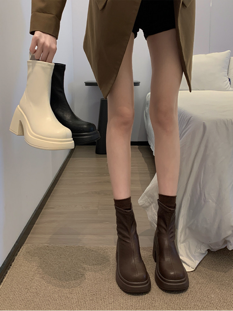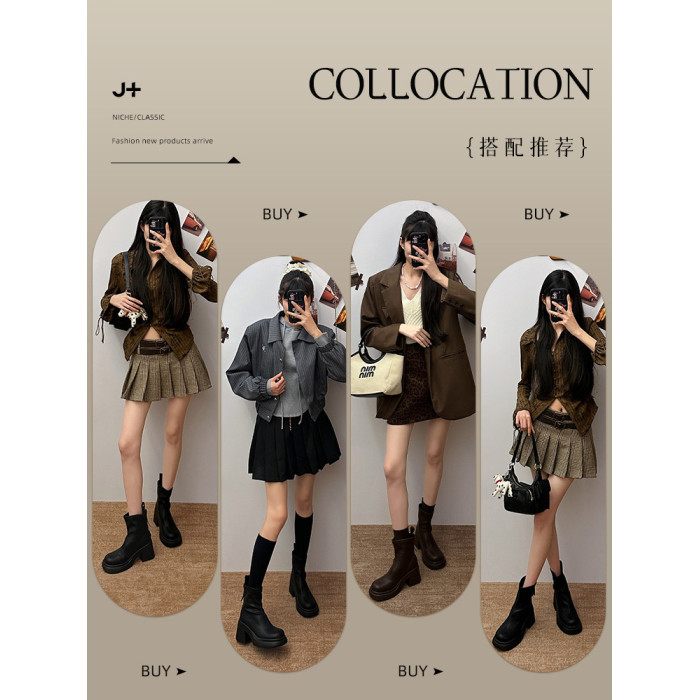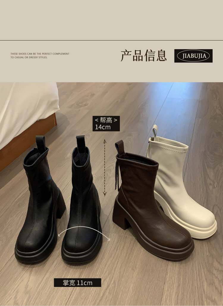 賈不假短靴女2026新款春季配裙子粗跟靴子小個子厚底增高高跟靴子