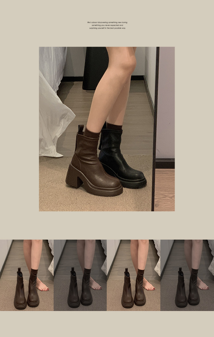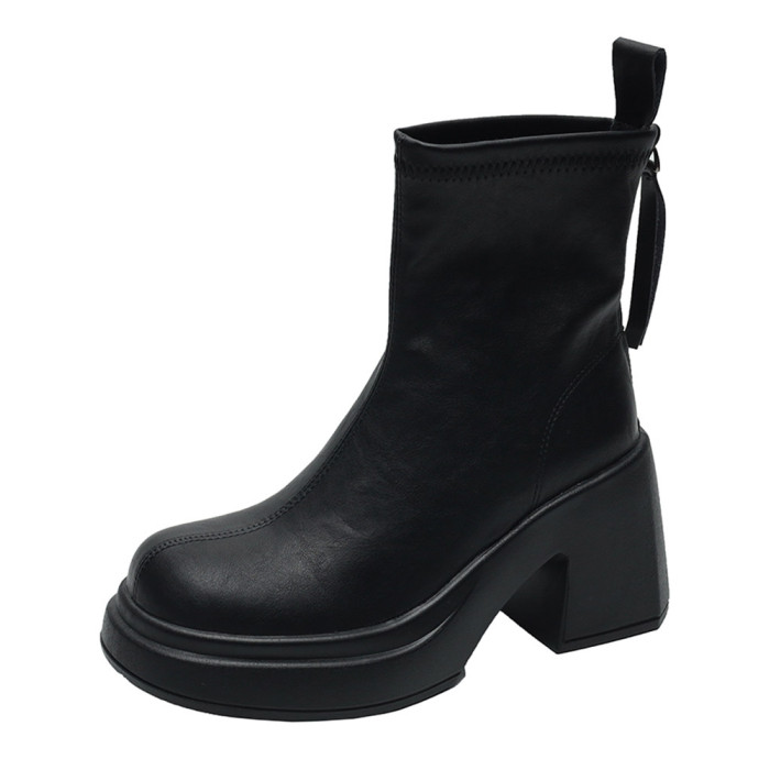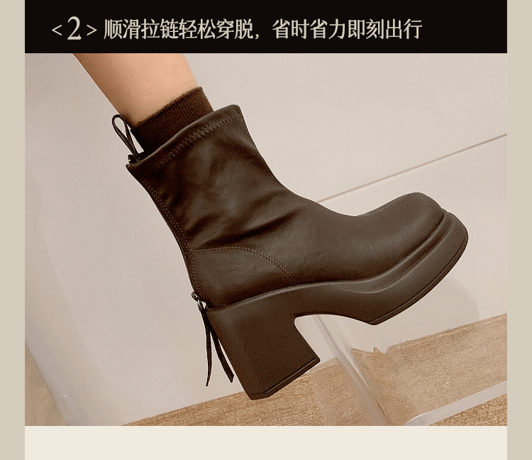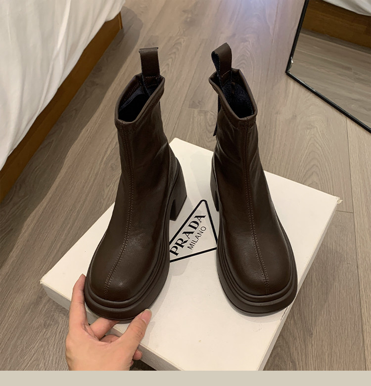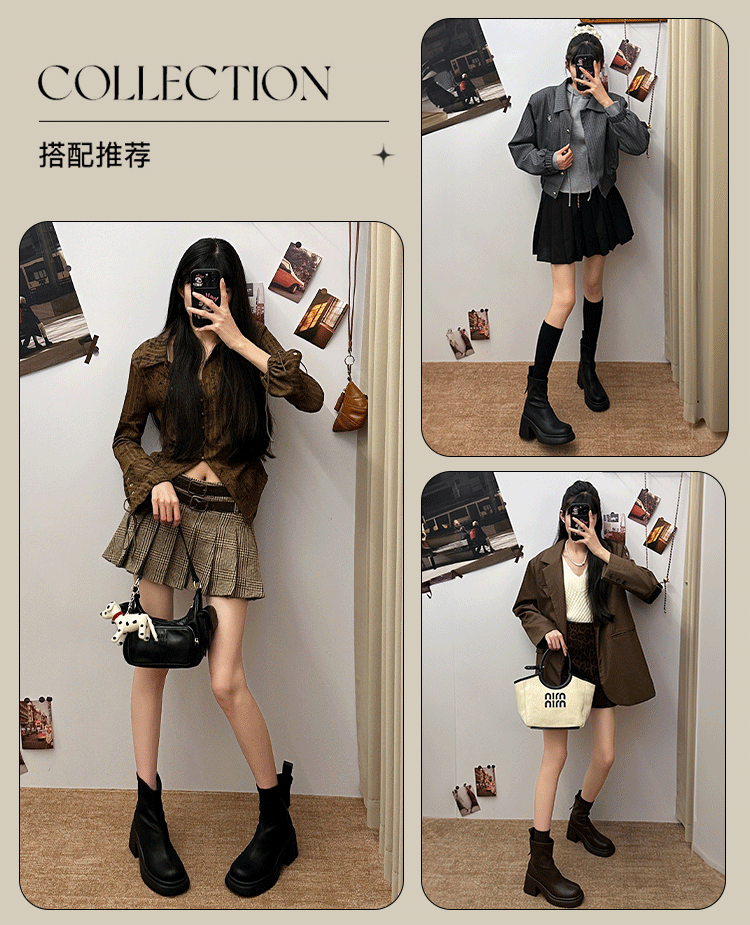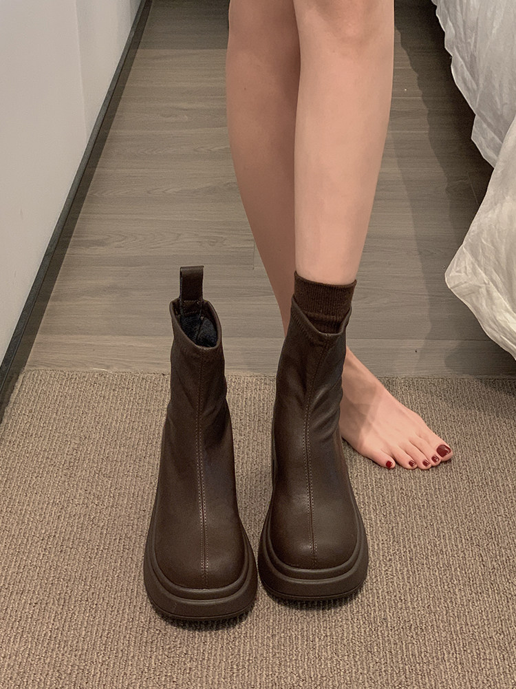 賈不假短靴女2026新款春季配裙子粗跟靴子小個子厚底增高高跟靴子