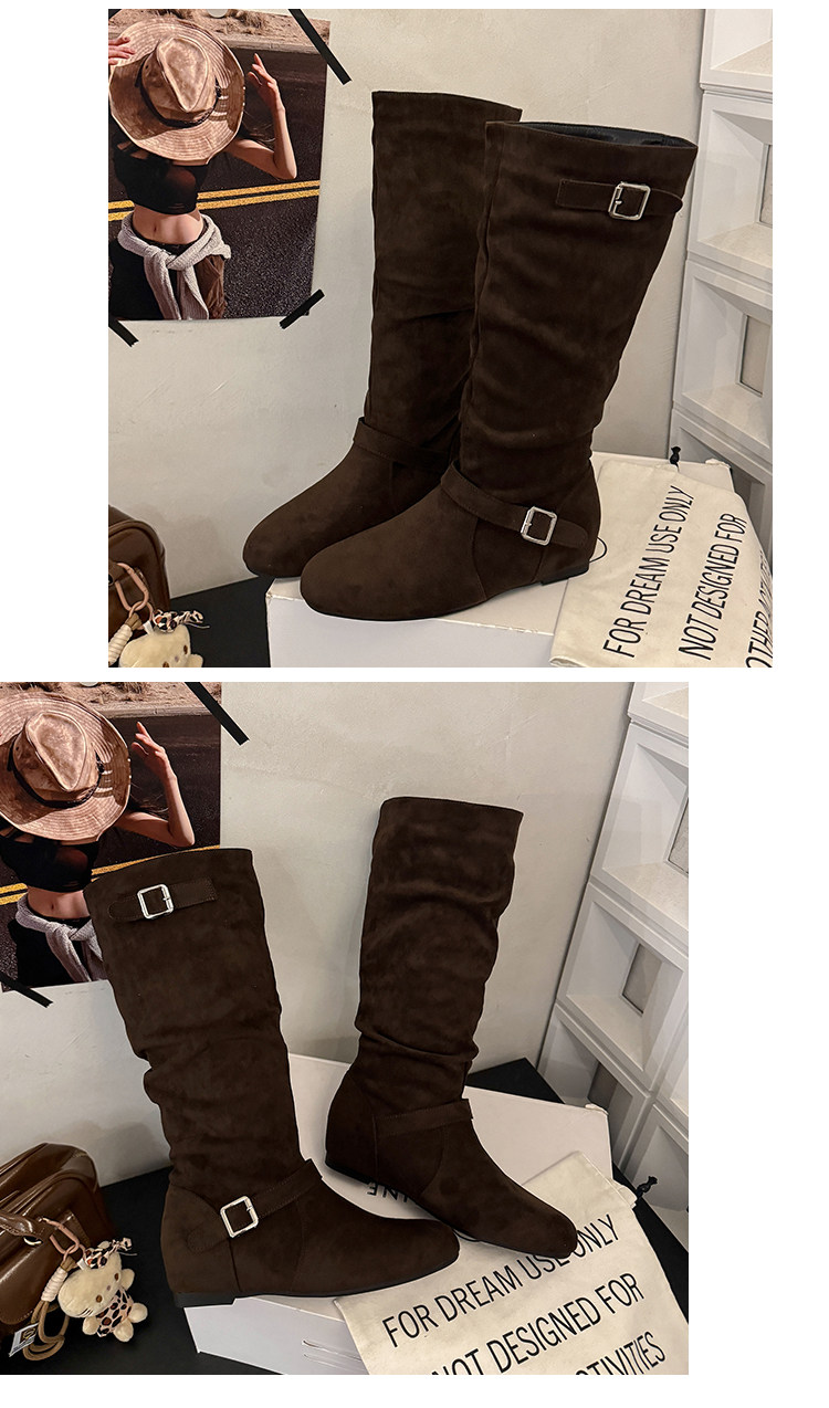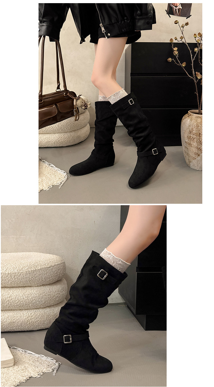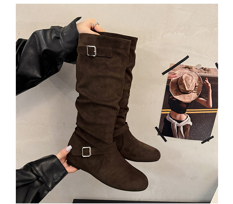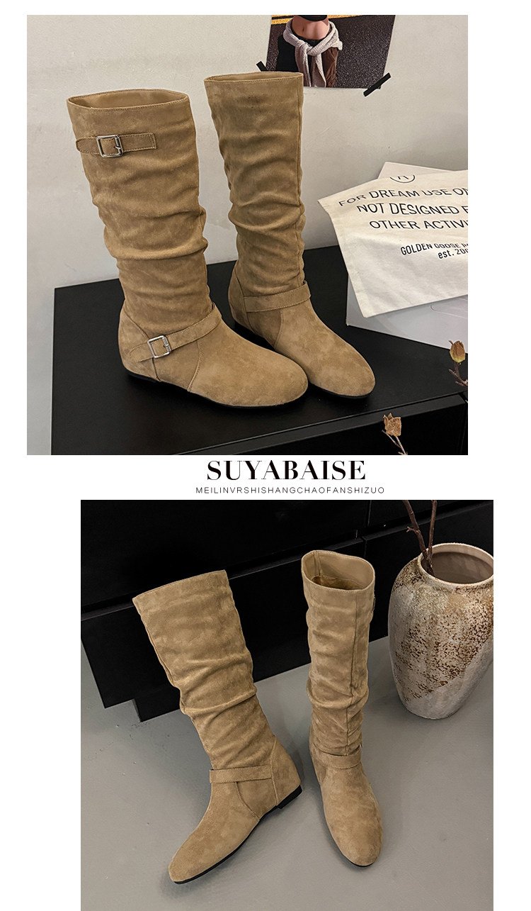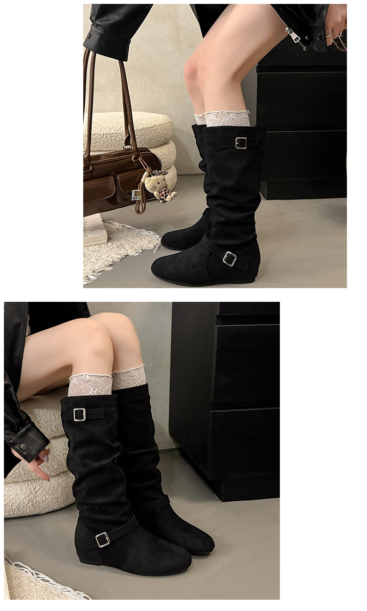復古堆堆長筒靴女秋冬新款平底不過膝高筒騎士靴內增高西部牛仔靴