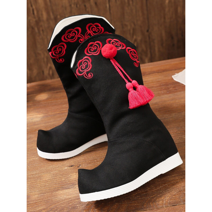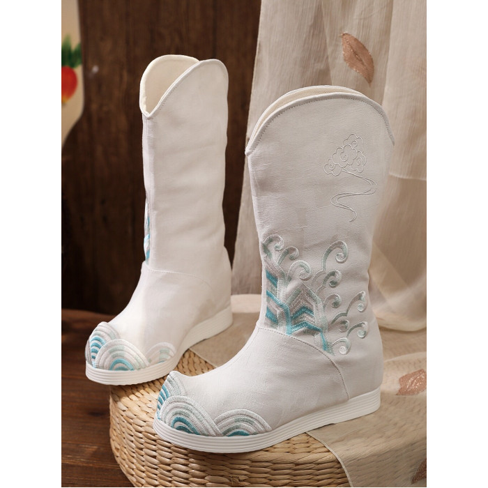 冬季古裝靴子內增高長靴古風男女古代武俠情侶演出配漢服圓領袍鞋