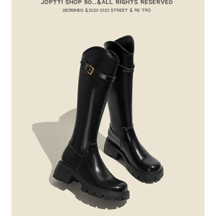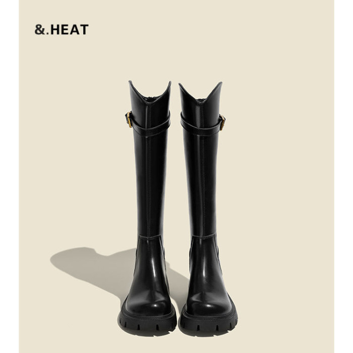 皮帶釦小個子長靴女不過長筒靴2025春秋新款瘦瘦筒百搭騎士靴