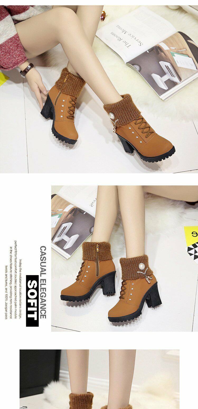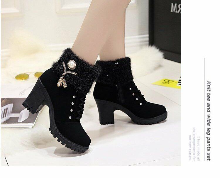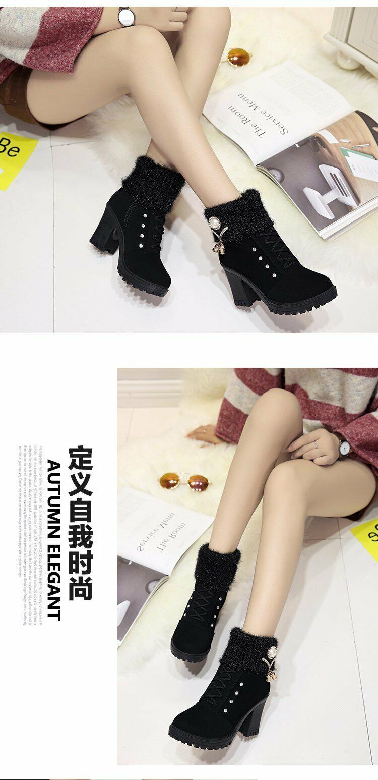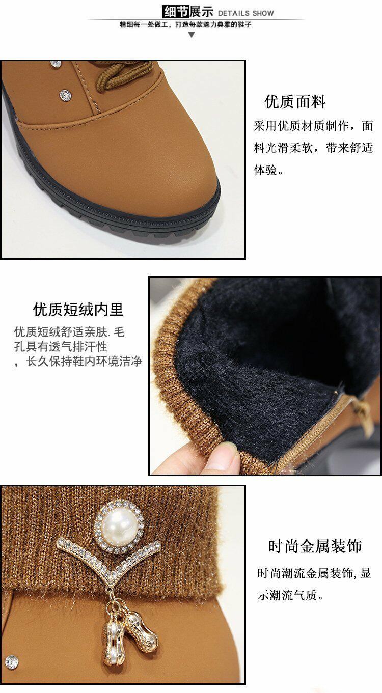 珍珠女鞋新款女靴磨砂靴子女休閒保暖春秋冬季短筒馬丁靴中跟粗跟