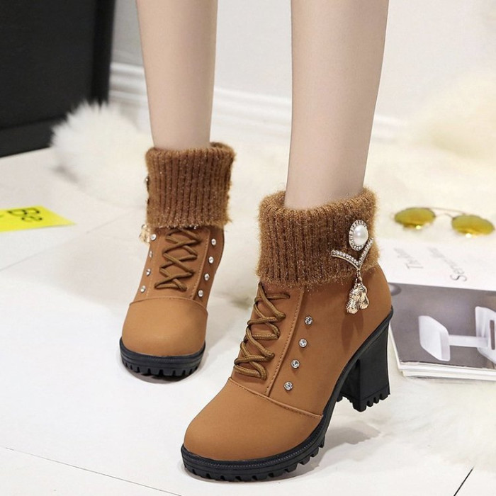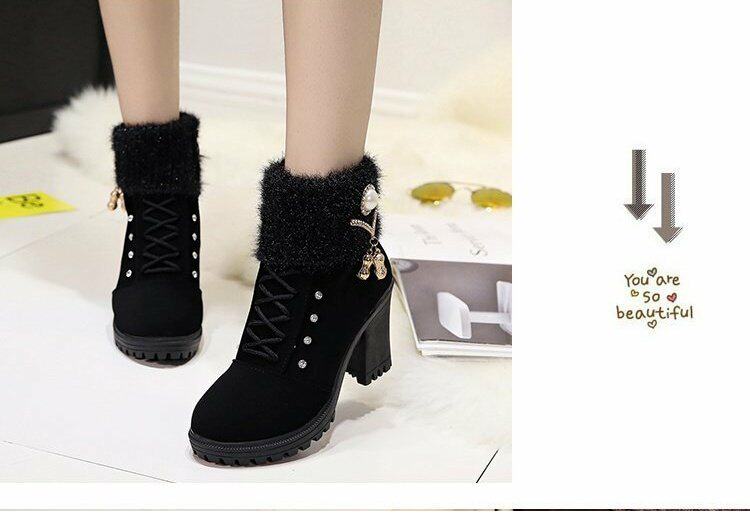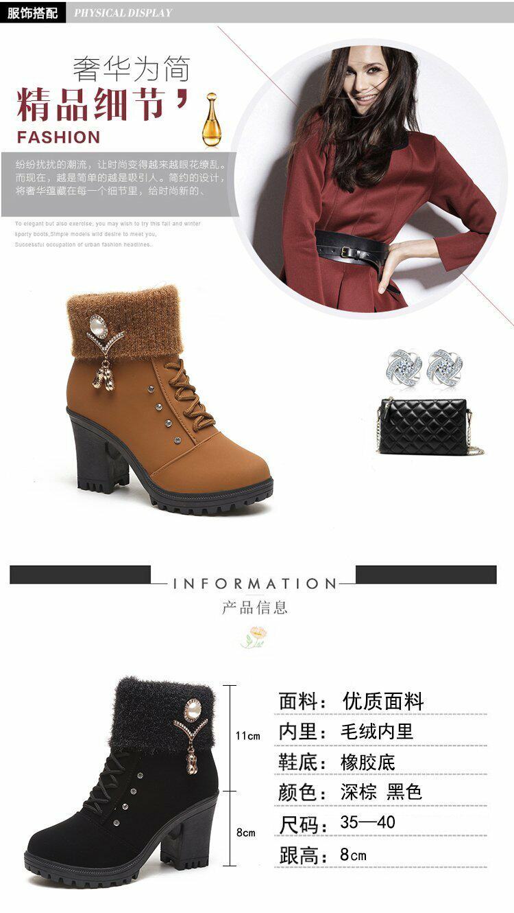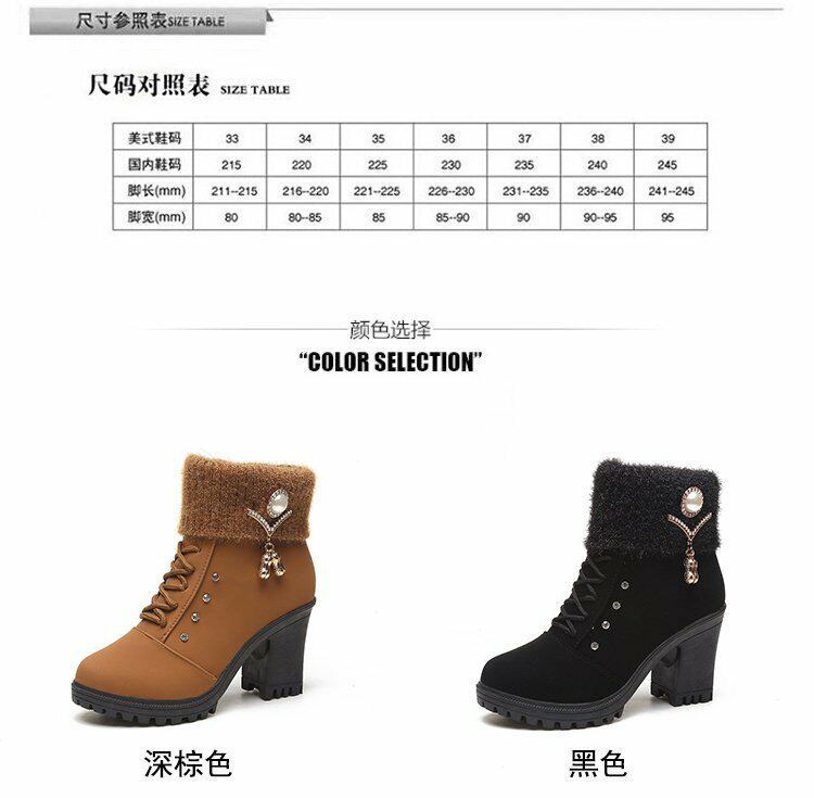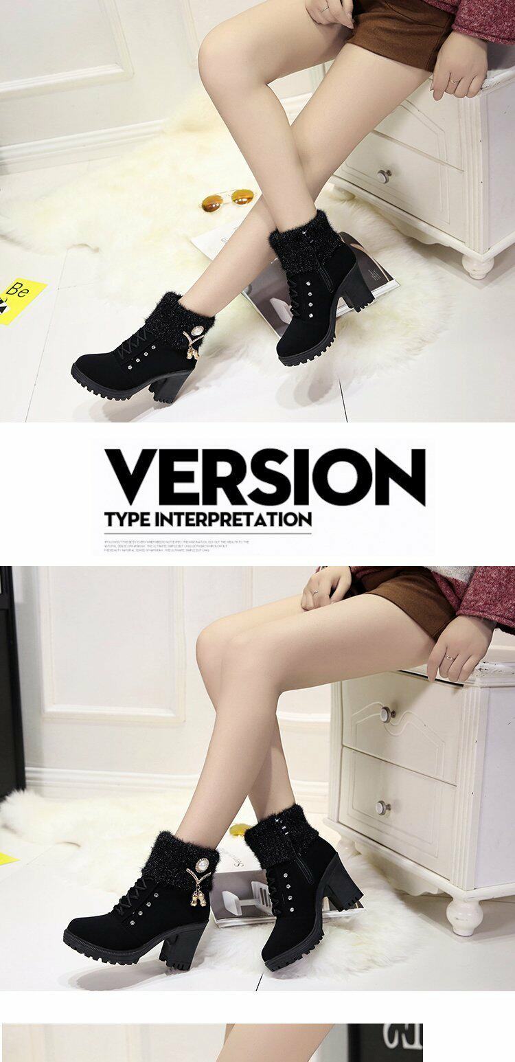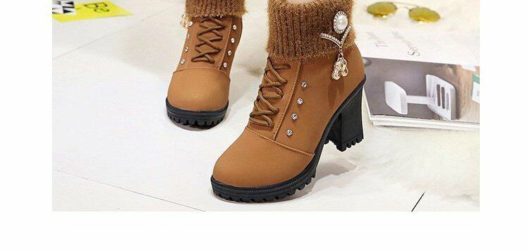 珍珠女鞋新款女靴磨砂靴子女休閒保暖春秋冬季短筒馬丁靴中跟粗跟