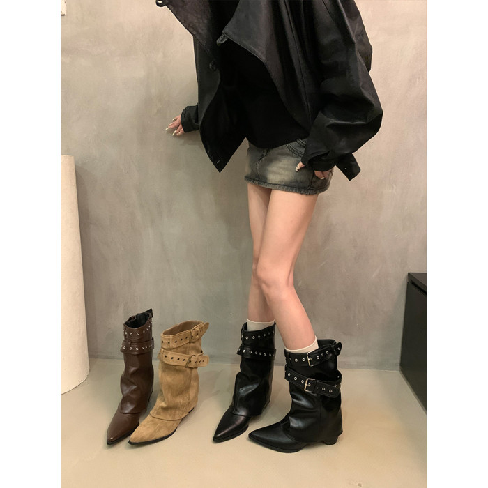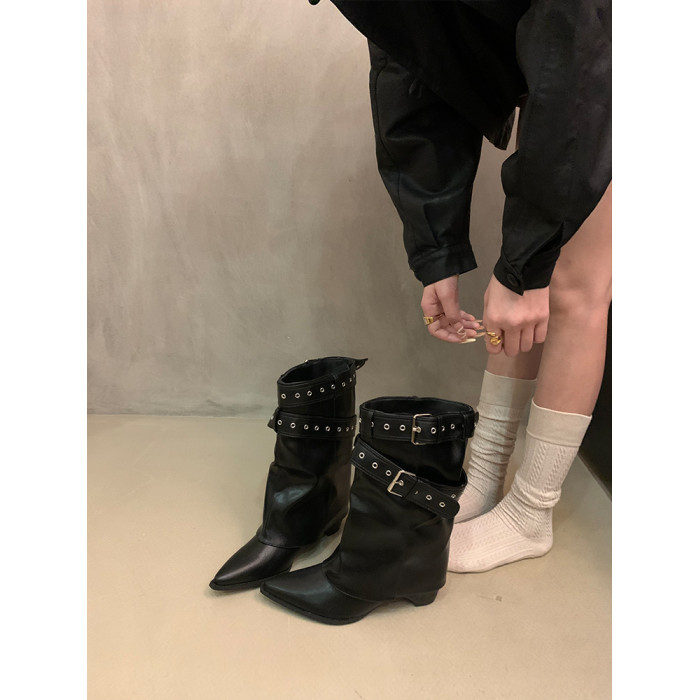 美式辣妹皮帶釦褲琯靴短筒靴女靴2025早秋新款小衆設計短靴西部靴