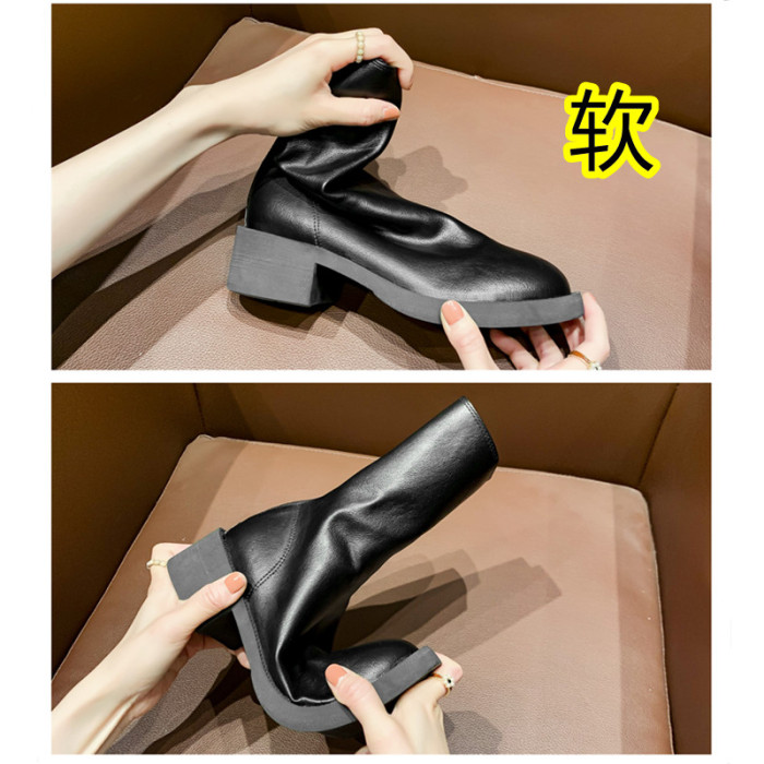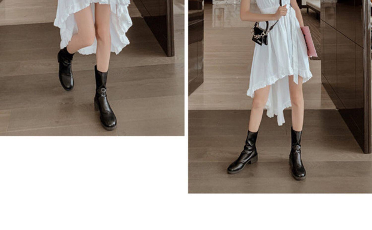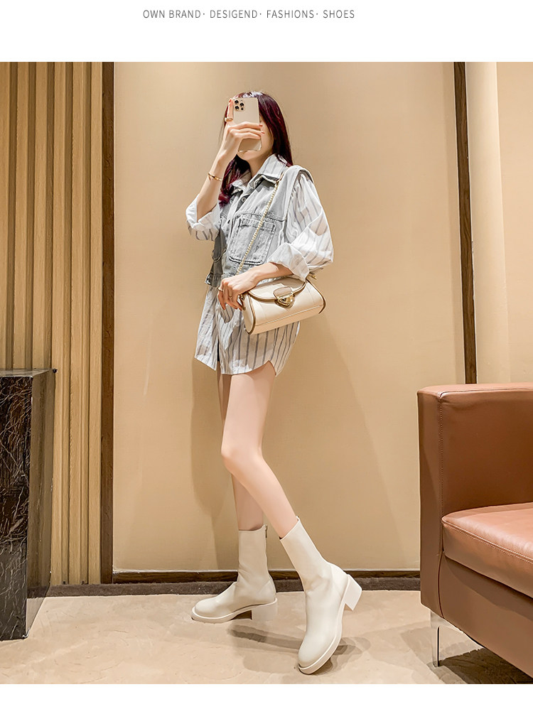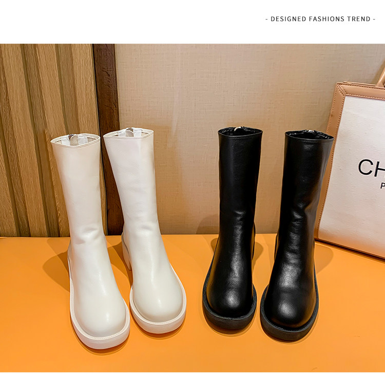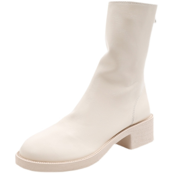 米白色馬丁瘦瘦靴子春秋季騎士靴冬款女2025新款單靴中筒靴短靴女