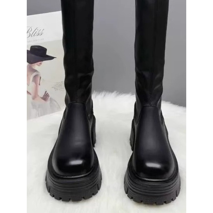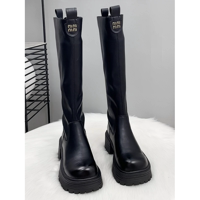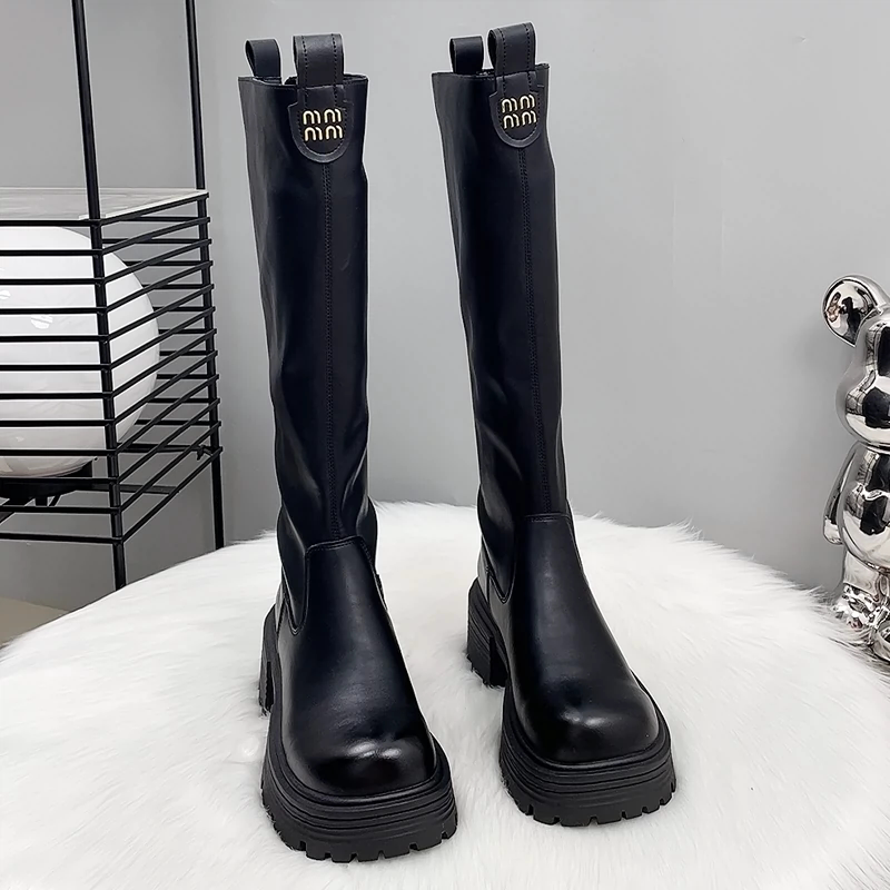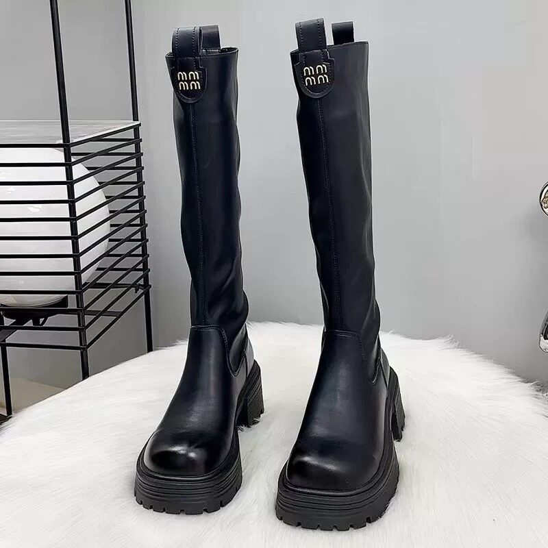 香港真皮厚底加絨長筒靴女秋冬2026新款爆款顯瘦不過膝高筒騎士靴