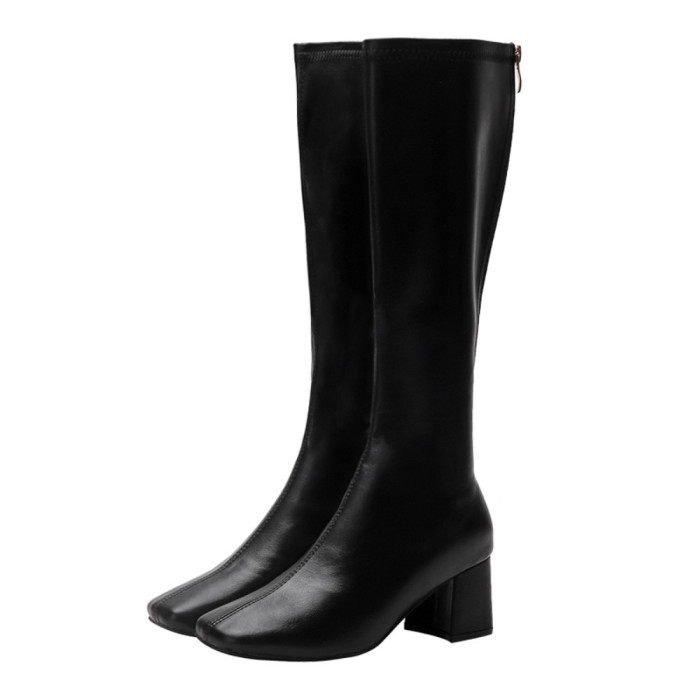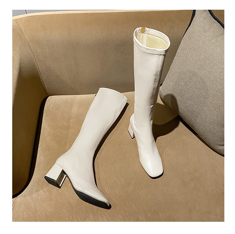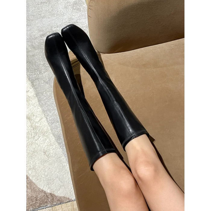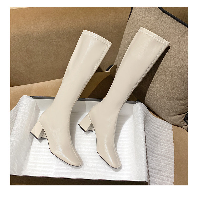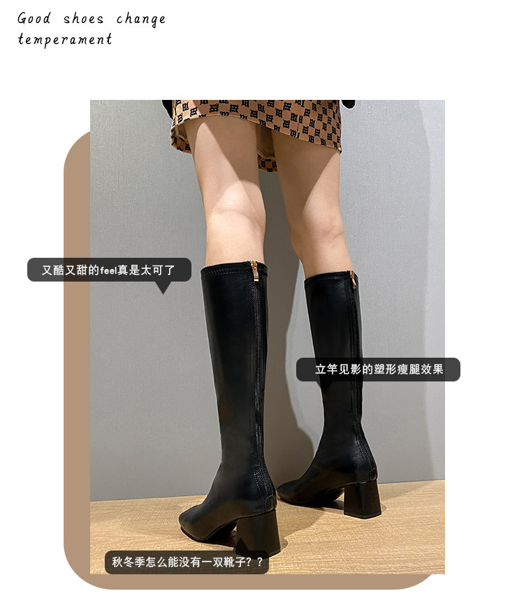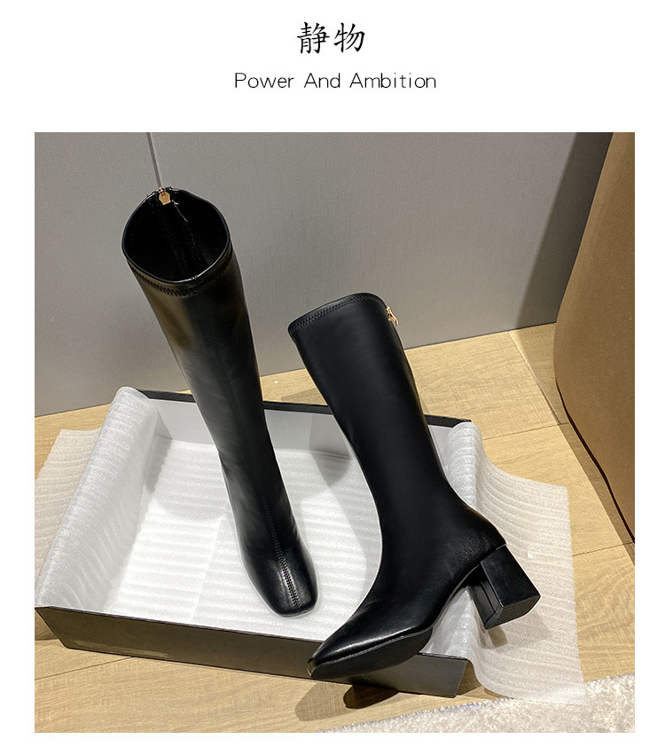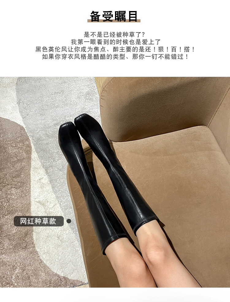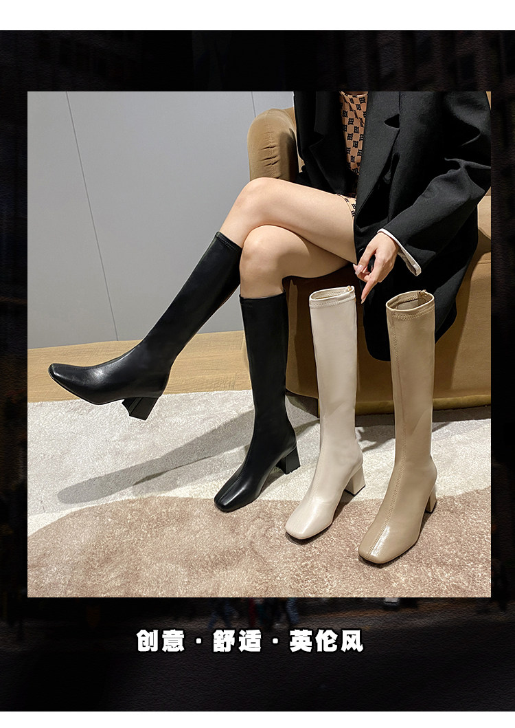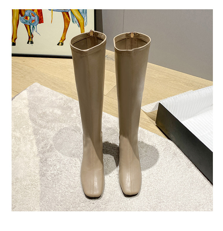 長筒靴女2025春秋彈力靴瘦瘦粗跟方頭及膝靴高筒不過膝騎士靴子女