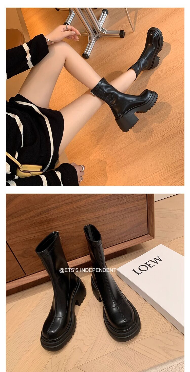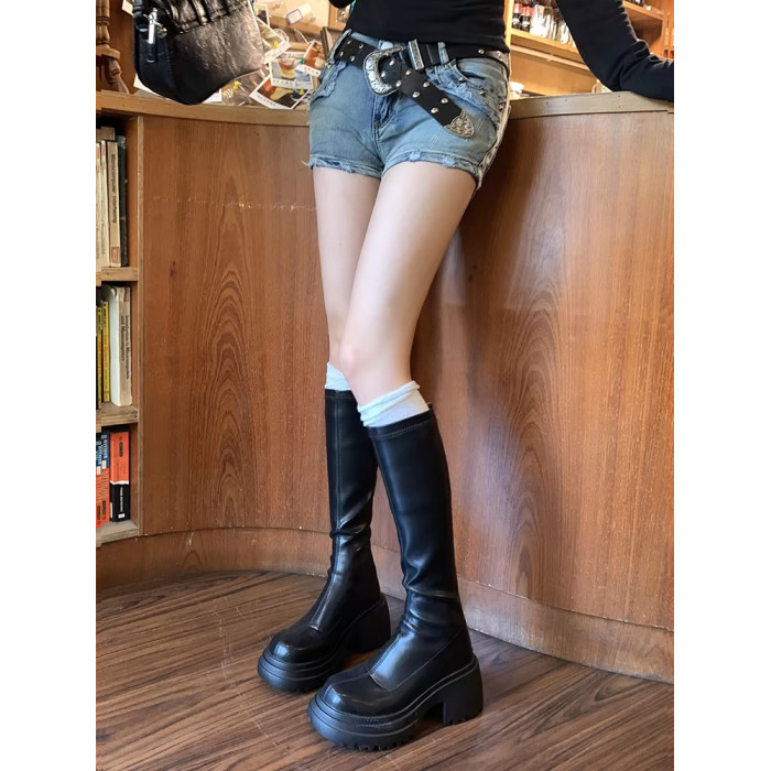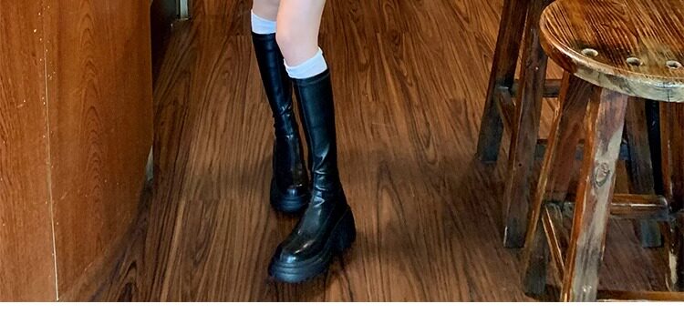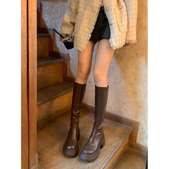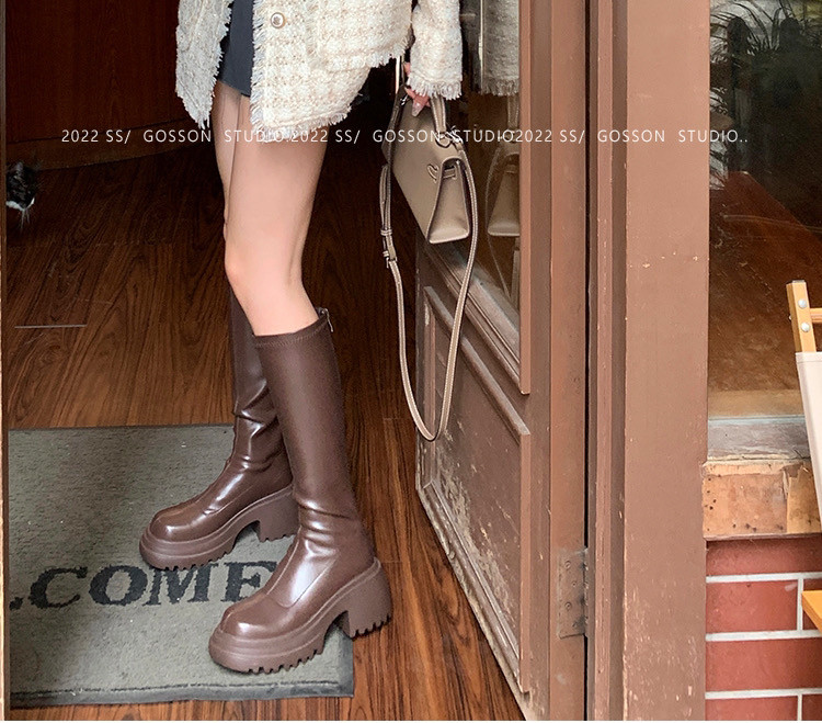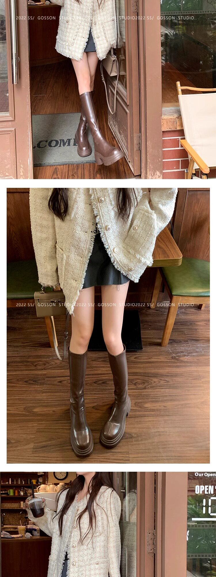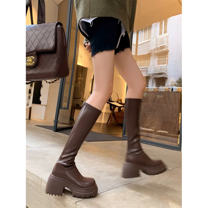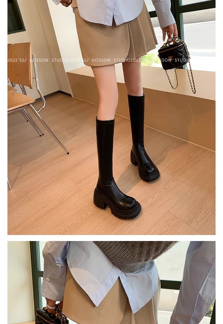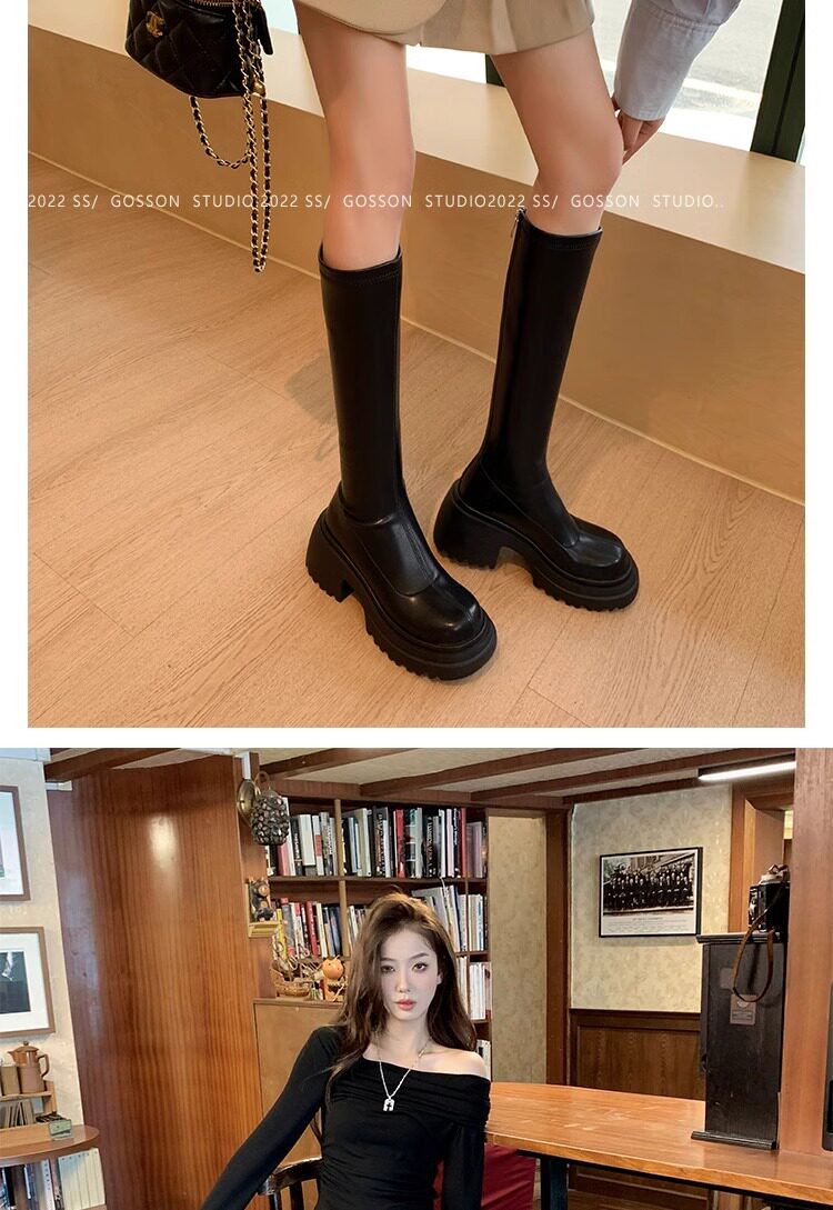 百搭彈力瘦瘦靴2024秋冬厚底增高新款小個子長筒靴女不過膝騎士靴