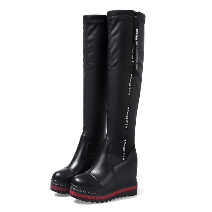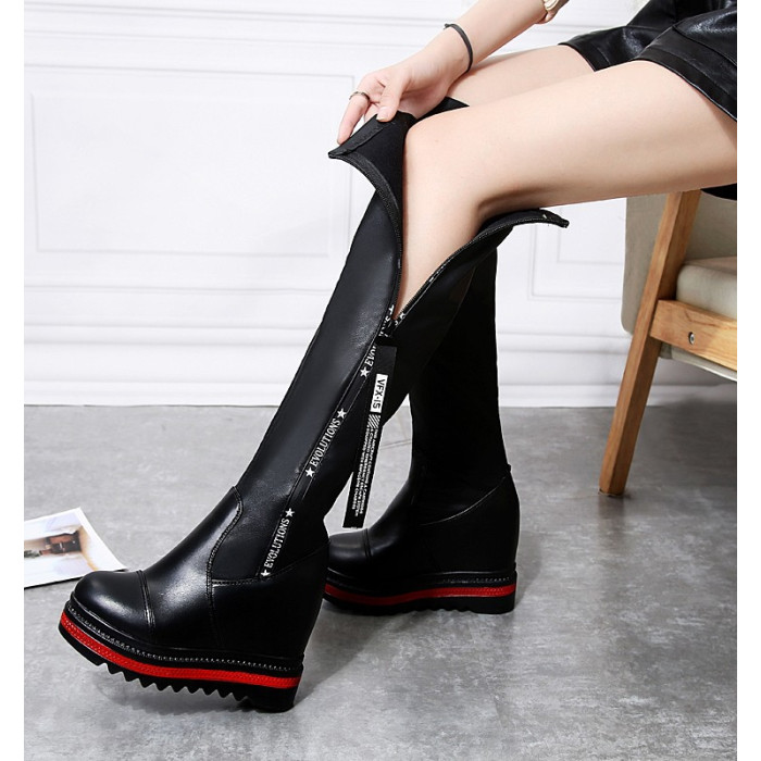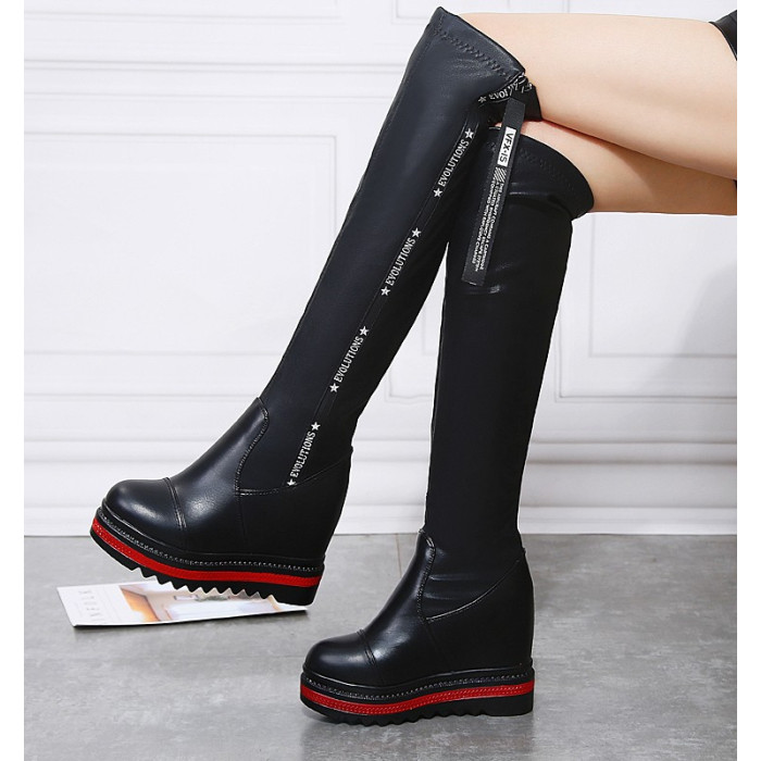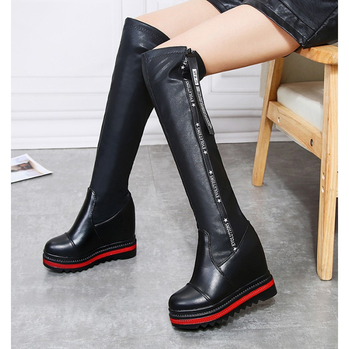 不過膝側拉鍊騎士靴長靴坡跟高跟厚底小個子增高長筒靴顯瘦高靴女