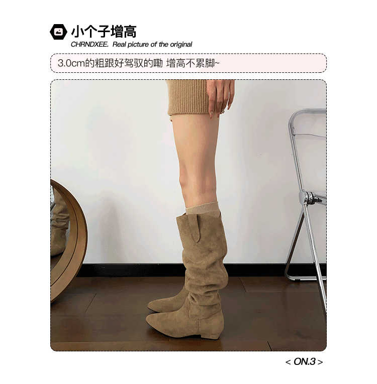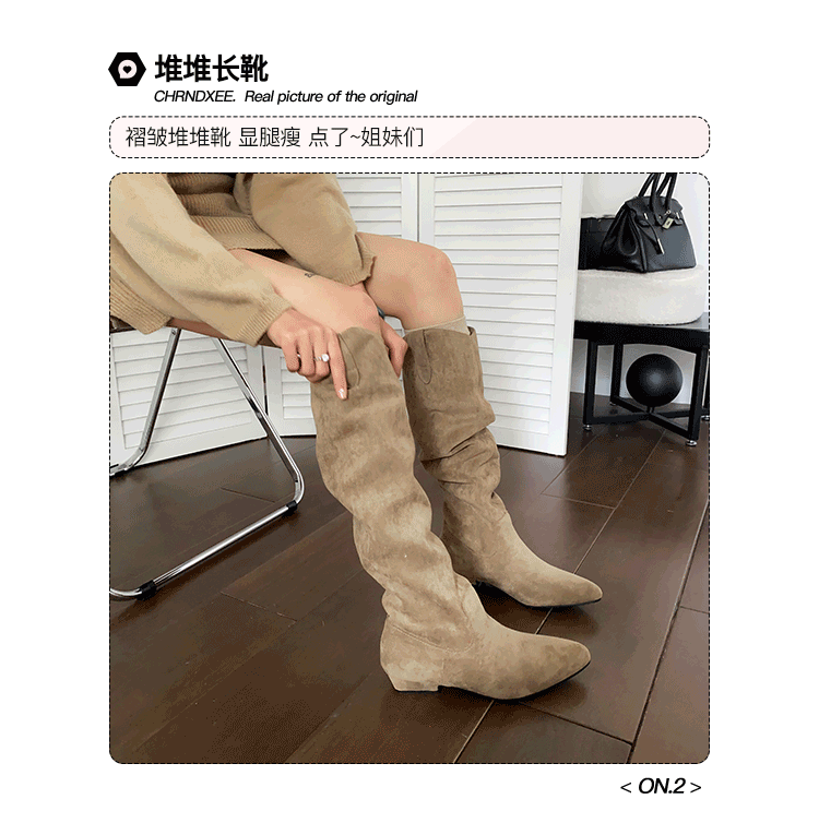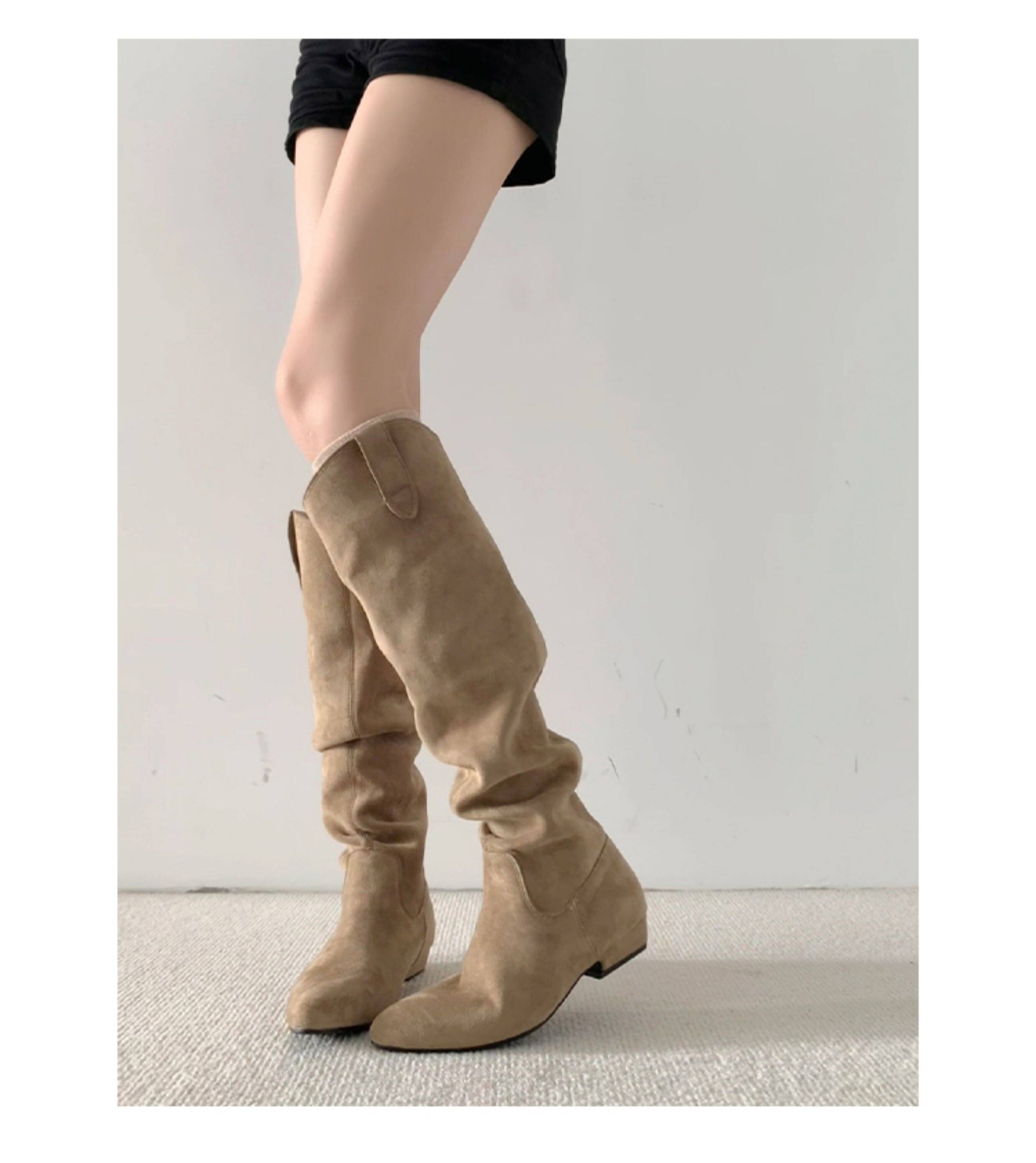 牛皮版~復古磨砂高筒西部靴女胖mm大筒圍顯瘦長靴粗跟長筒堆堆靴