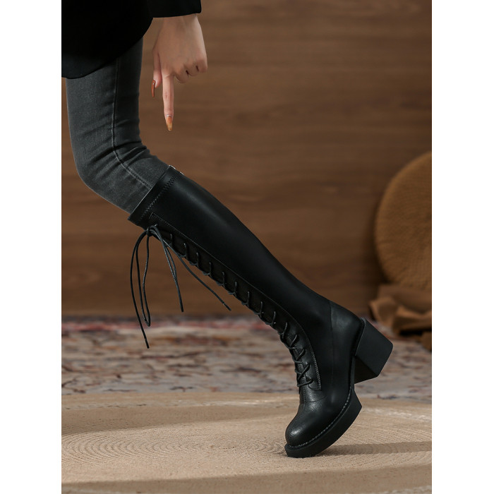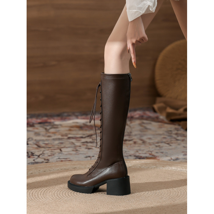 靴子女長筒靴2025新款春秋復古長靴女高跟粗跟騎士靴女厚底高筒靴