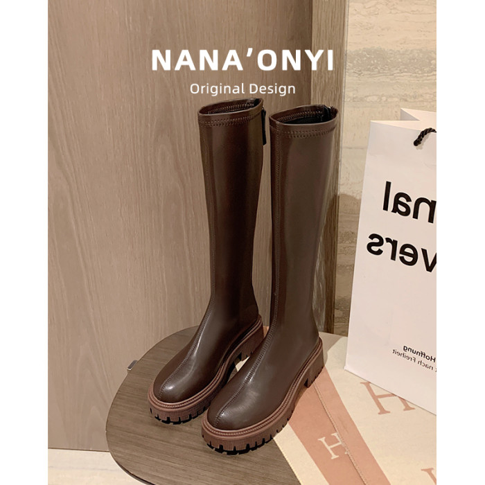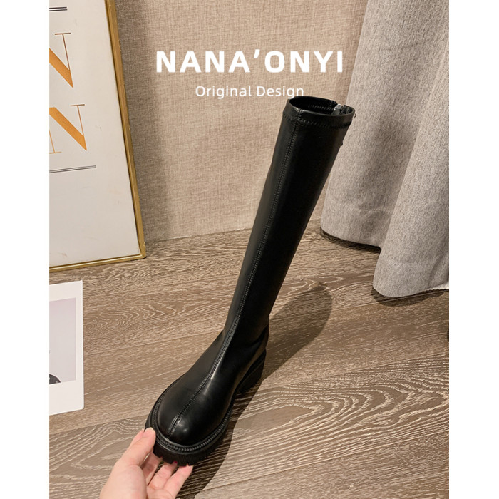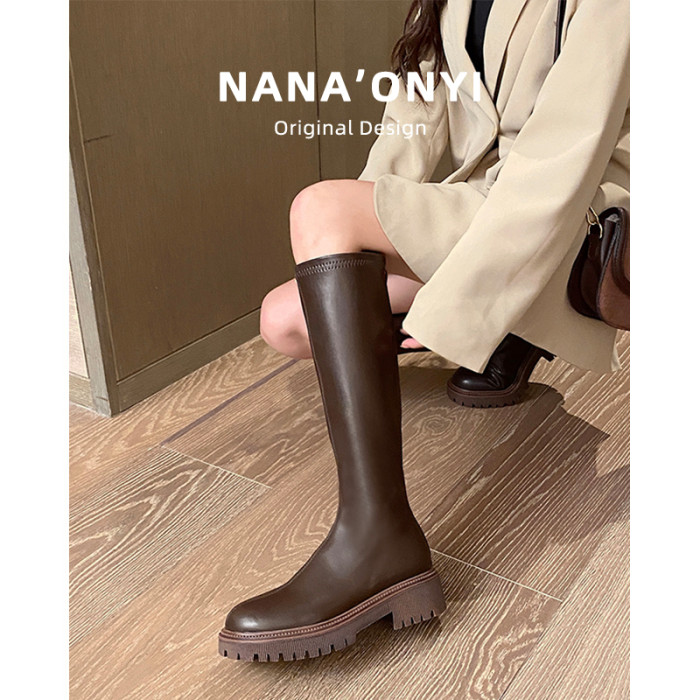 長靴女2025秋冬新款英倫風不過膝高筒騎士靴小個子厚底增高長筒靴