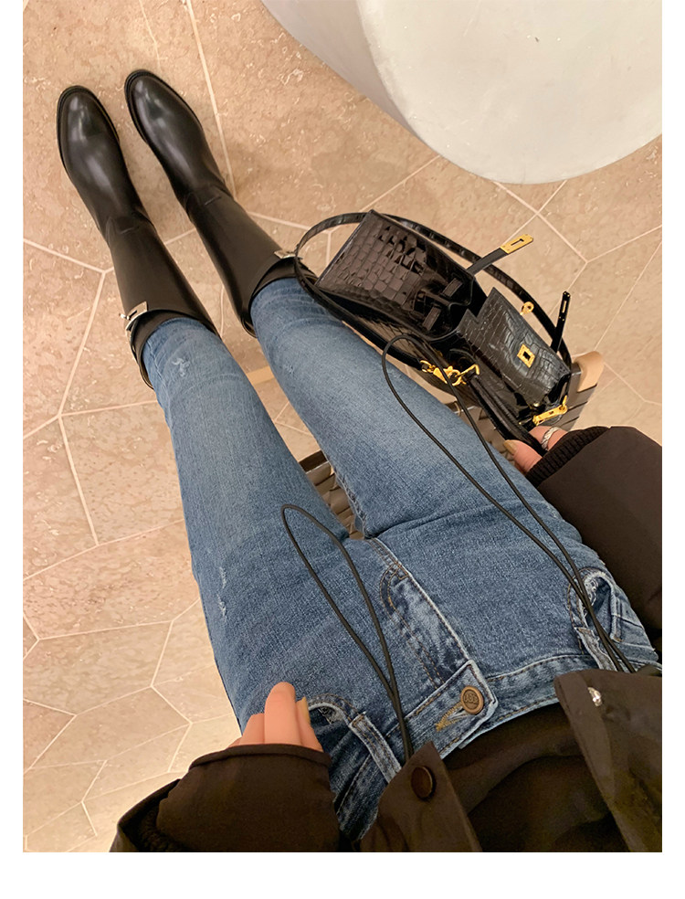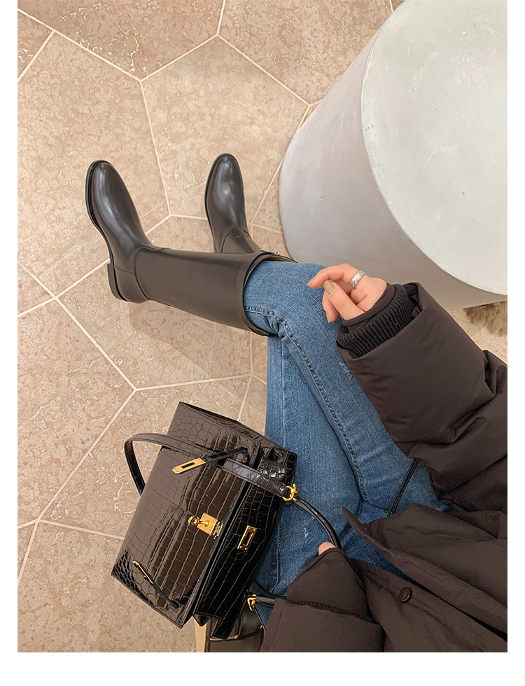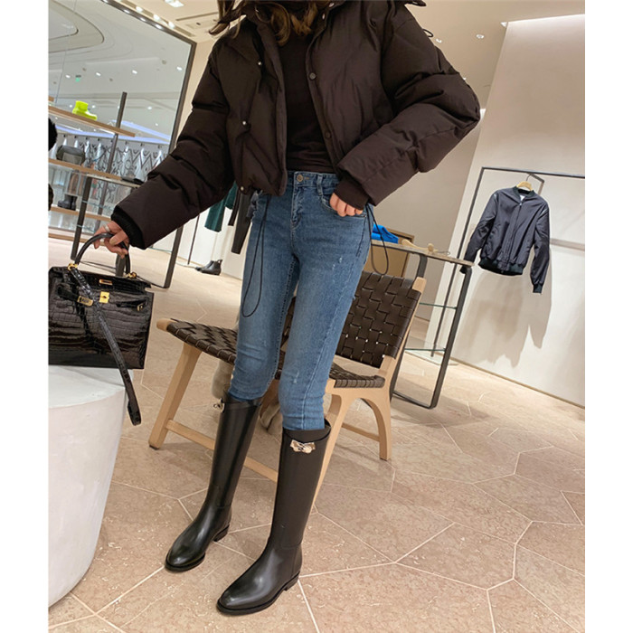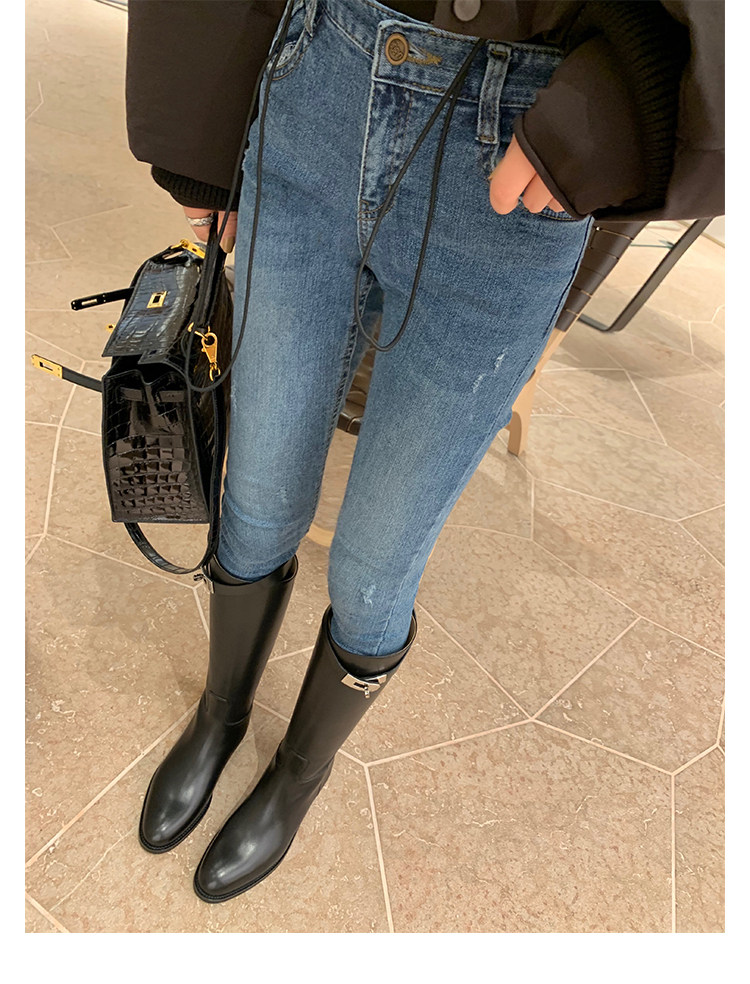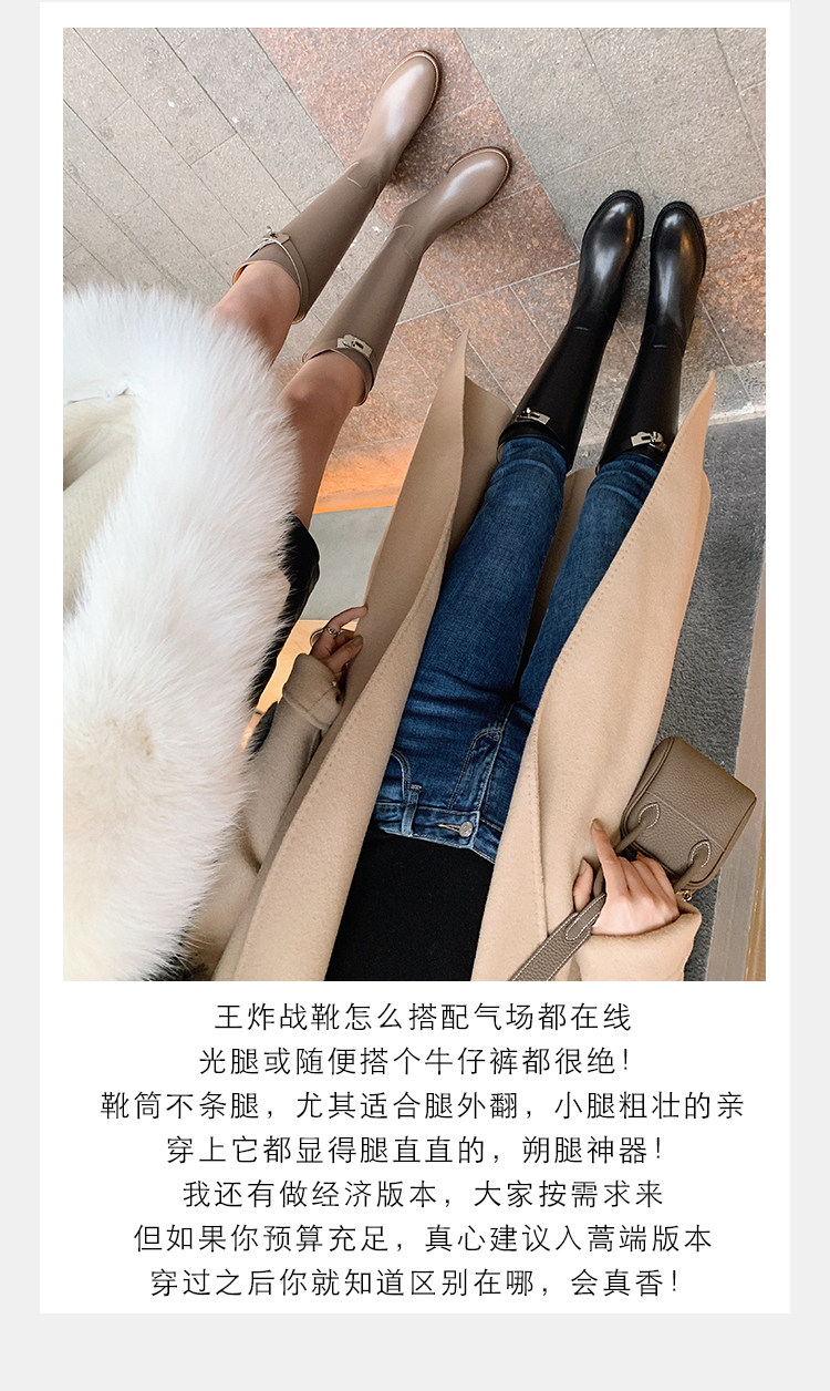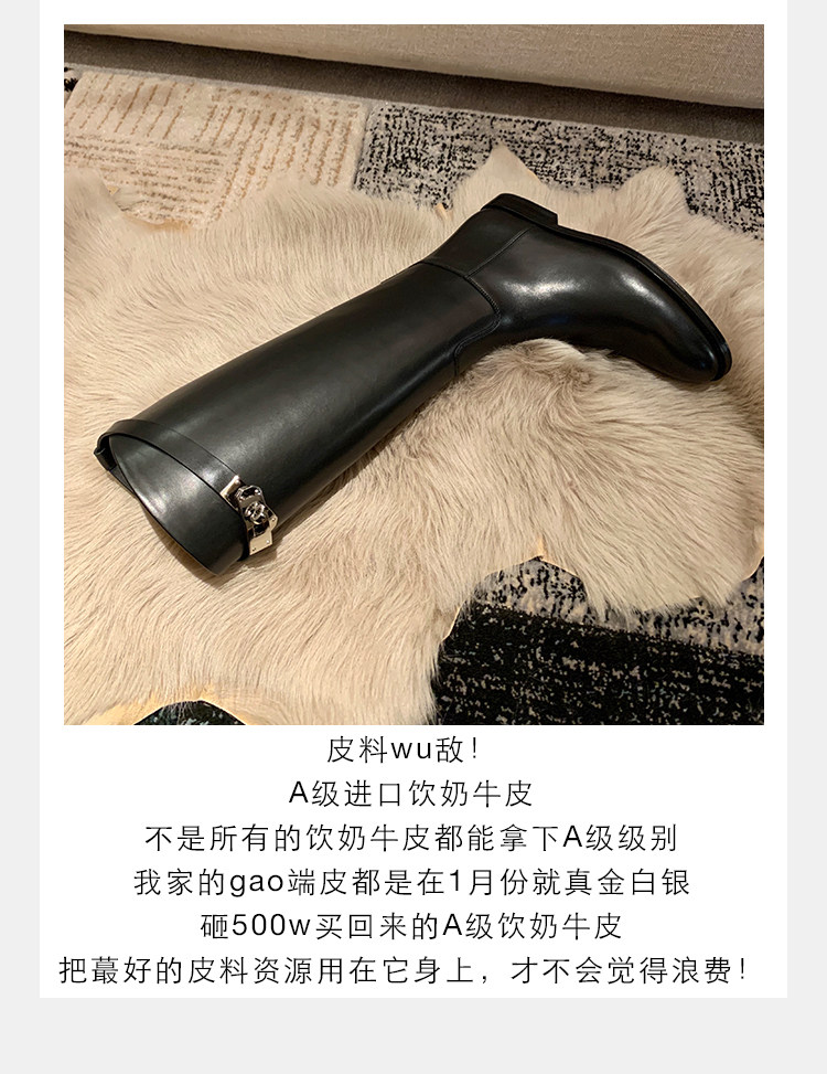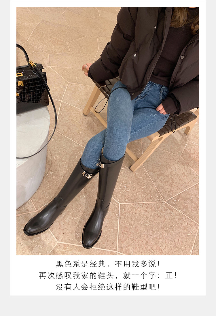 長靴女不過膝子2025秋季新款真皮長筒靴女英倫風皮釦高筒騎士靴女