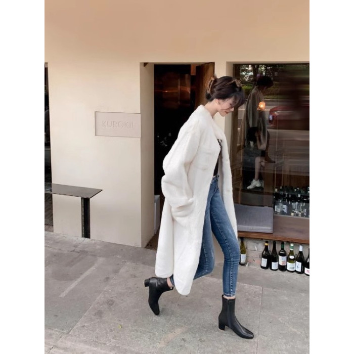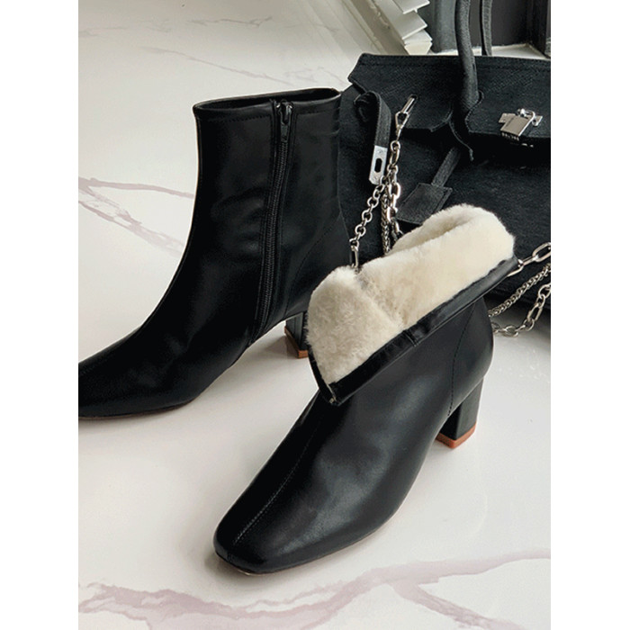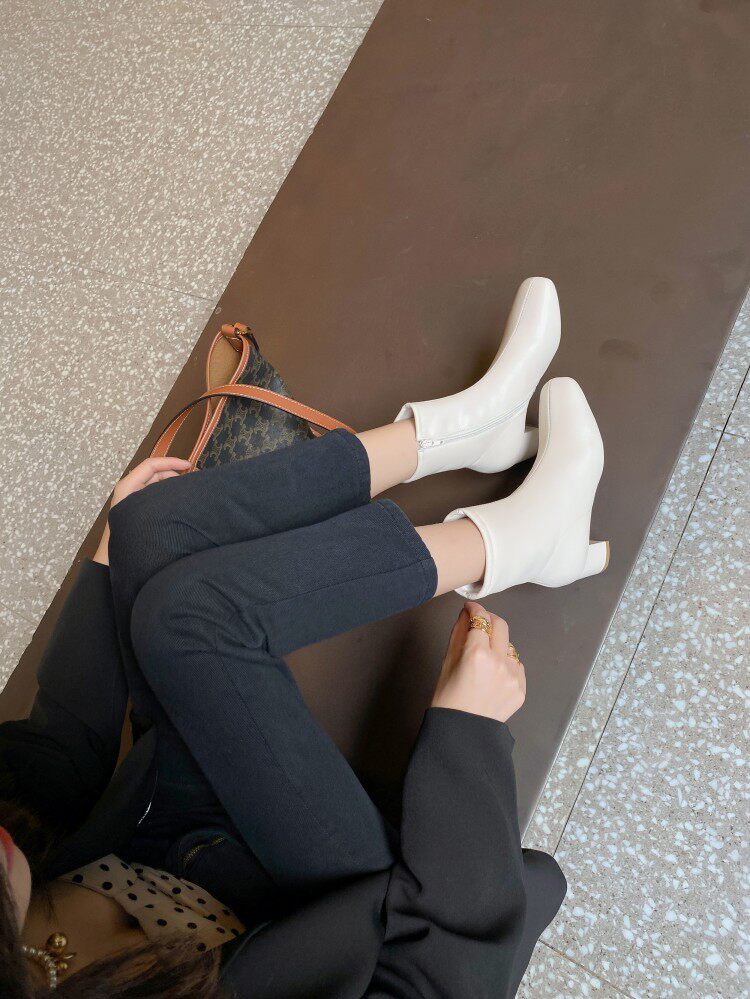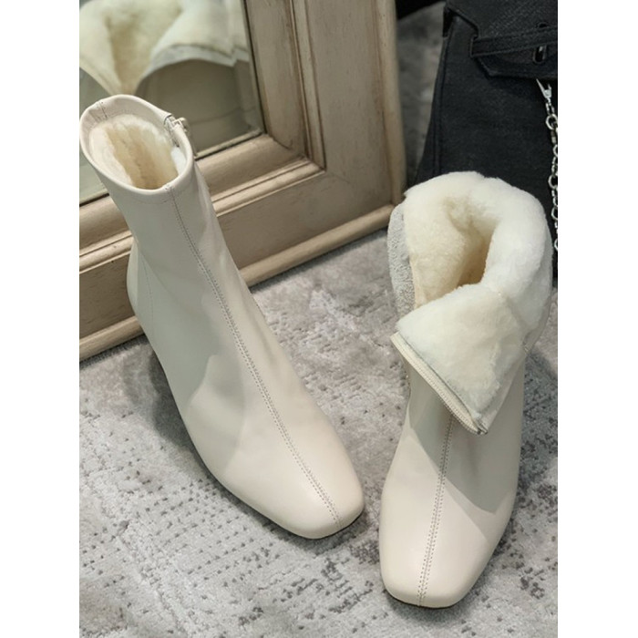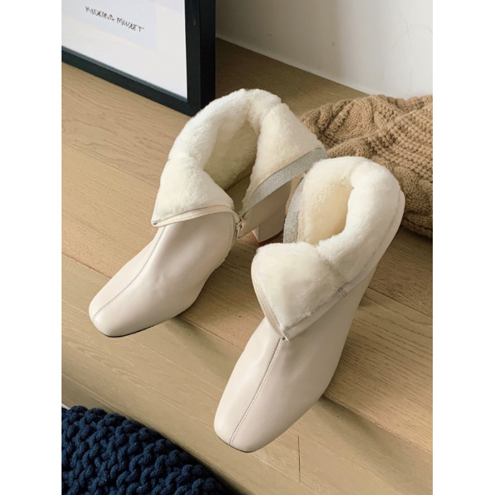 2025冬季加絨短靴女粗跟高跟瘦瘦靴子方頭加厚棉鞋顯瘦雪地靴白色