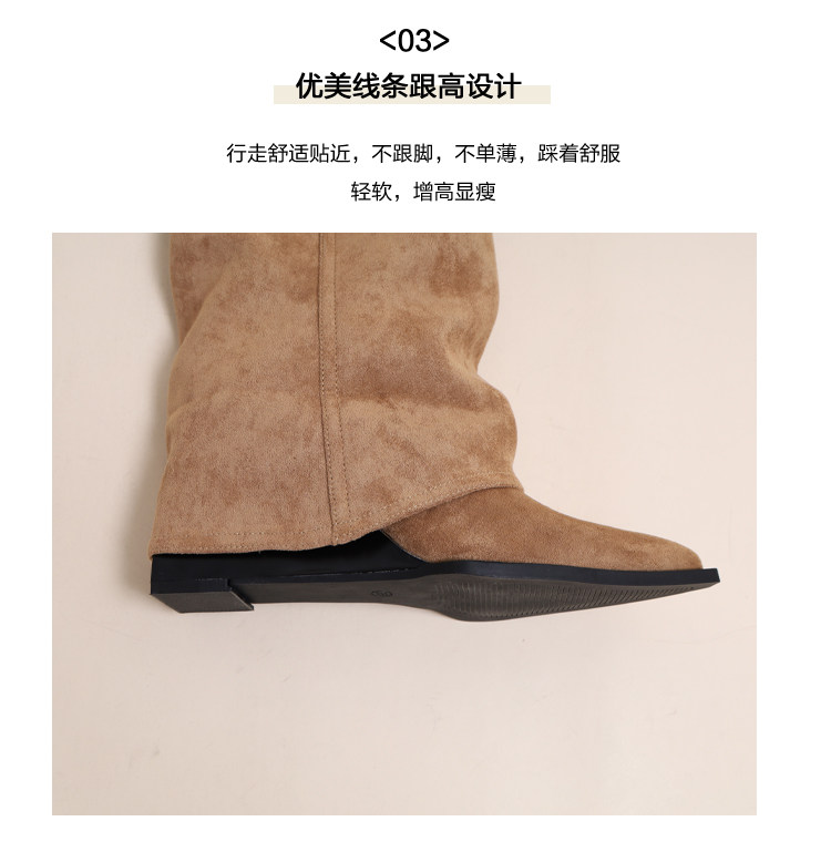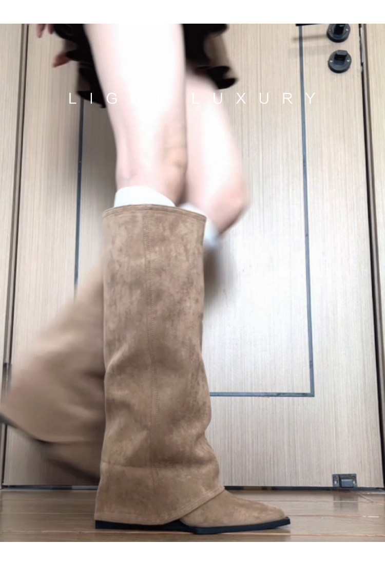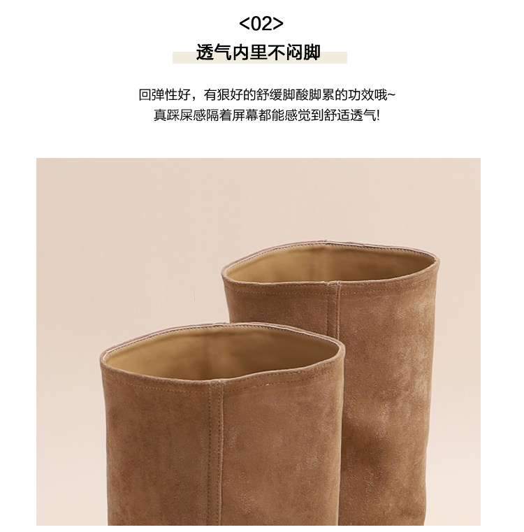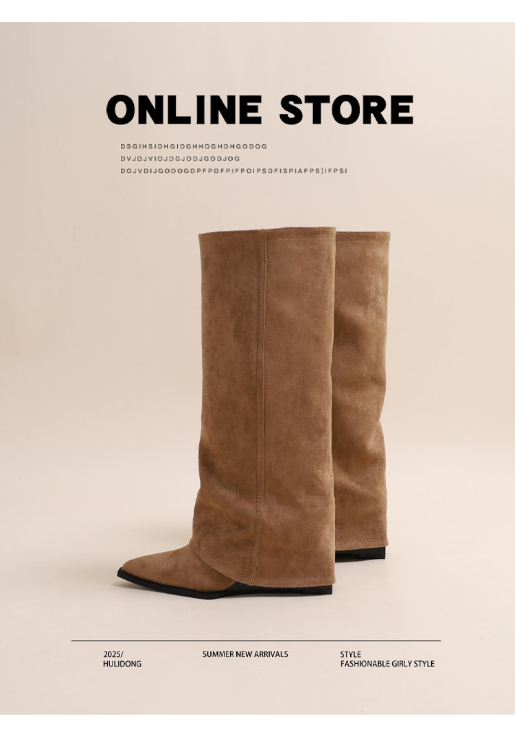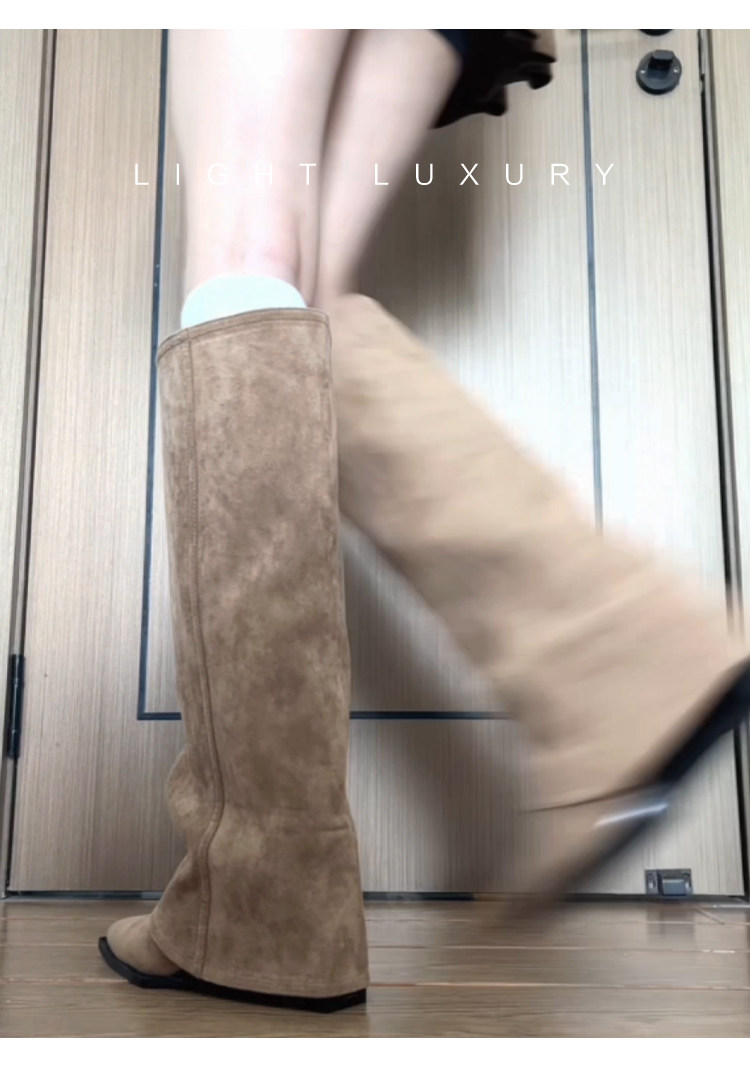 牛皮版~褲琯靴2026新款爆款增高9cm小個子坡跟不過膝卡其色靴子