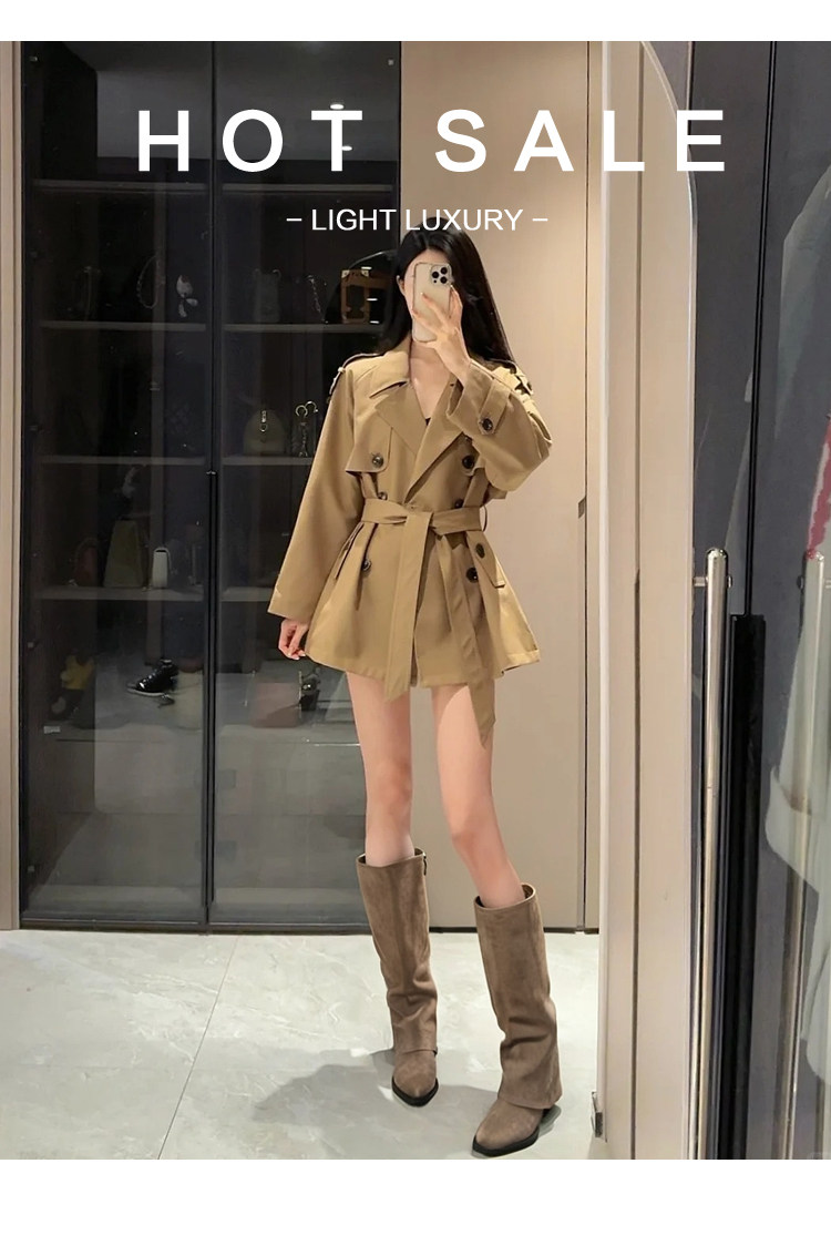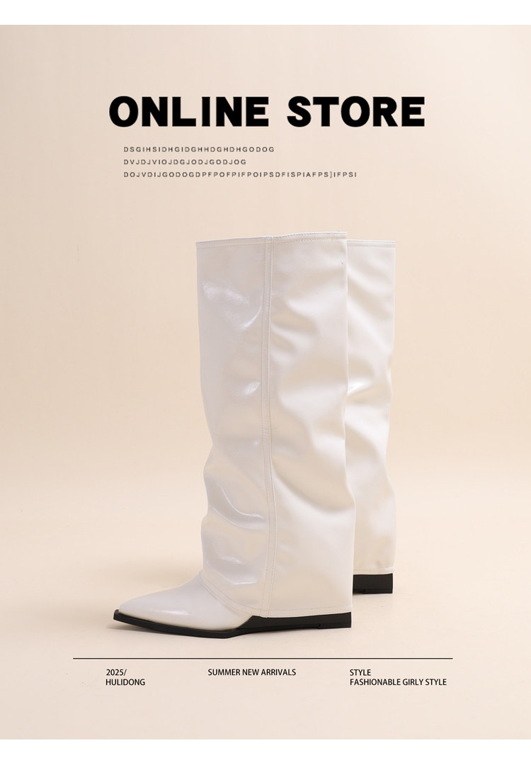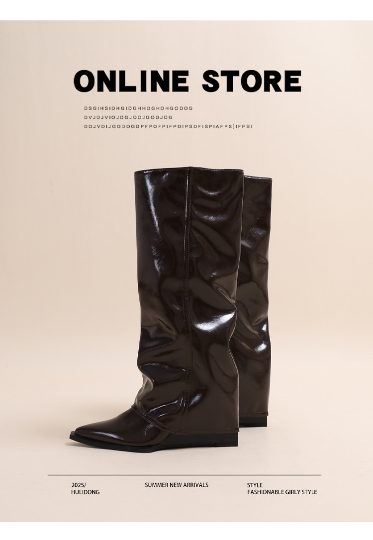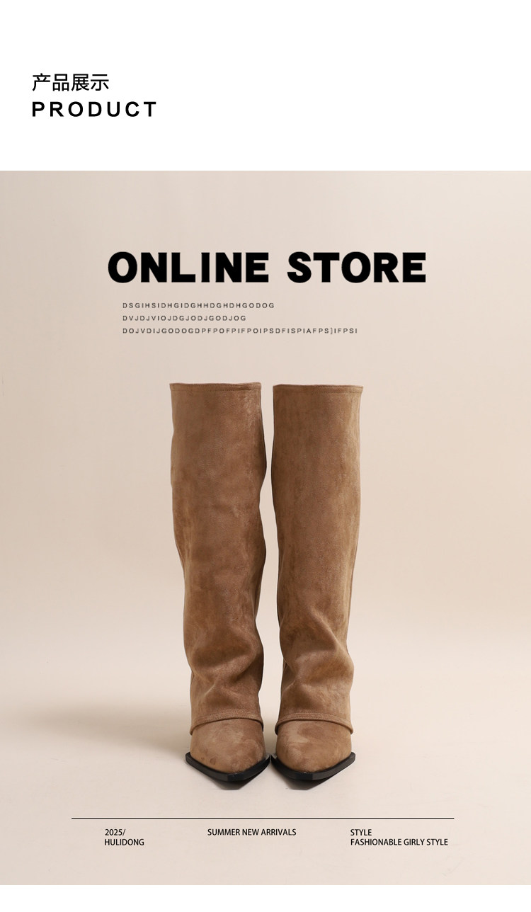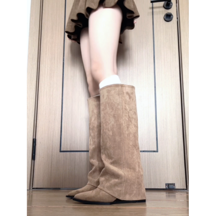 牛皮版~褲琯靴2026新款爆款增高9cm小個子坡跟不過膝卡其色靴子
