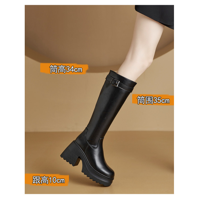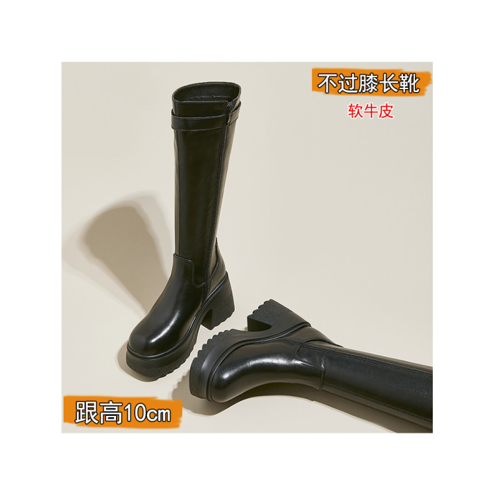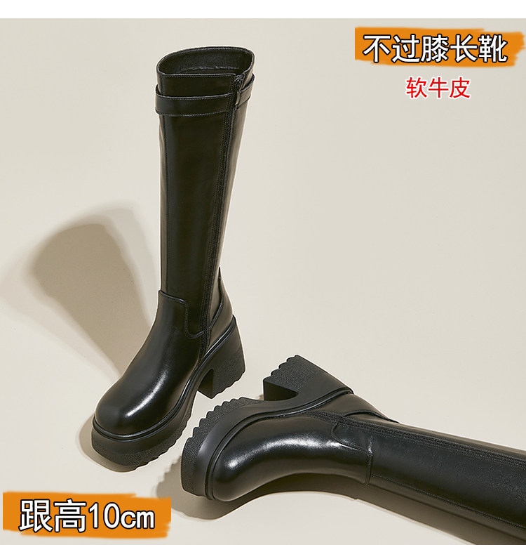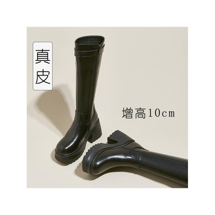 小個子真皮不過膝長靴女超高跟黑色顯瘦靴子增高騎士長筒靴秋冬季