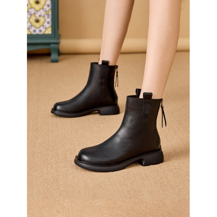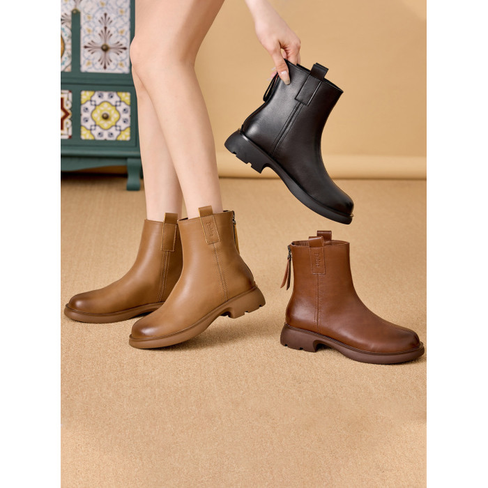 真皮馬丁靴女2025新款平跟春秋單靴休閒棕色女士大碼軟底菸筒短靴