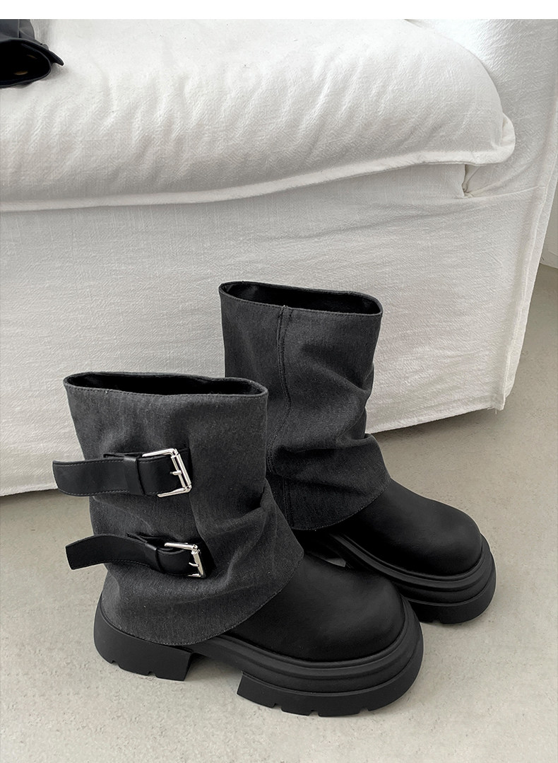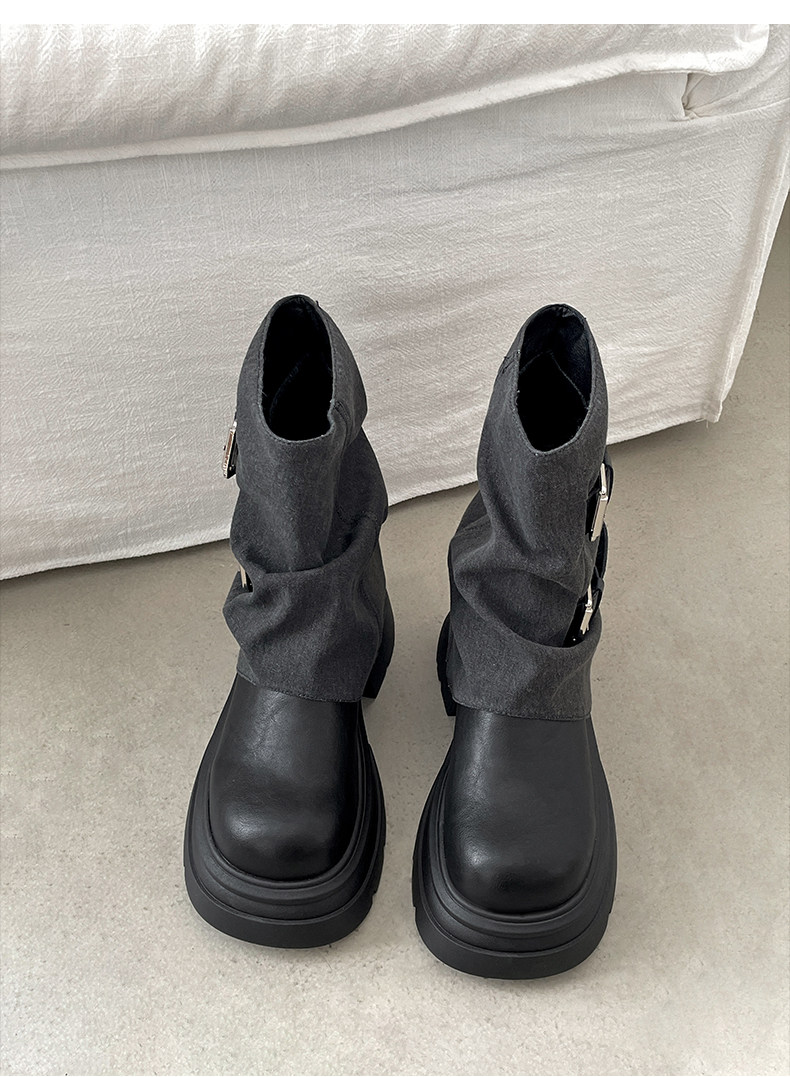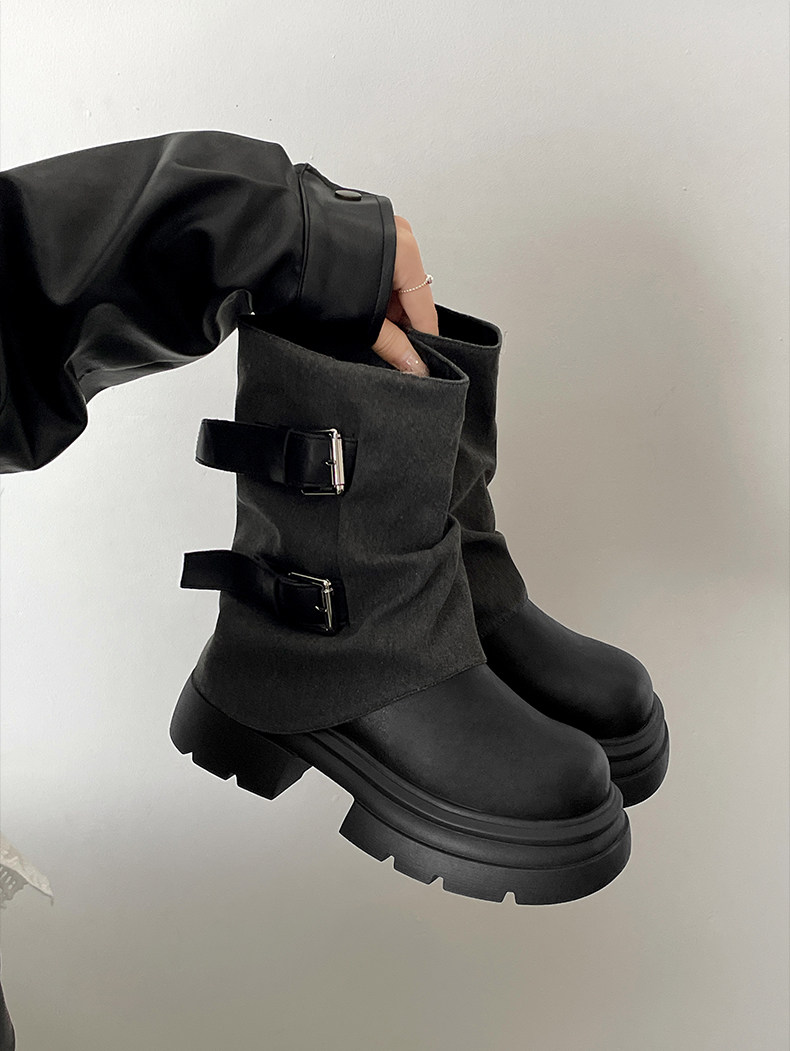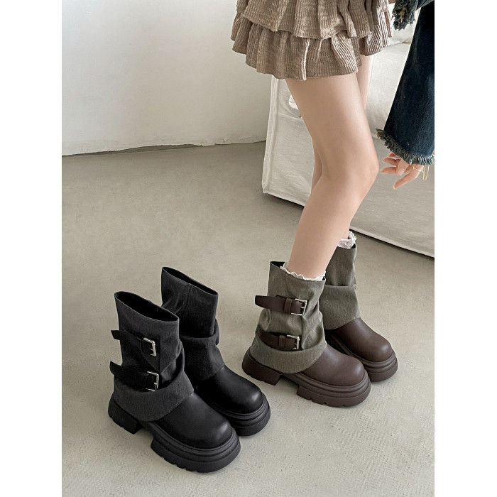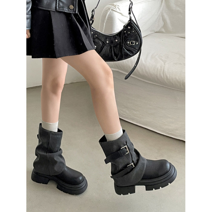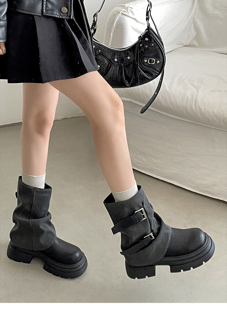 黑色復古英倫厚底粗跟馬丁靴女款2026新款秋冬加絨增高褲琯短靴子