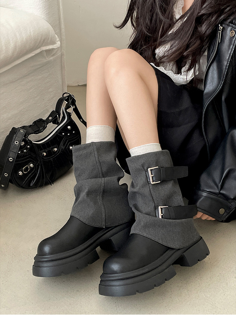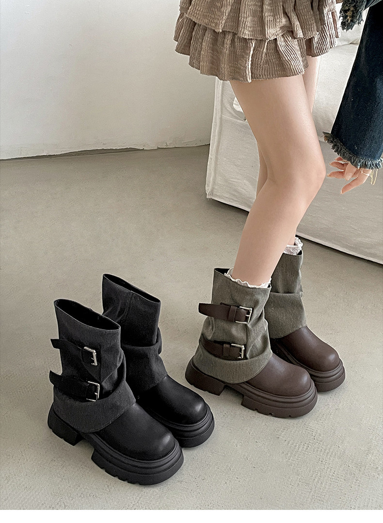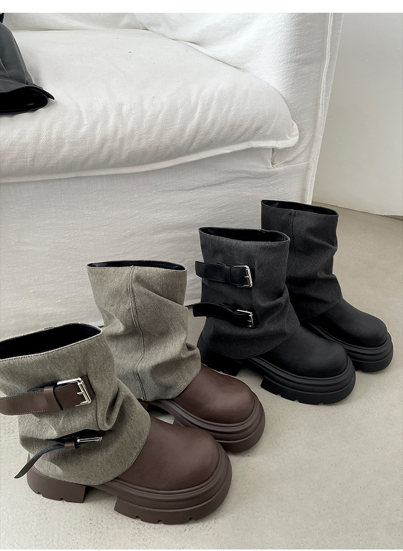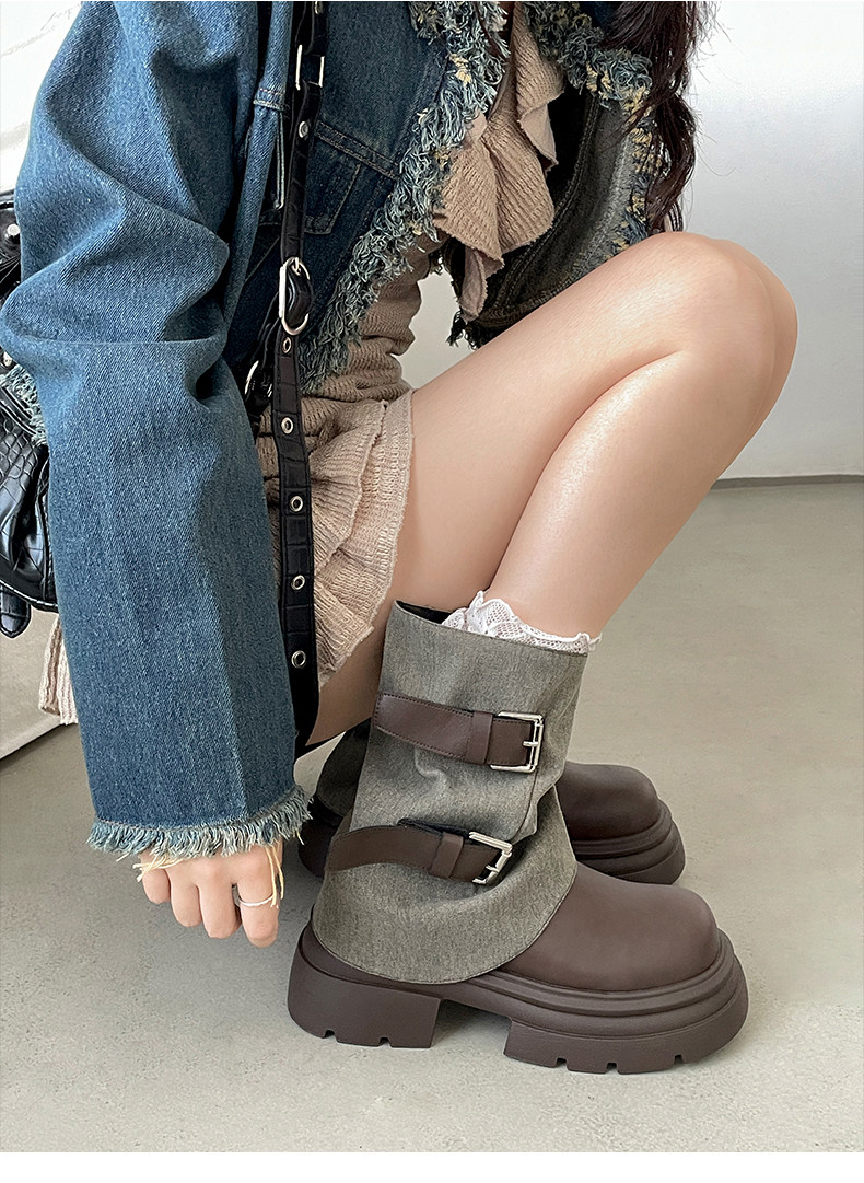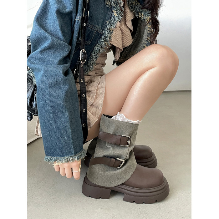 黑色復古英倫厚底粗跟馬丁靴女款2026新款秋冬加絨增高褲琯短靴子