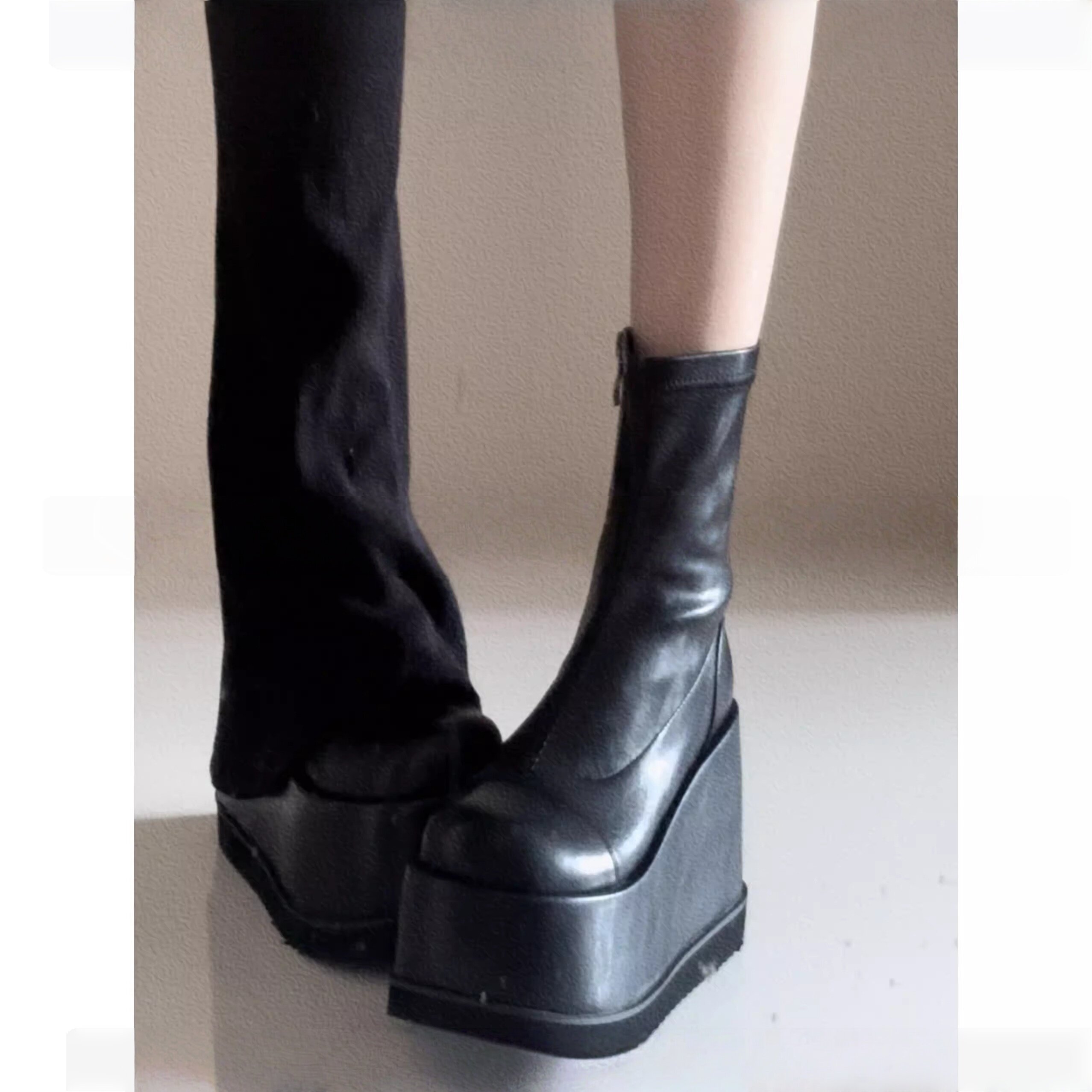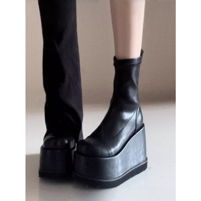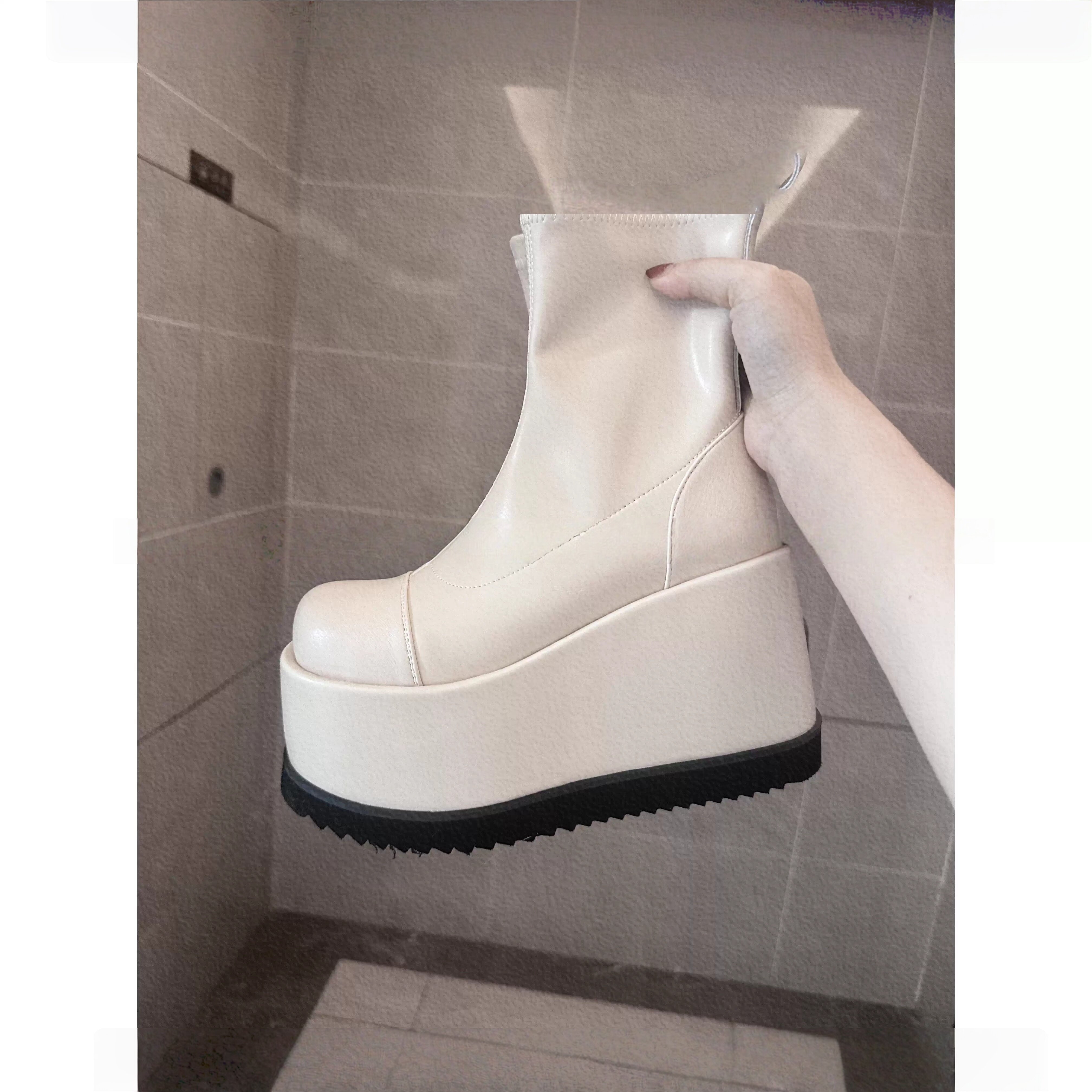 小衆辣妹圓頭瘦瘦靴2026新款小個子演唱會戰靴厚底增高無坡度短靴