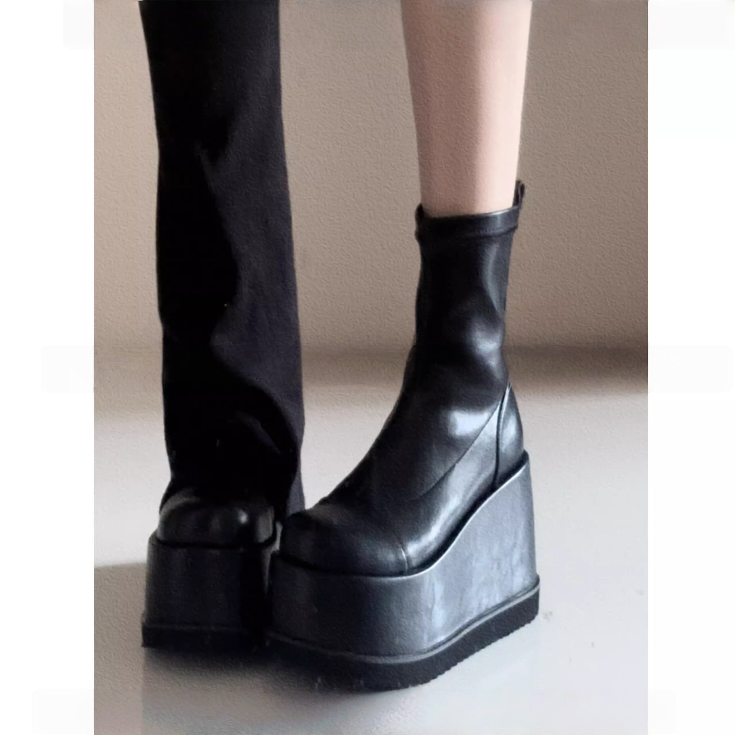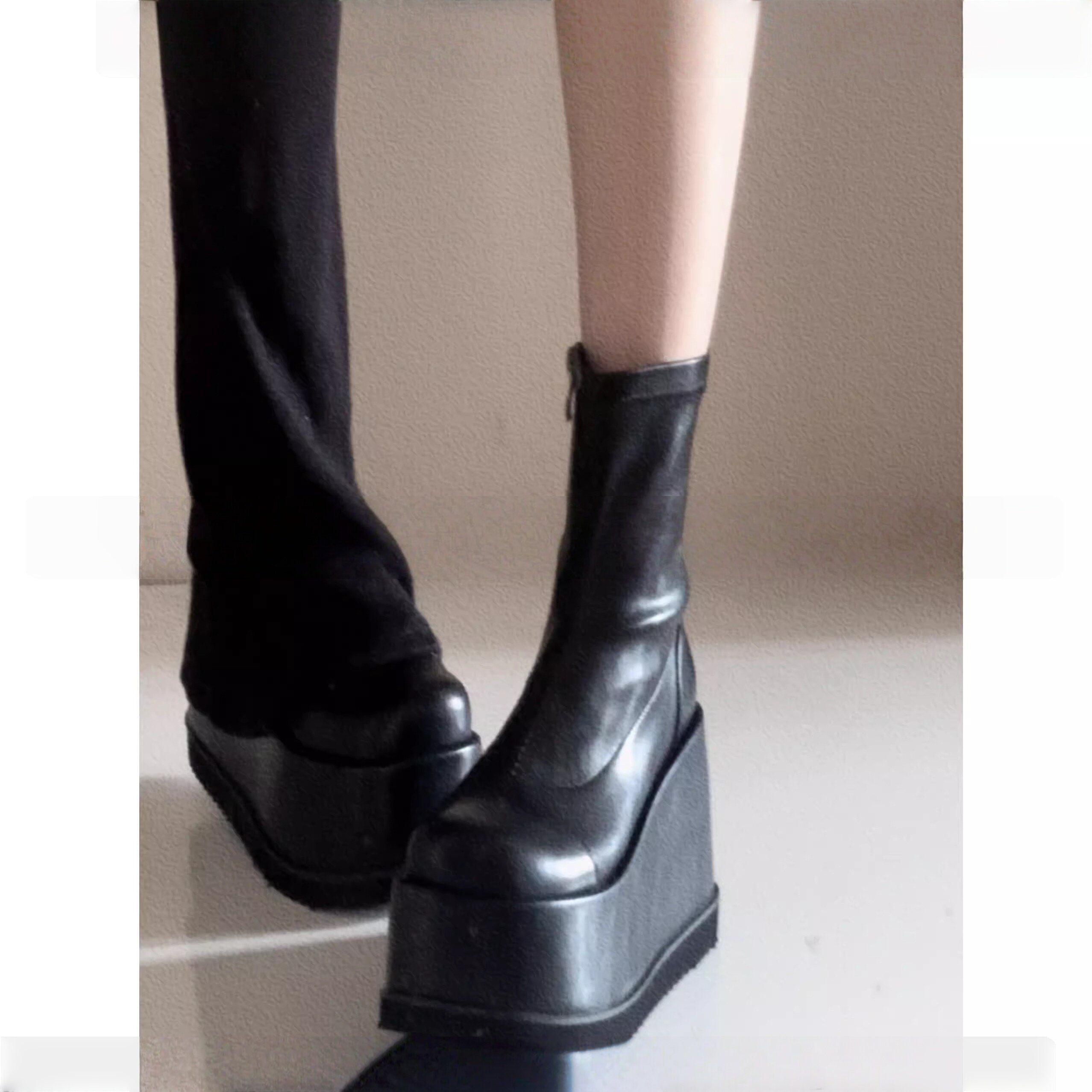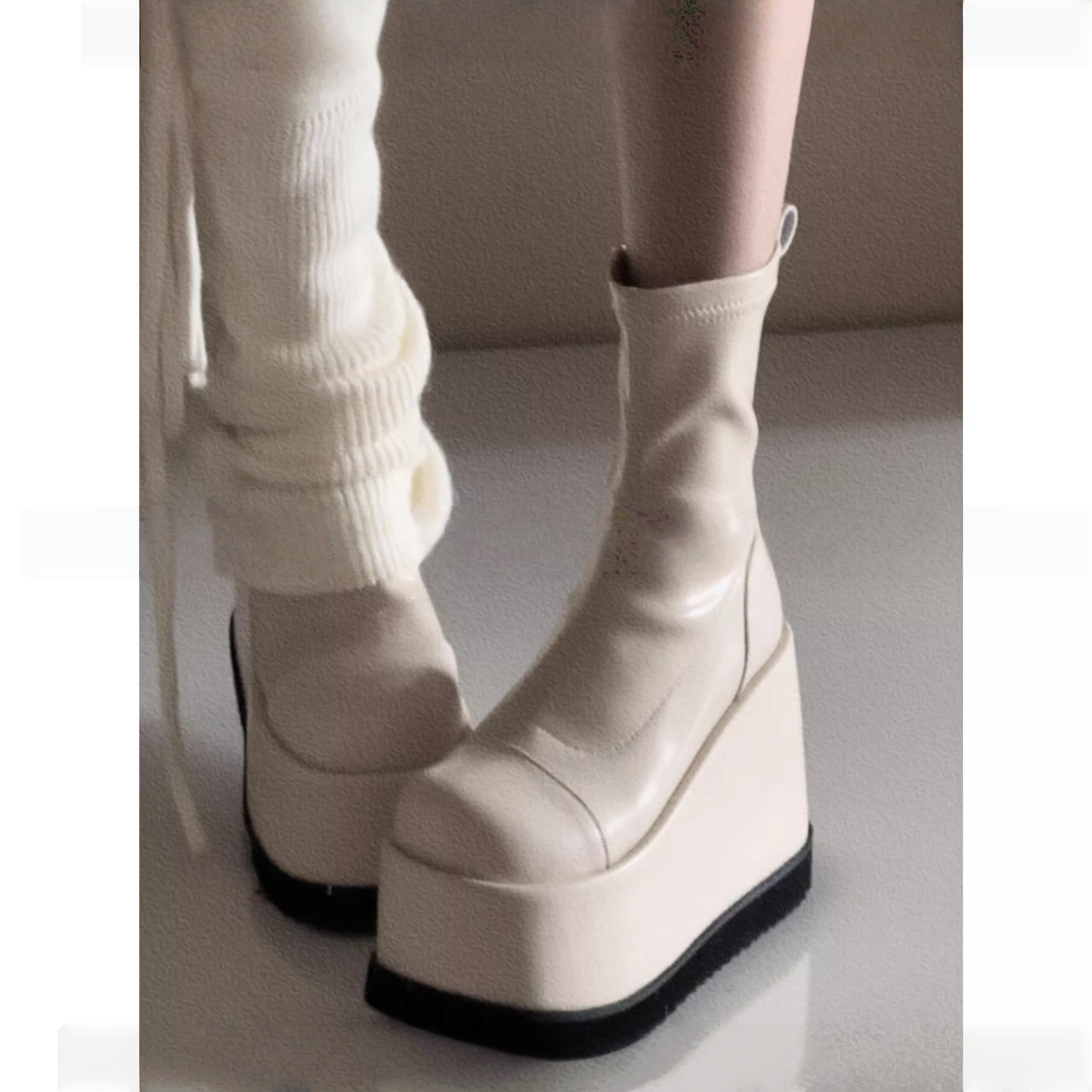 小衆辣妹圓頭瘦瘦靴2026新款小個子演唱會戰靴厚底增高無坡度短靴