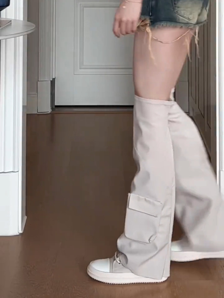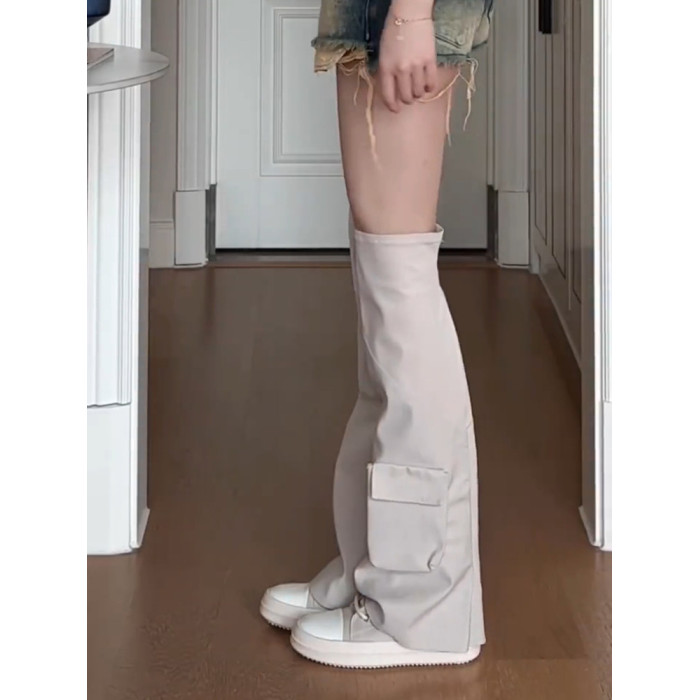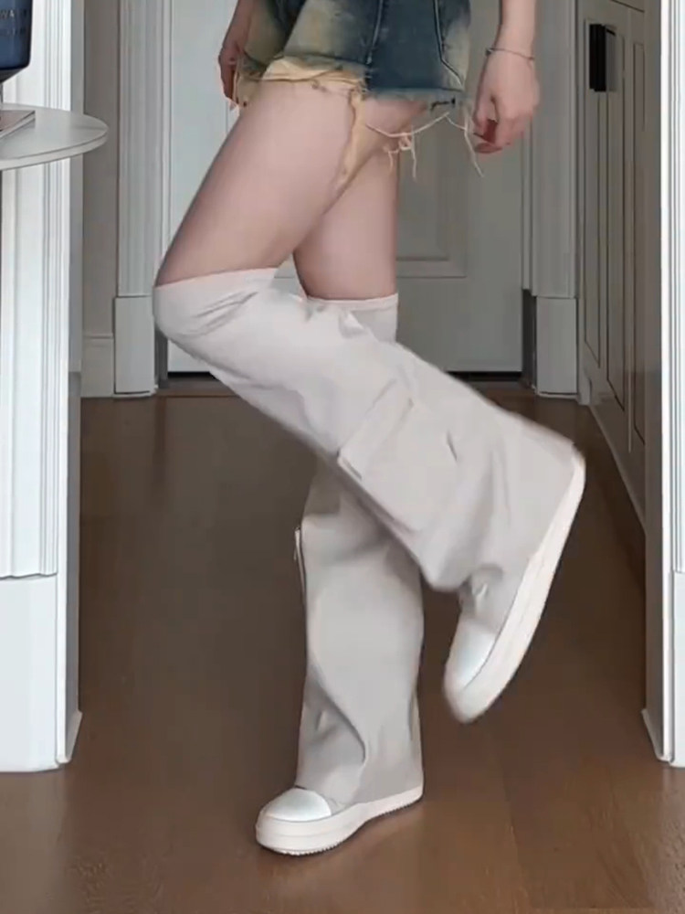 ro褲琯靴女過膝長靴厚底長筒靴可拆卸兩穿口袋帆布鞋2025新款長靴