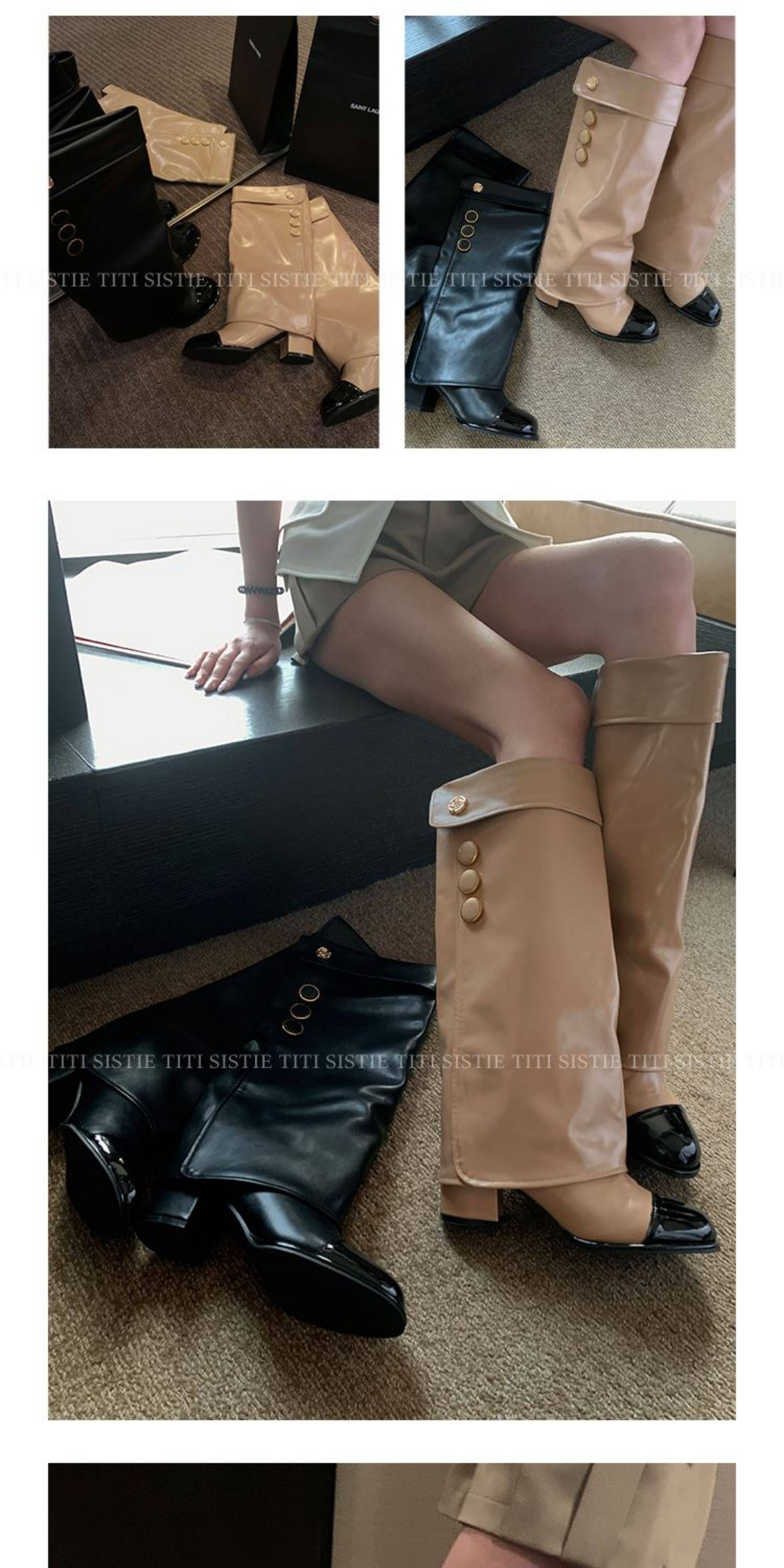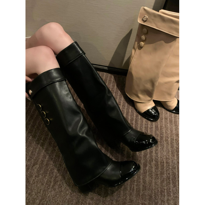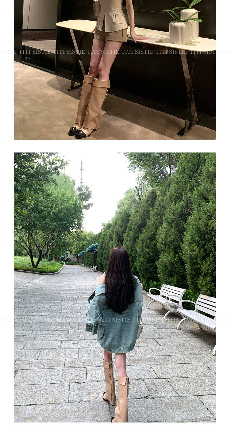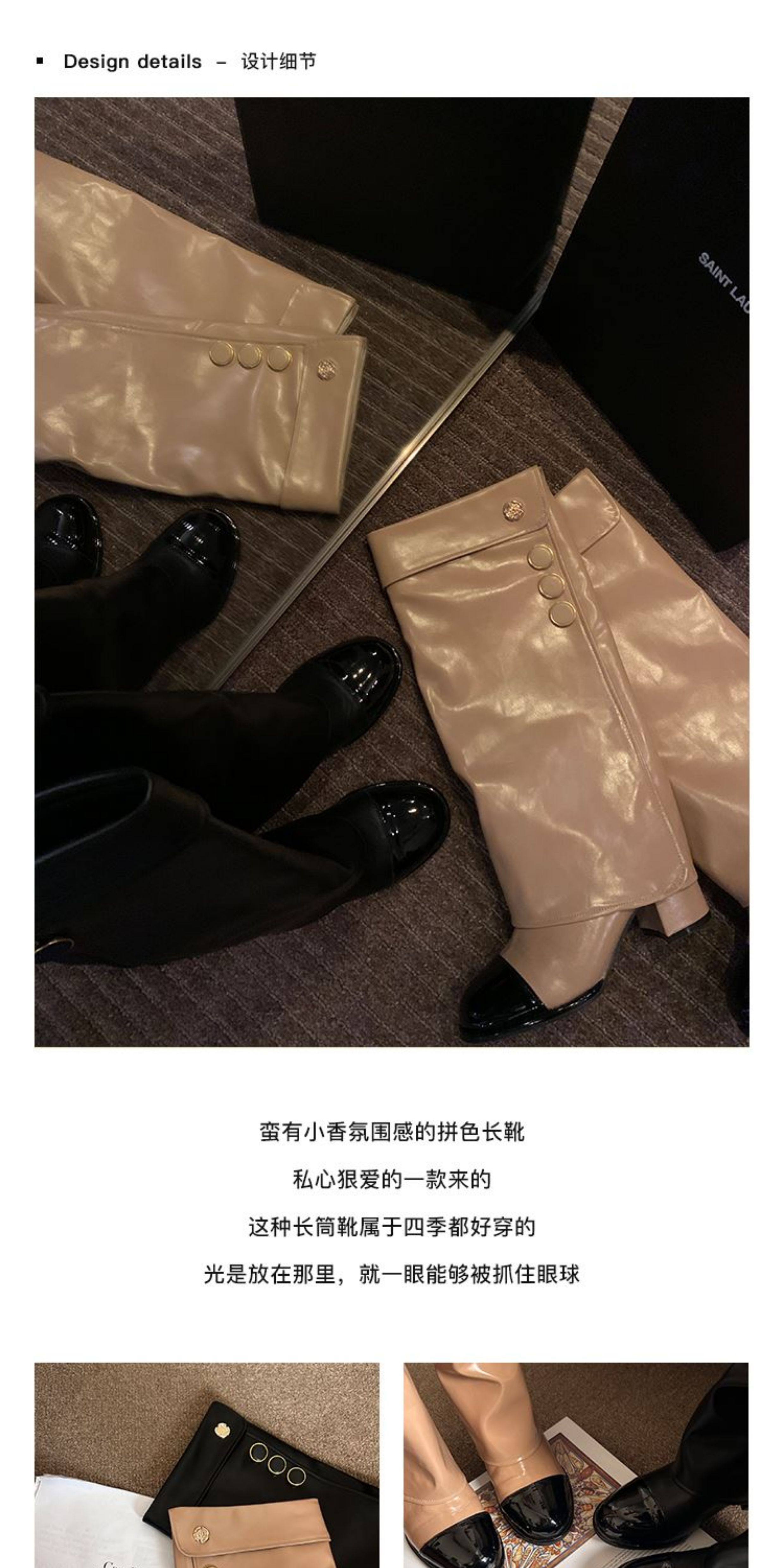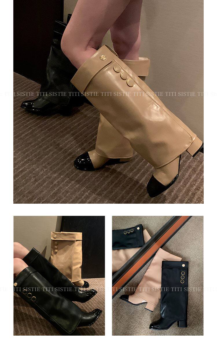 高定小姐姐【高貨!拼色騎士靴】褲琯靴圓頭粗跟不過膝騎士高筒靴