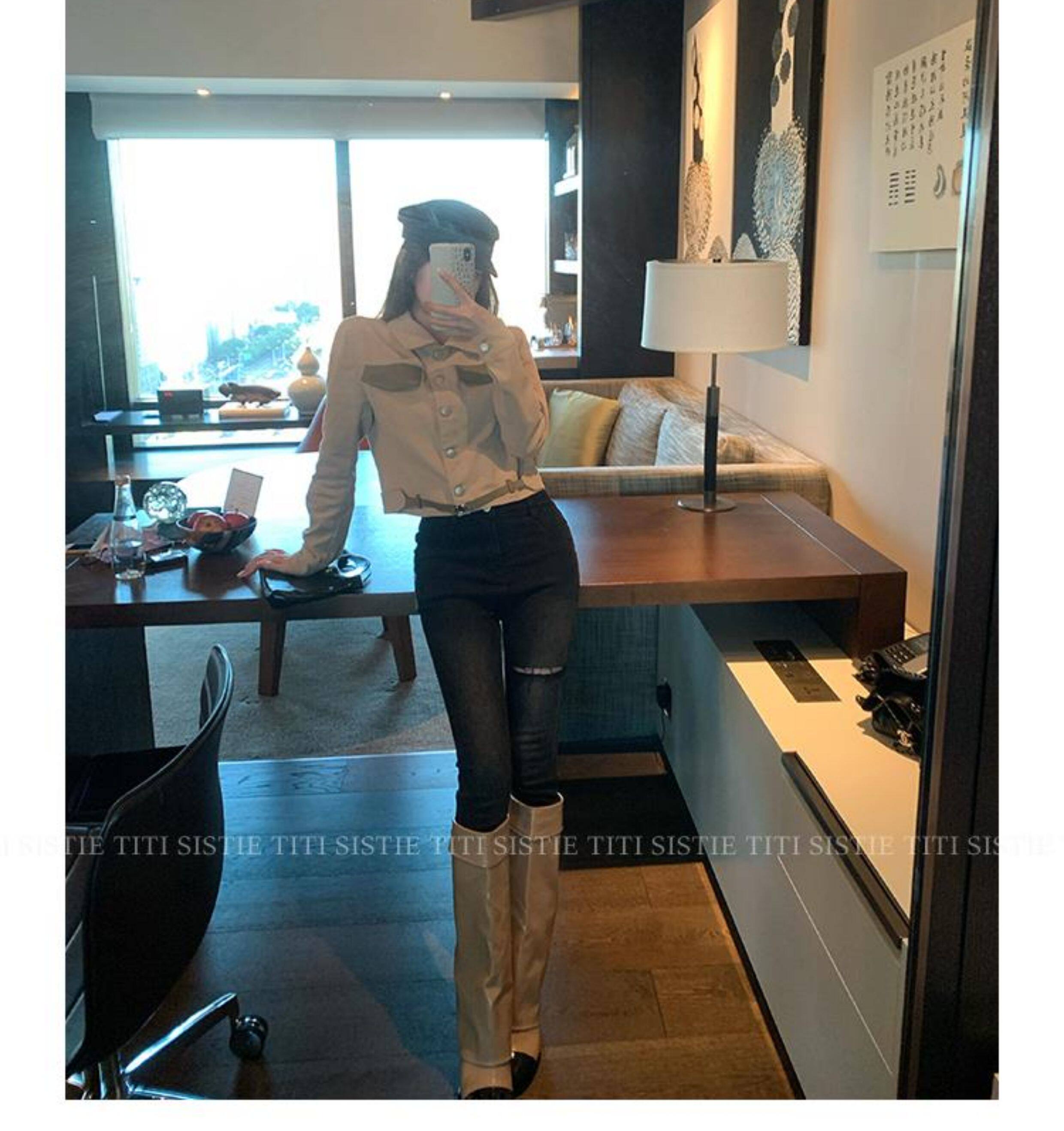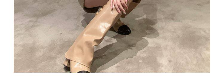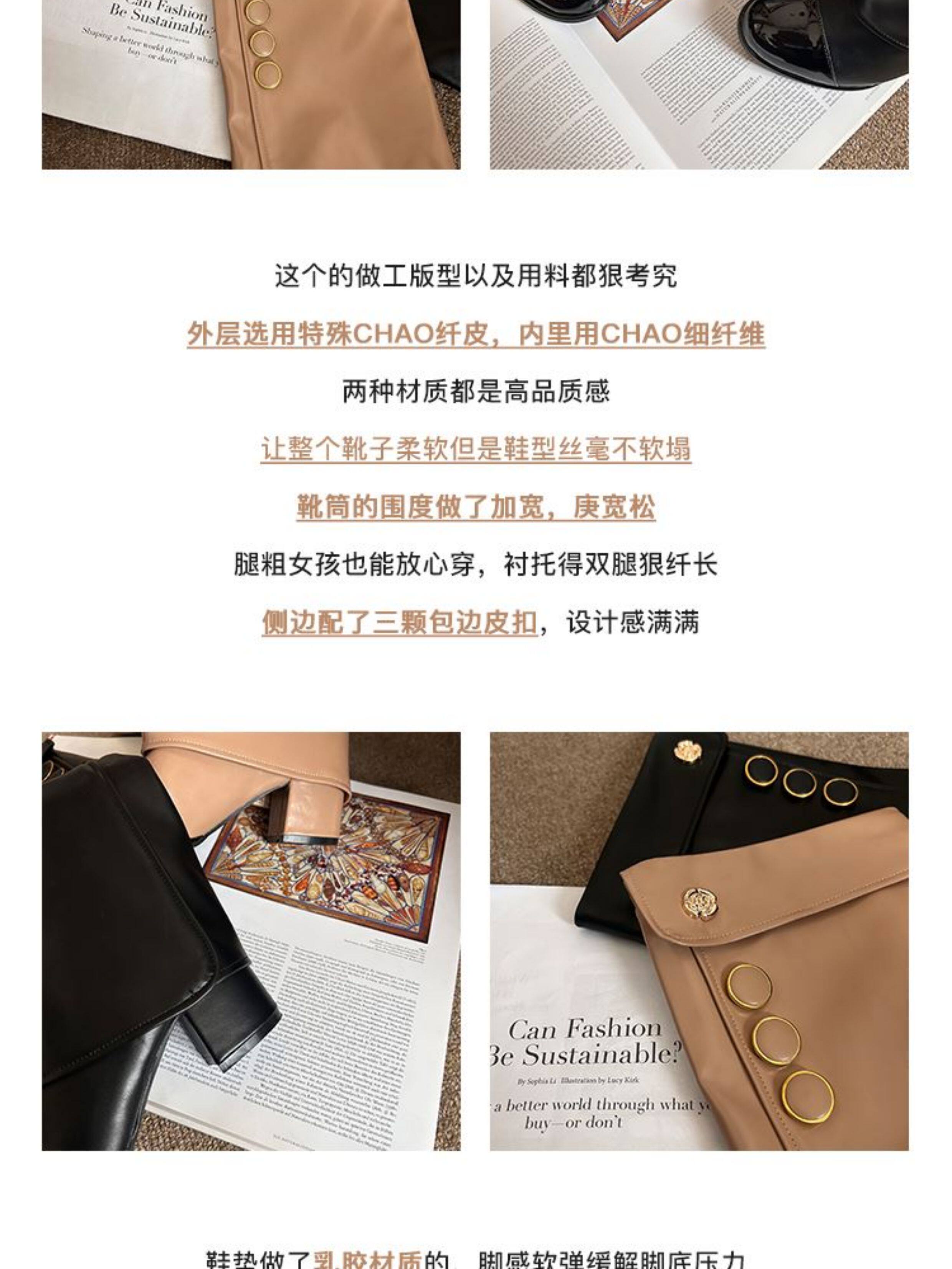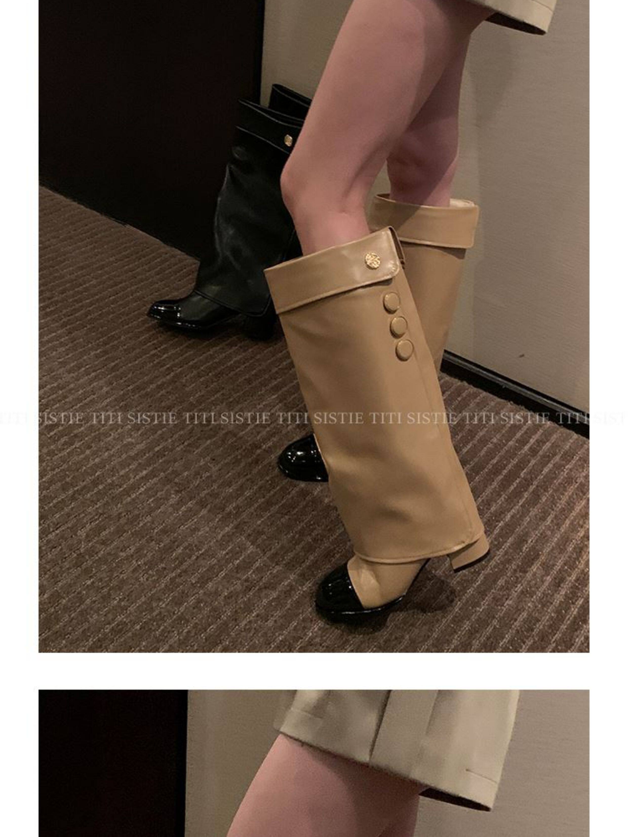 高定小姐姐【高貨!拼色騎士靴】褲琯靴圓頭粗跟不過膝騎士高筒靴