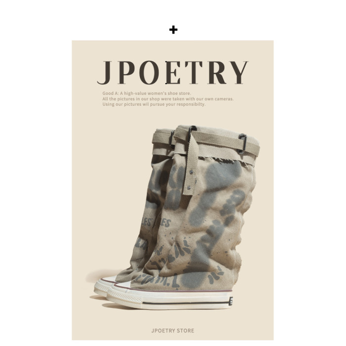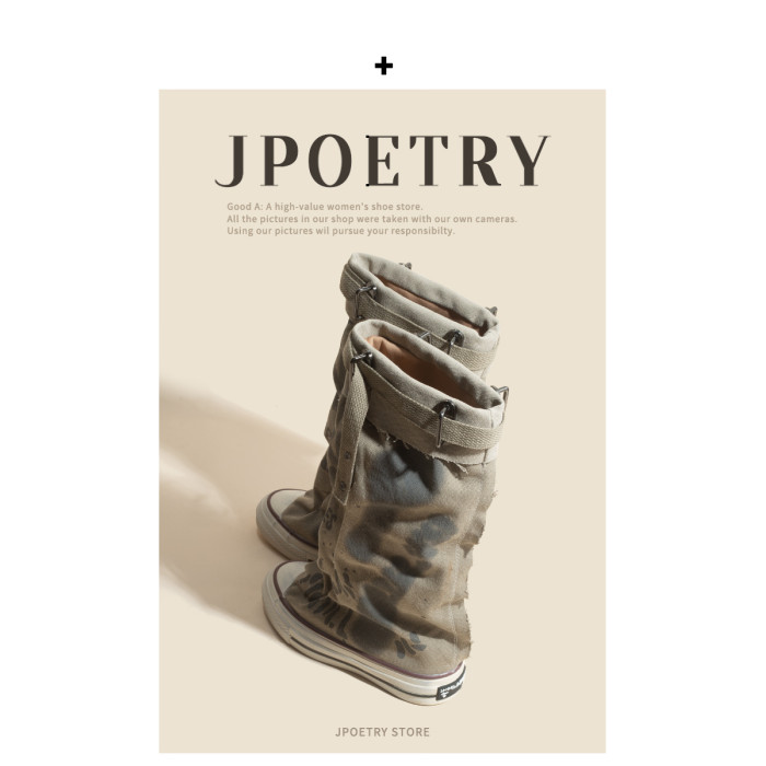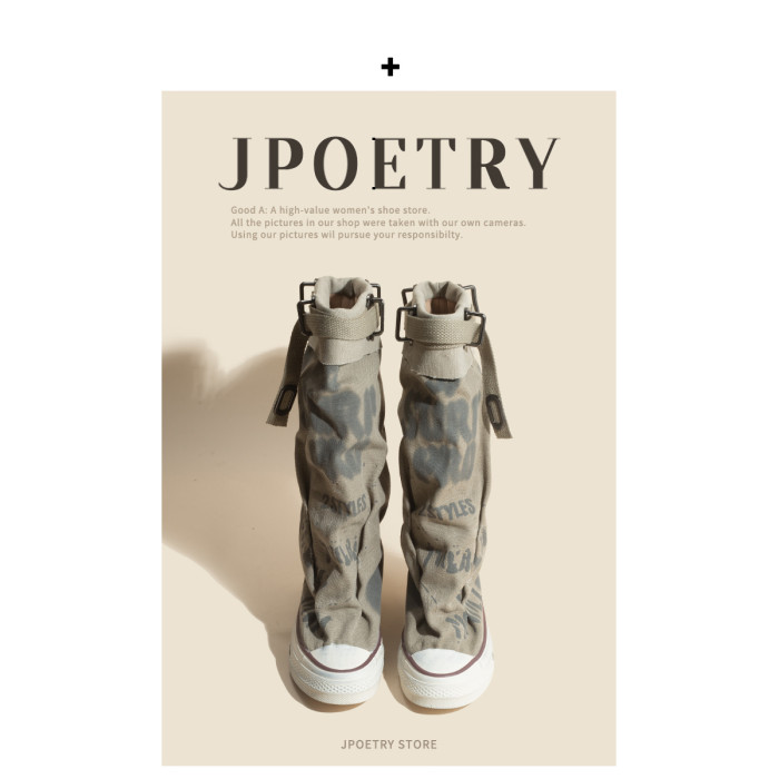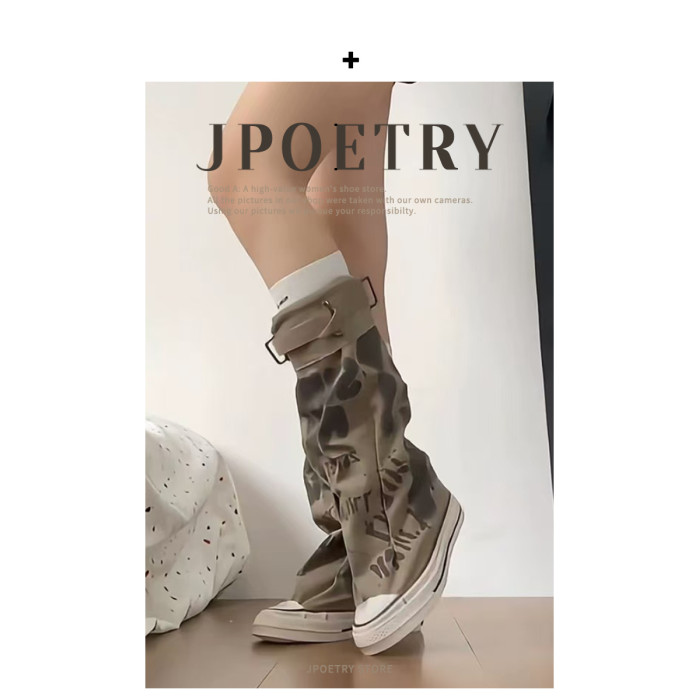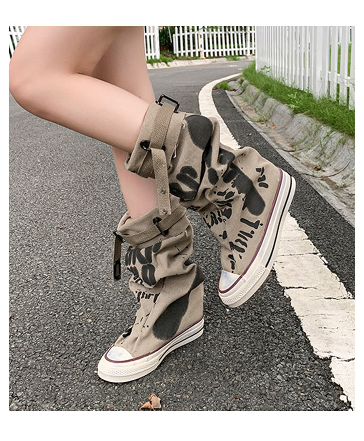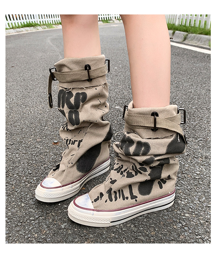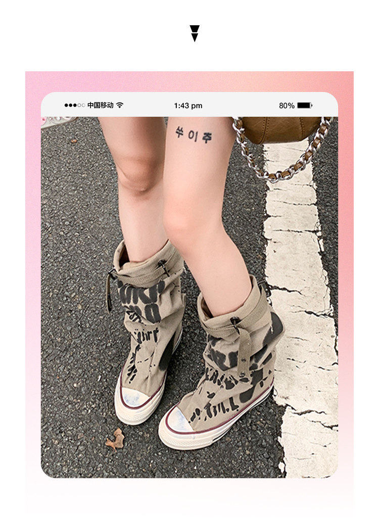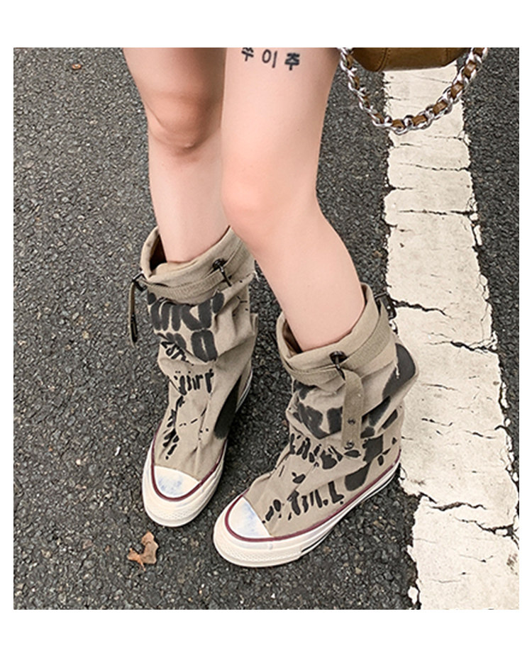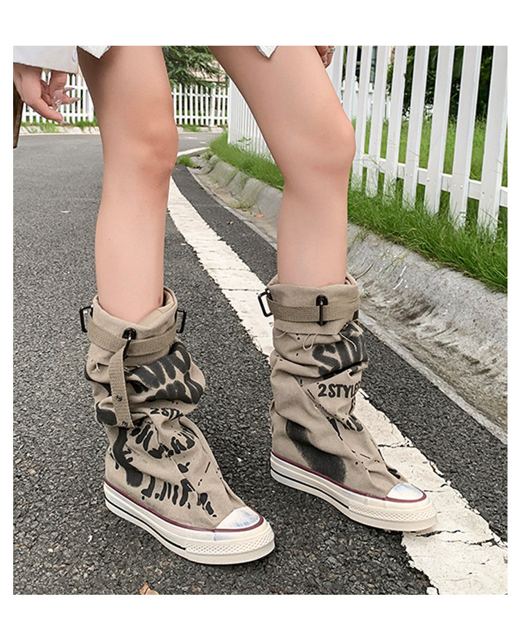 復古堆堆靴女2024新款秋冬不過膝長筒靴小個子褲琯靴塗鴉做舊靴子