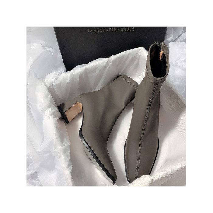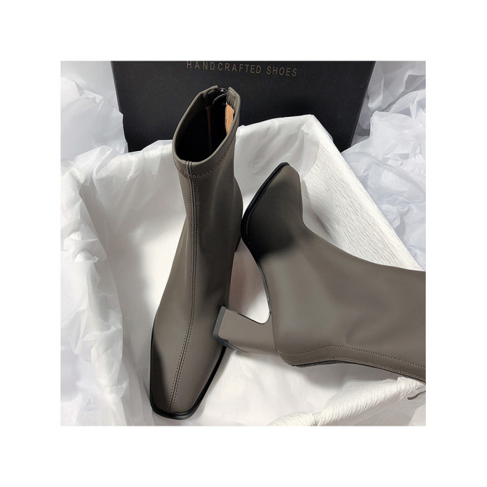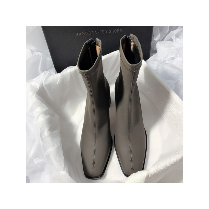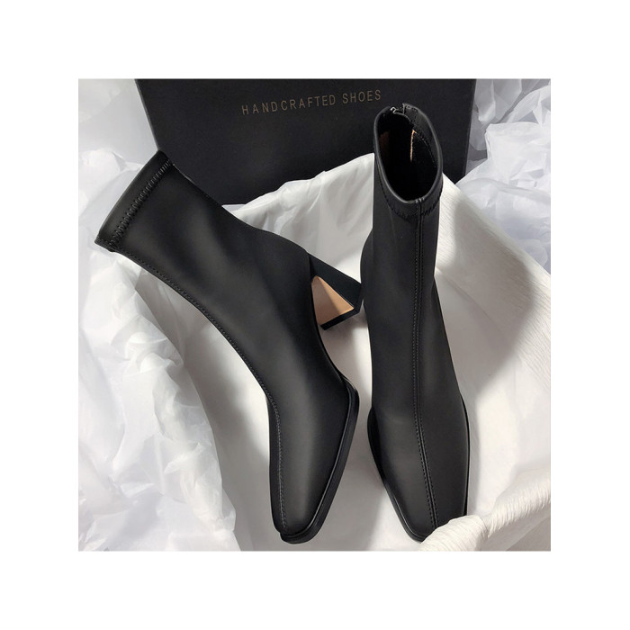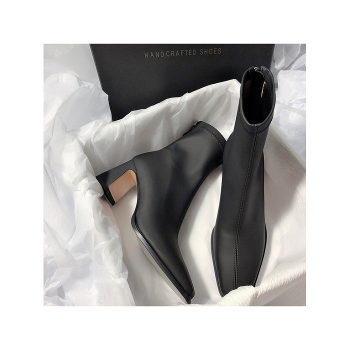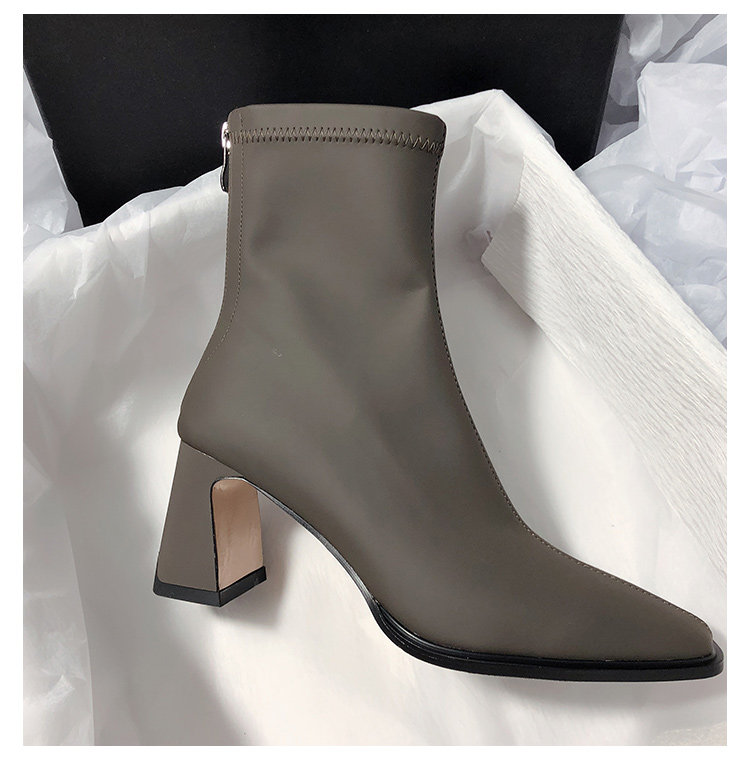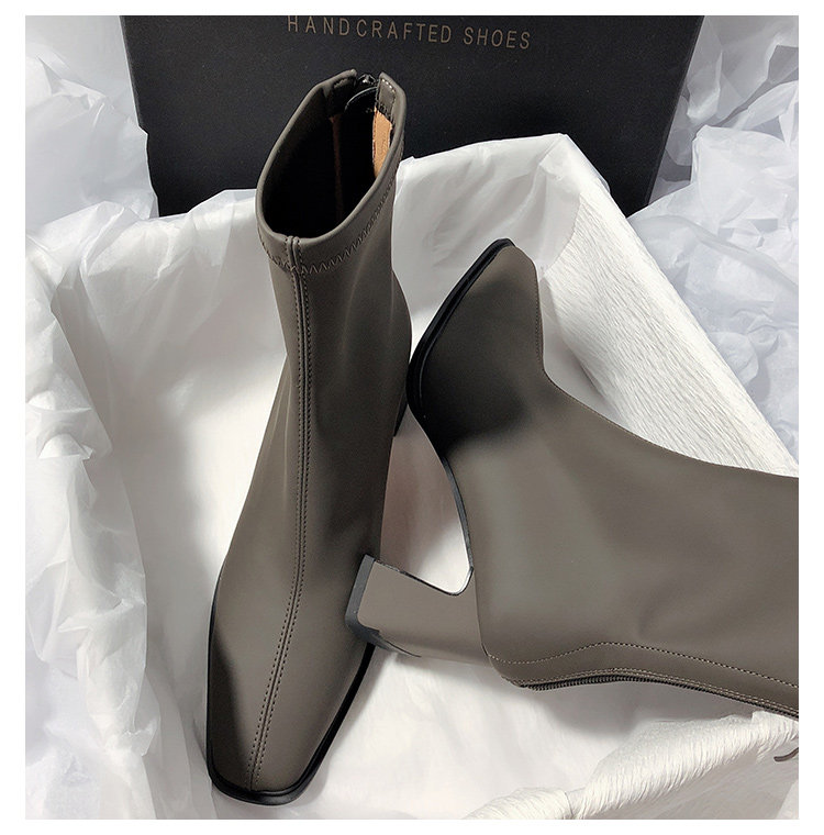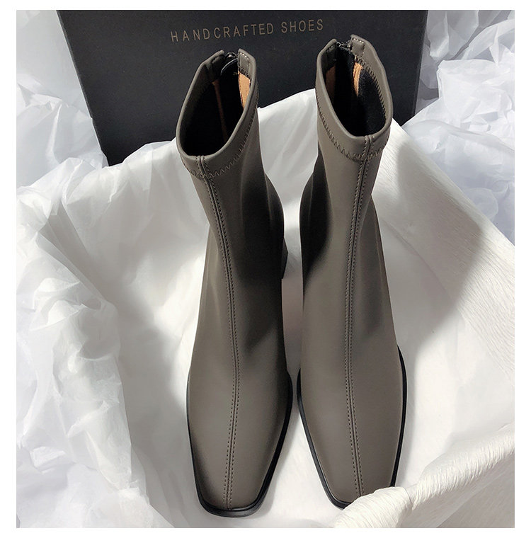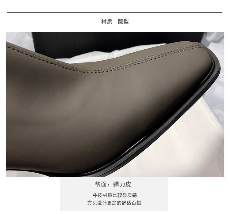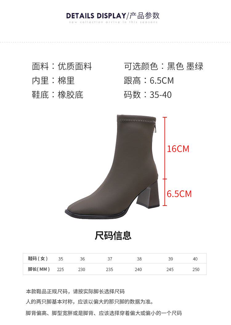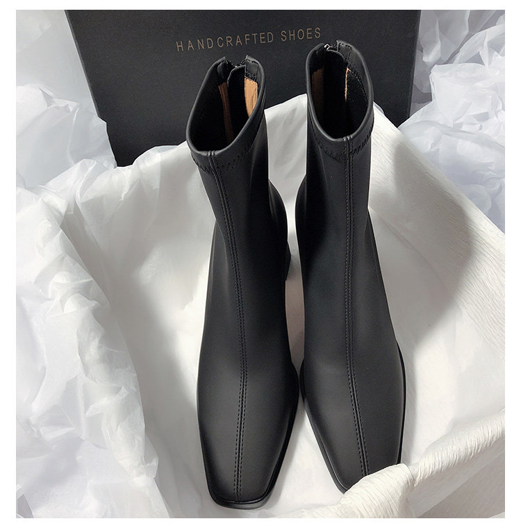 法式高跟靴子女2025秋冬新款方頭粗跟彈力瘦瘦靴簡約氣質時裝短靴