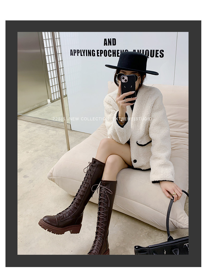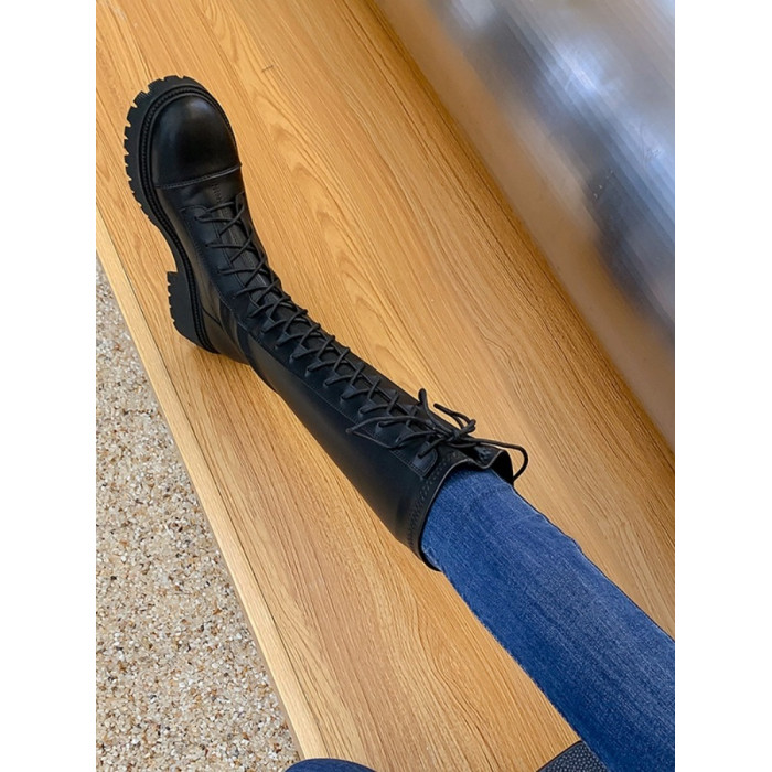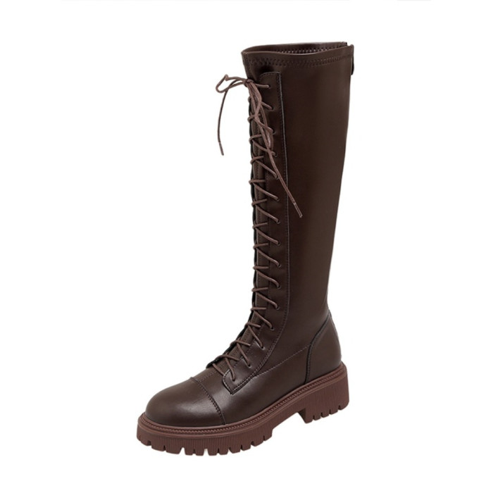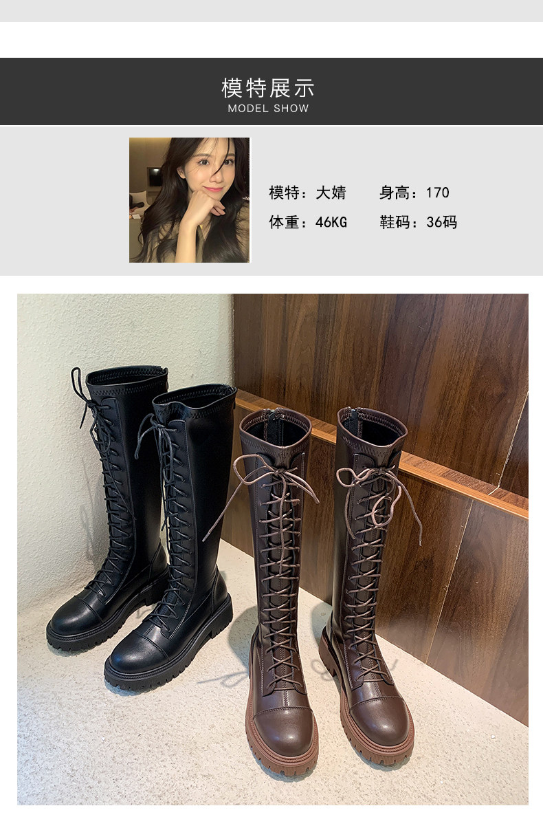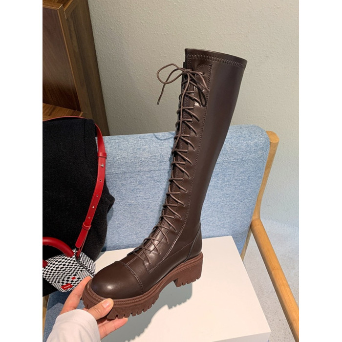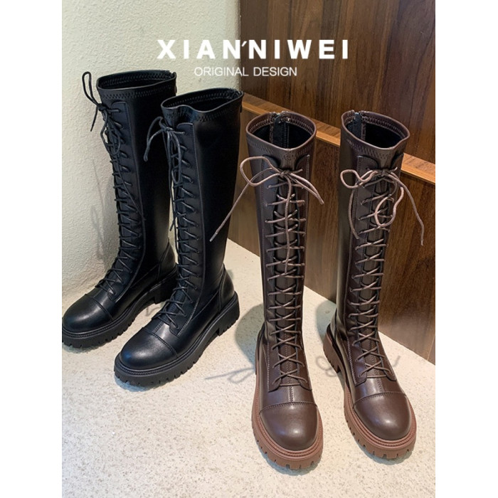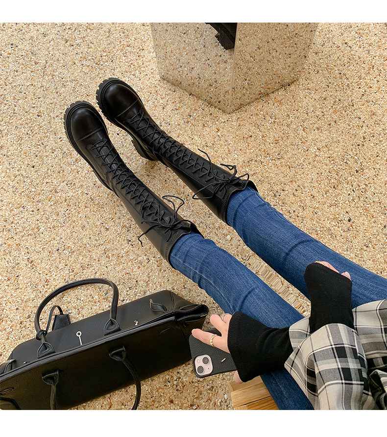 彈力靴厚底粗跟馬丁靴子女冬不過膝長筒靴系帶單靴高筒瘦瘦騎士靴
