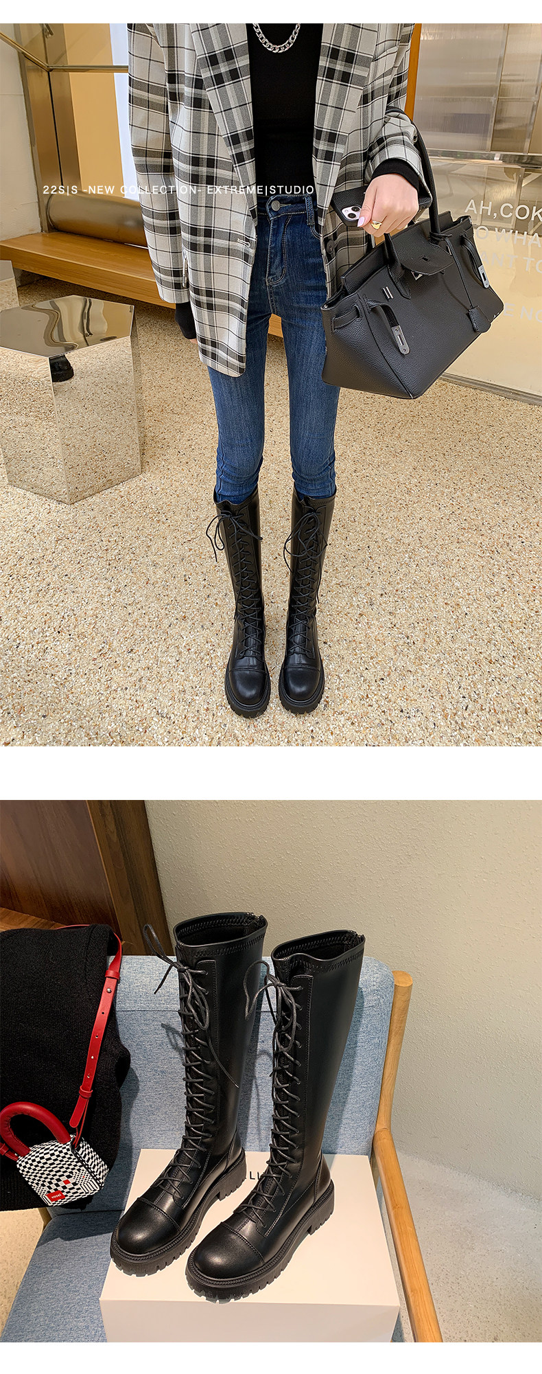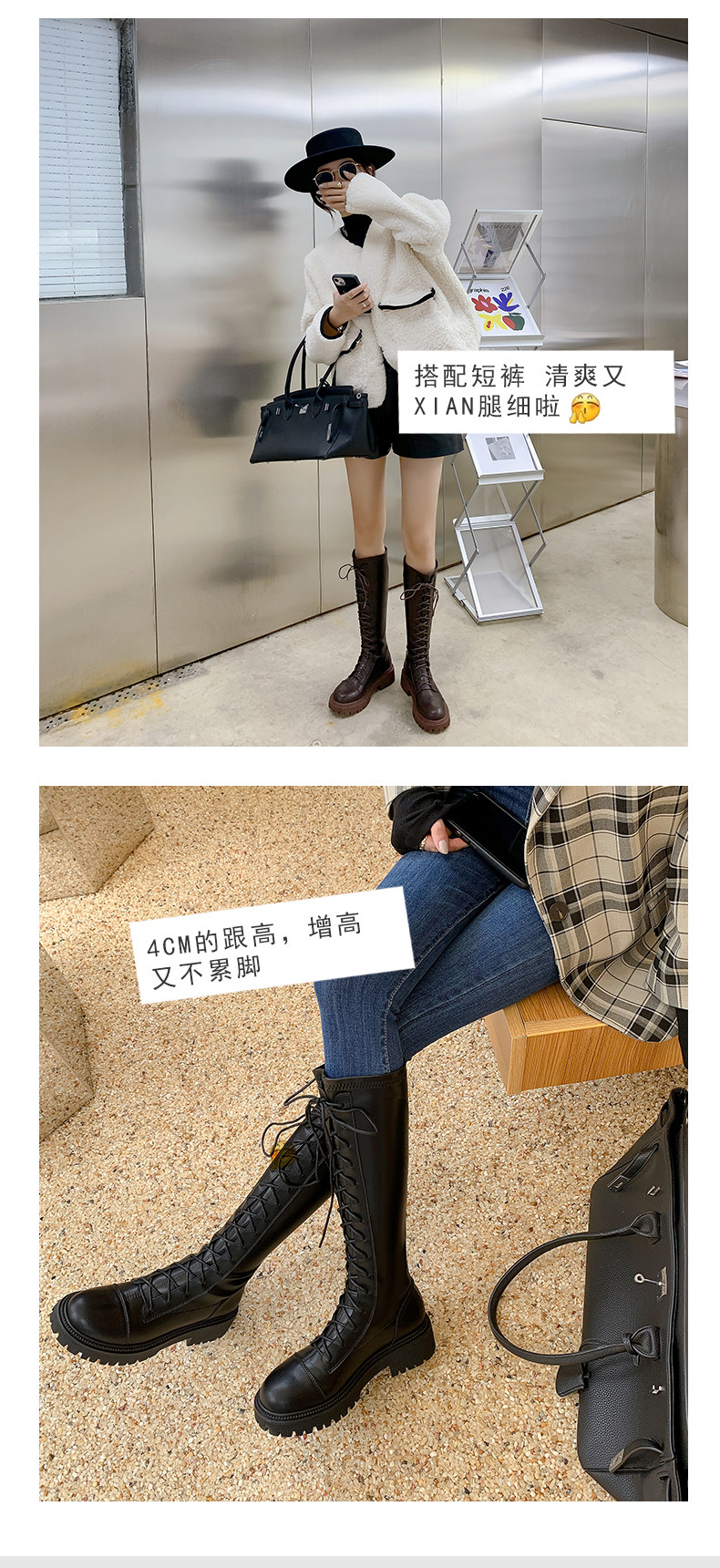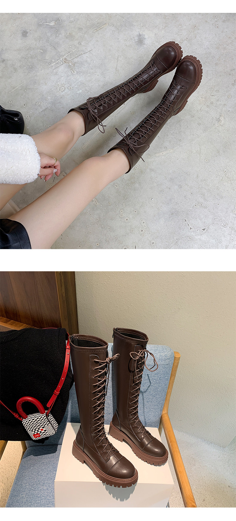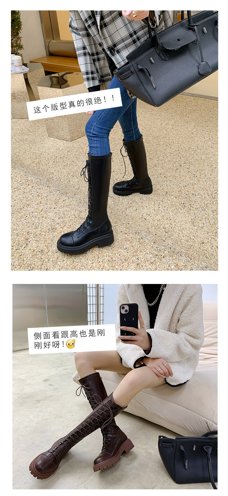 彈力靴厚底粗跟馬丁靴子女冬不過膝長筒靴系帶單靴高筒瘦瘦騎士靴