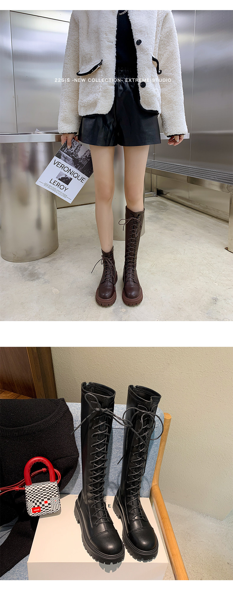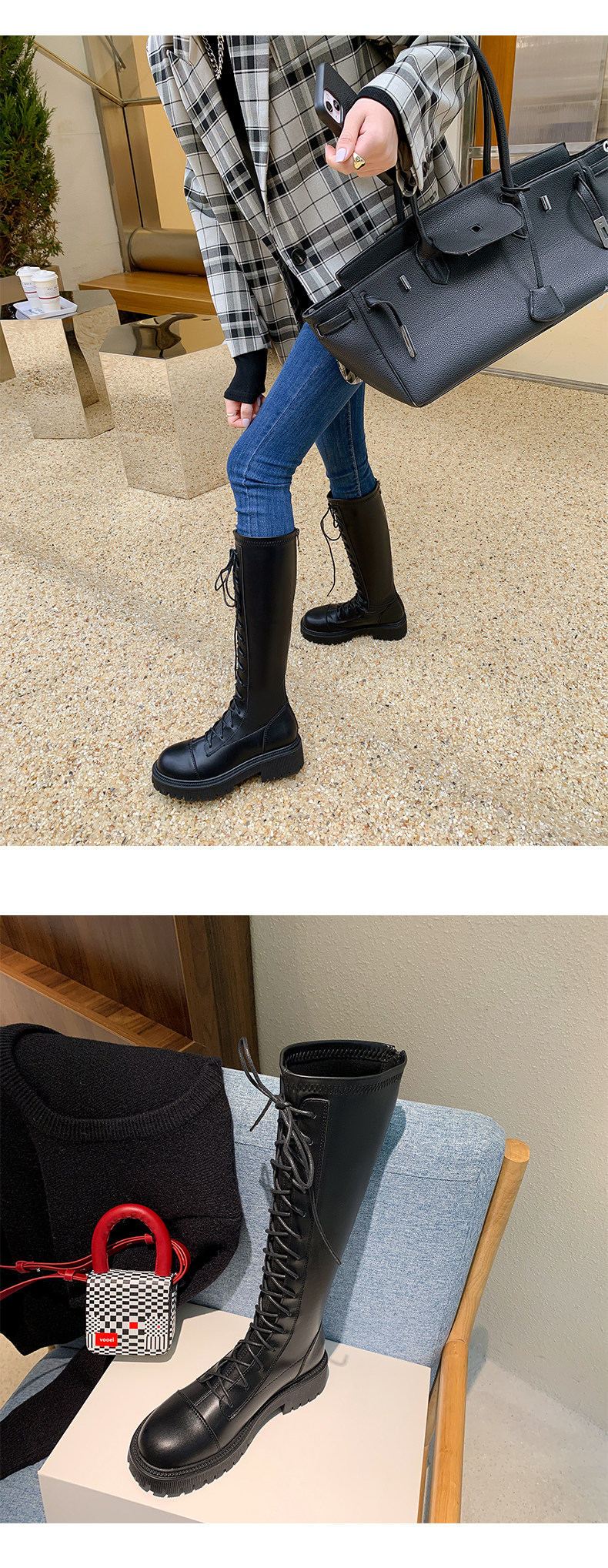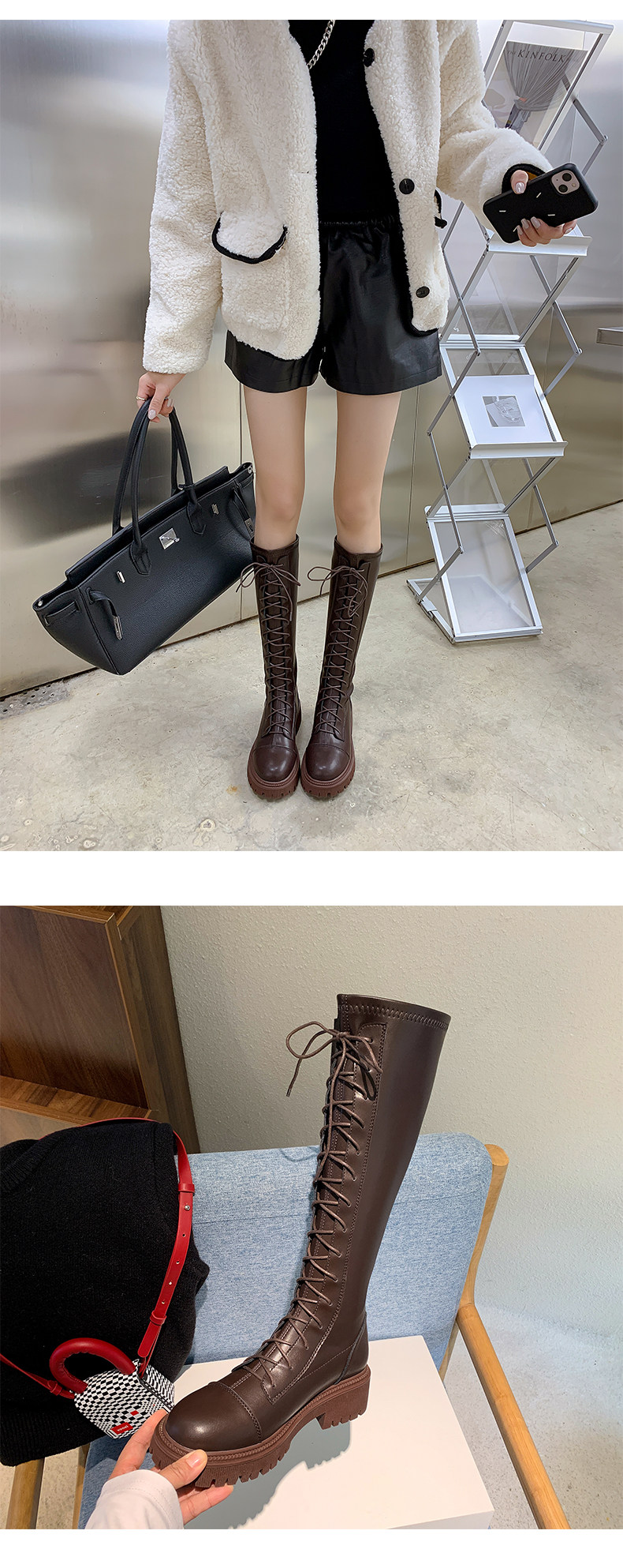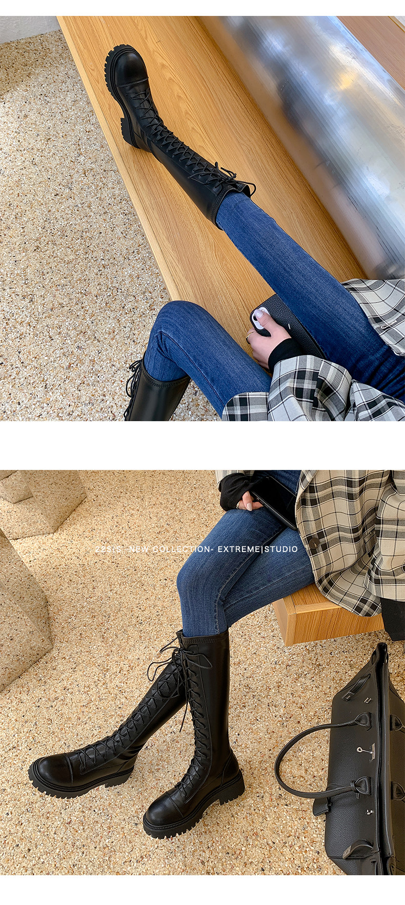彈力靴厚底粗跟馬丁靴子女冬不過膝長筒靴系帶單靴高筒瘦瘦騎士靴