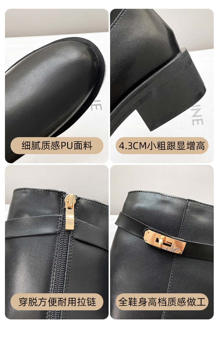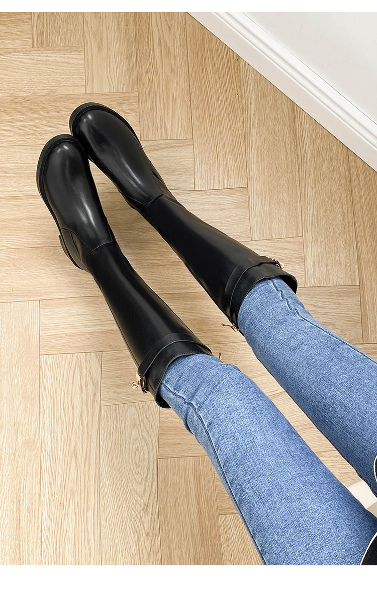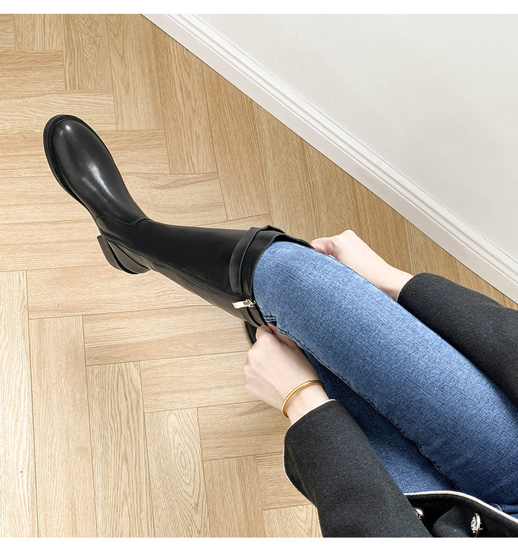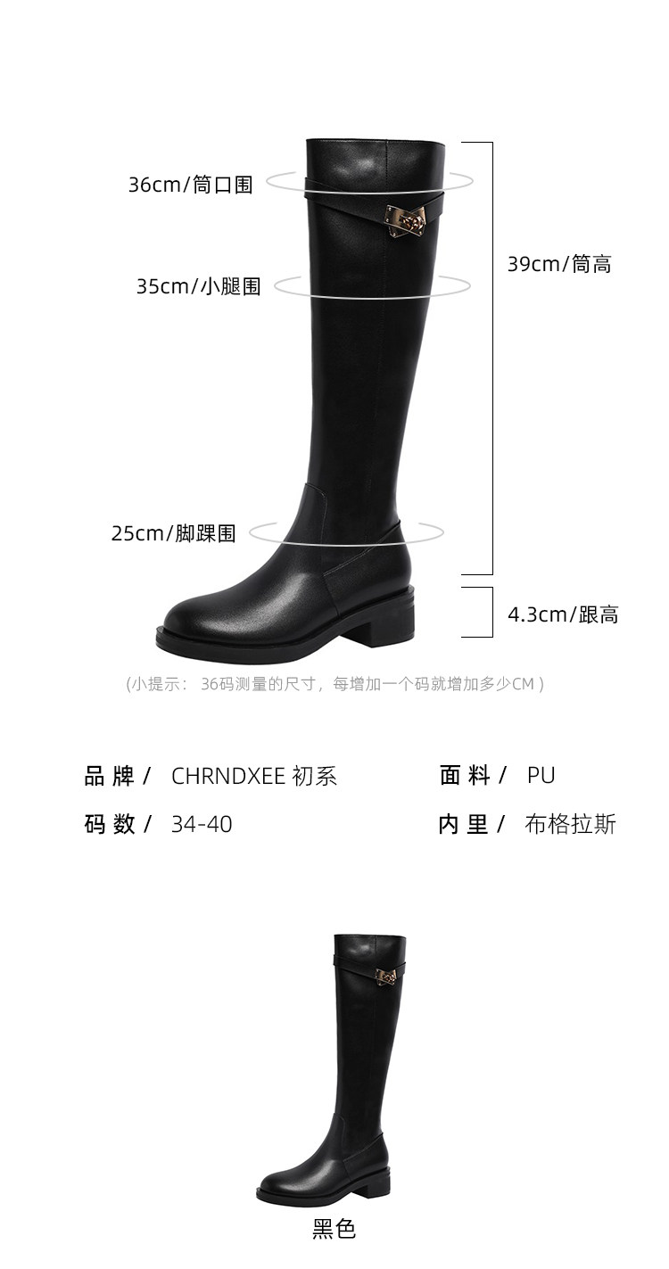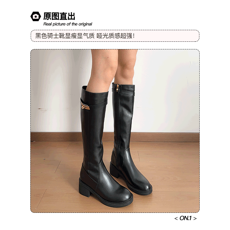 粗跟長筒靴不過膝長靴女2025年新款中跟矮個子黑色加絨高筒騎士靴