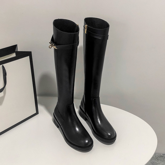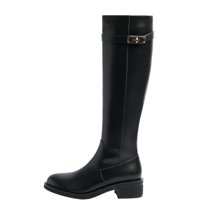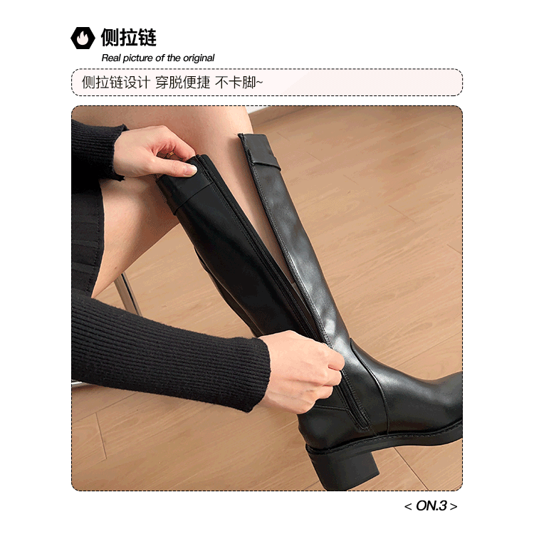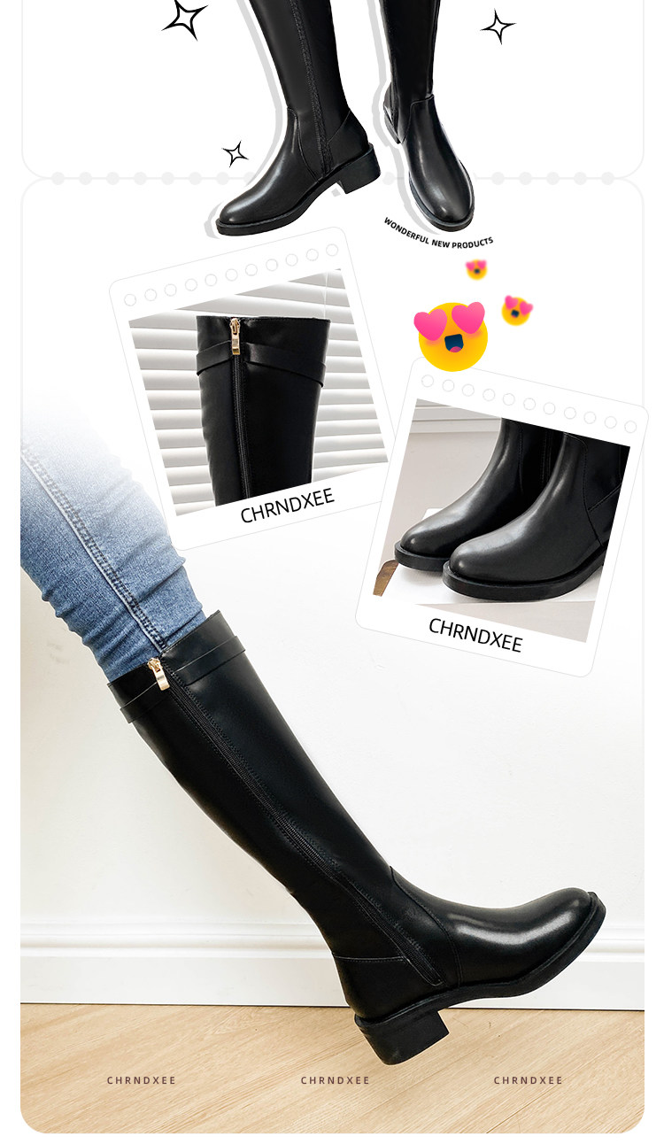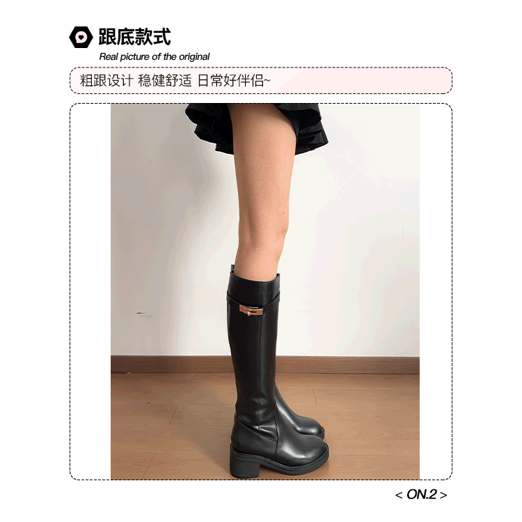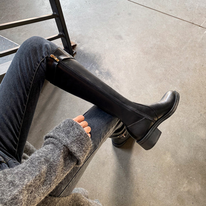 粗跟長筒靴不過膝長靴女2025年新款中跟矮個子黑色加絨高筒騎士靴