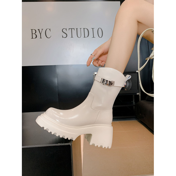 小個子增高短靴女2026年新款厚底真皮騎士菸筒靴瘦瘦腿秋冬馬丁靴