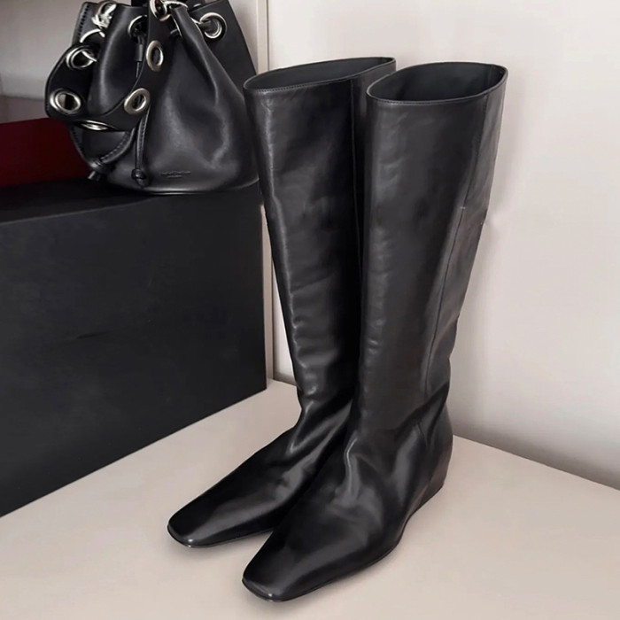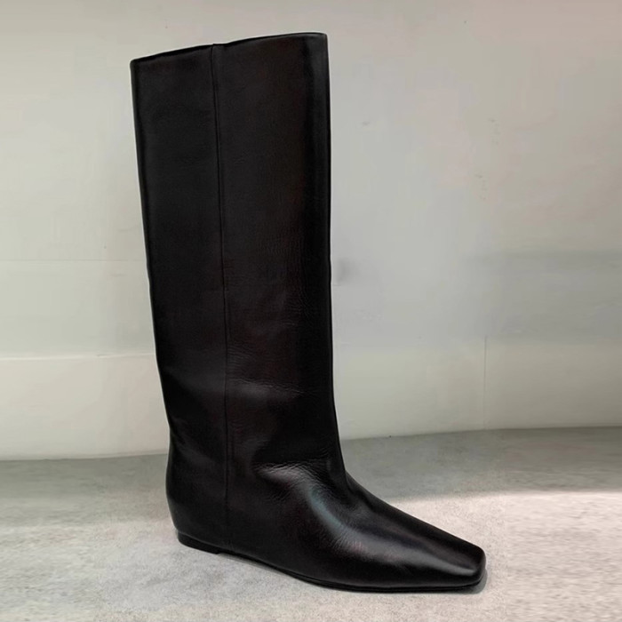 牛皮版~秋冬新款方頭內增高長靴寬鬆直筒套筒不過膝高筒騎士靴女
