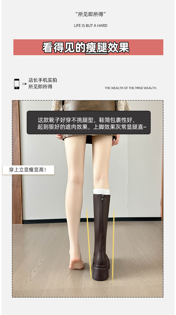 牛皮版內增高11cm不過膝小個子長筒靴女150長靴厚底高筒騎士靴子