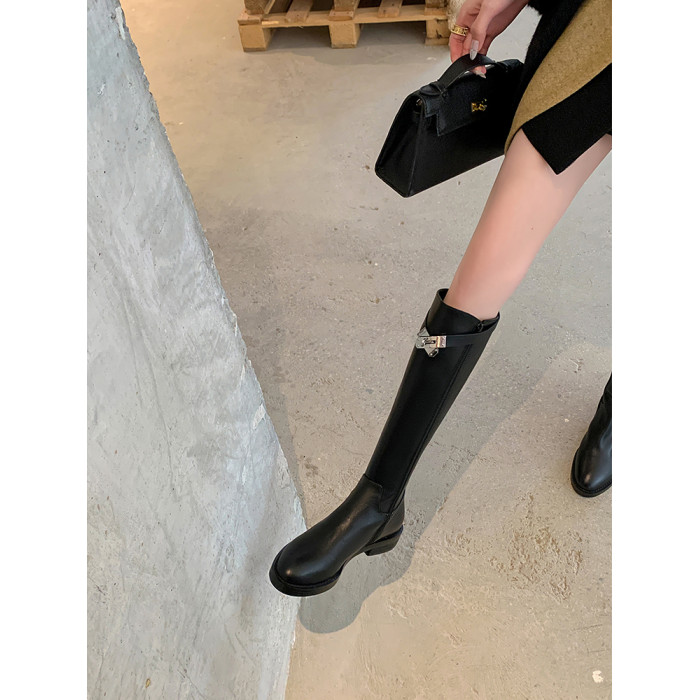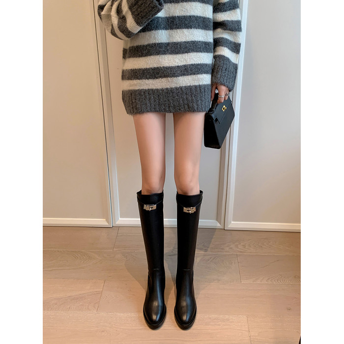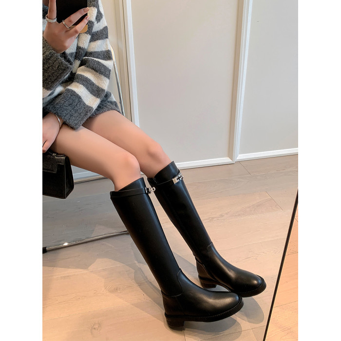 2025新款秋冬騎士靴女高筒中跟真皮靴子女長筒靴小個子粗跟長靴女
