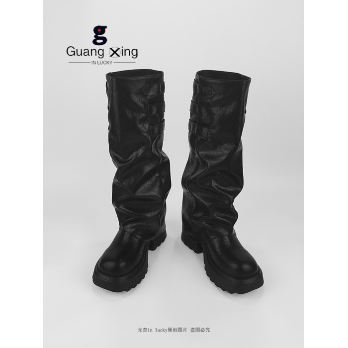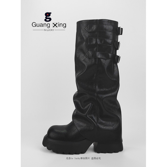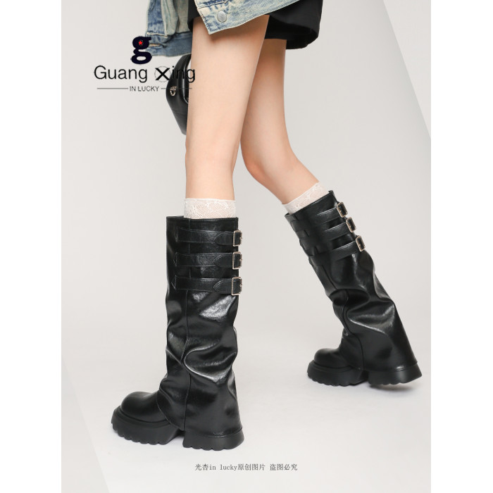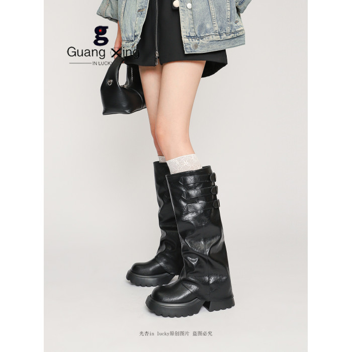 光杏原創褶皺堆堆靴女2026早秋厚底增高褲琯靴西部長筒靴騎士靴女