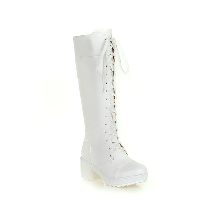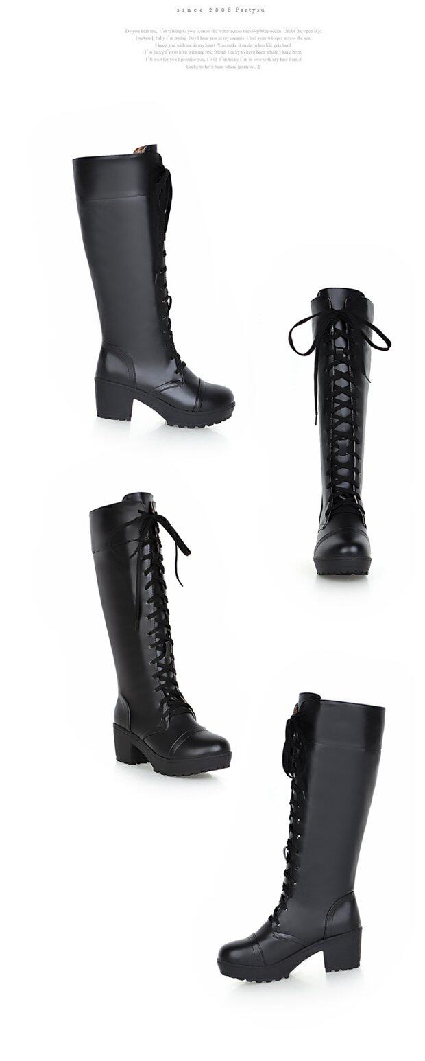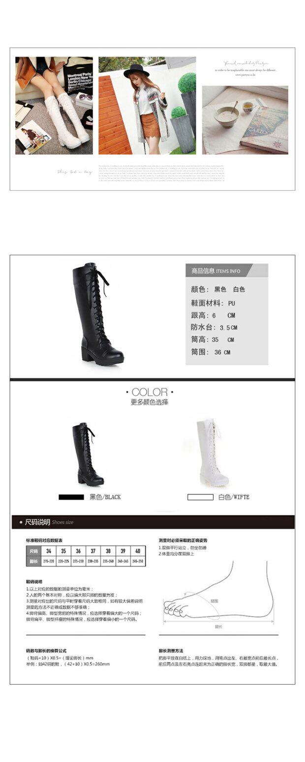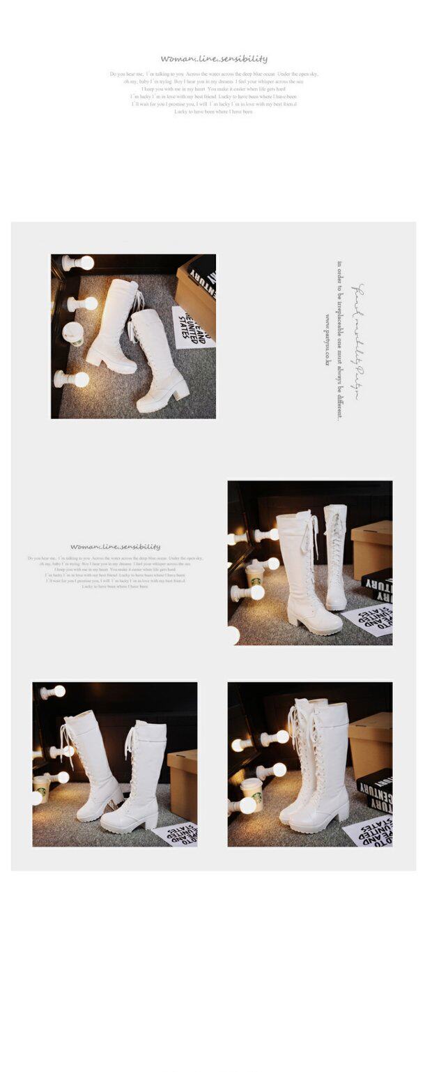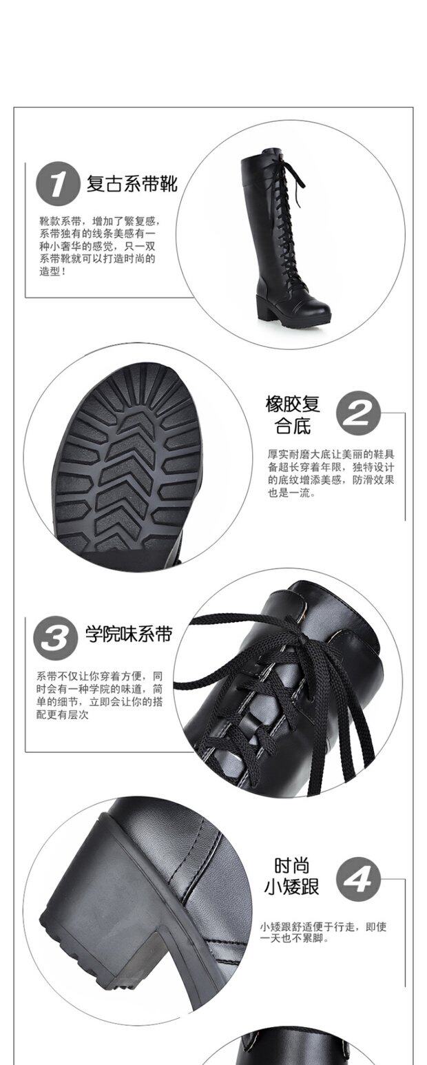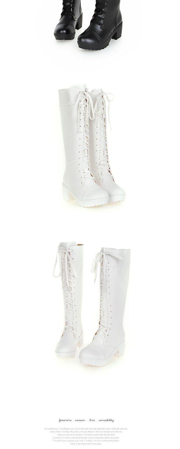 中跟女靴子cos角色扮演舞台英倫騎士靴系帶白色粗黑色高筒馬丁靴